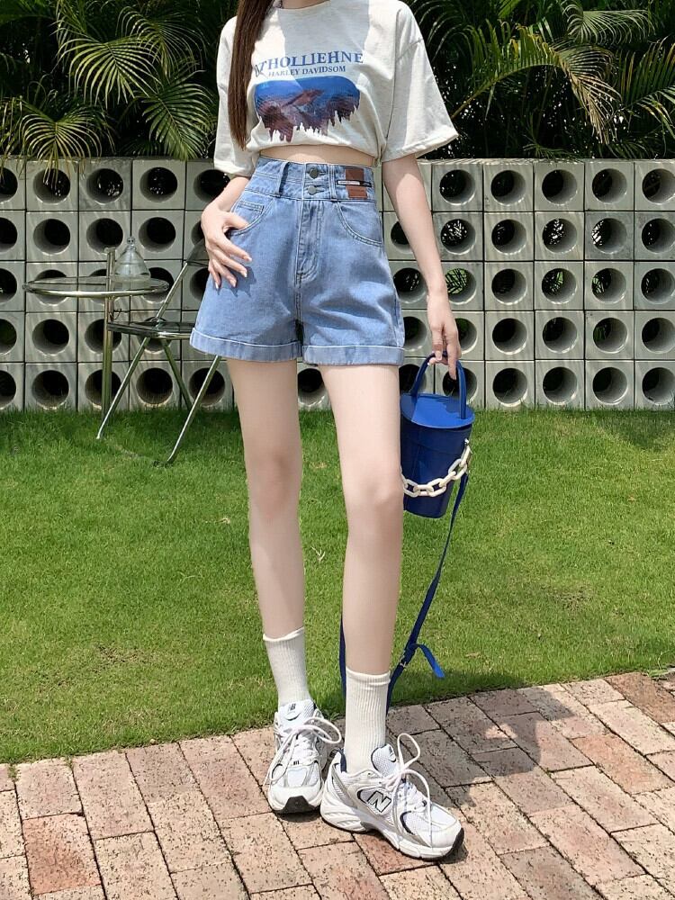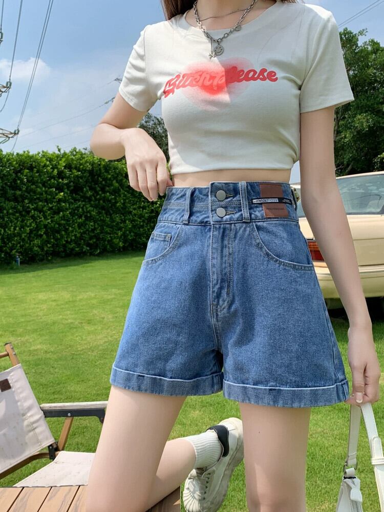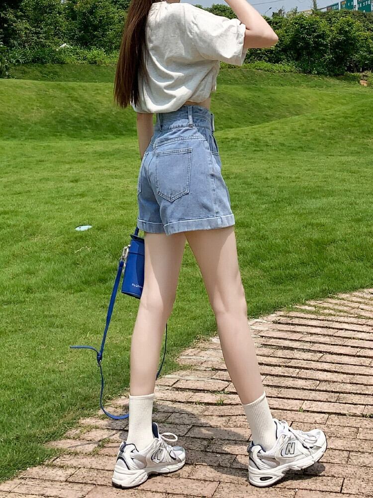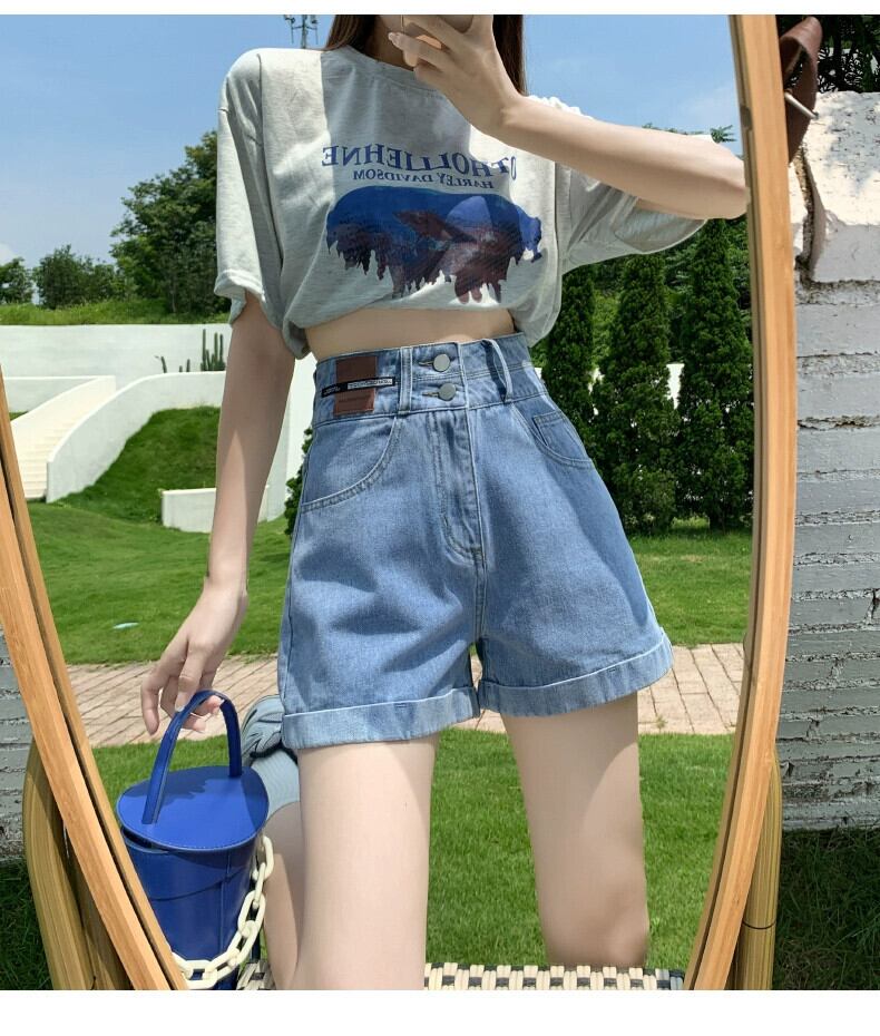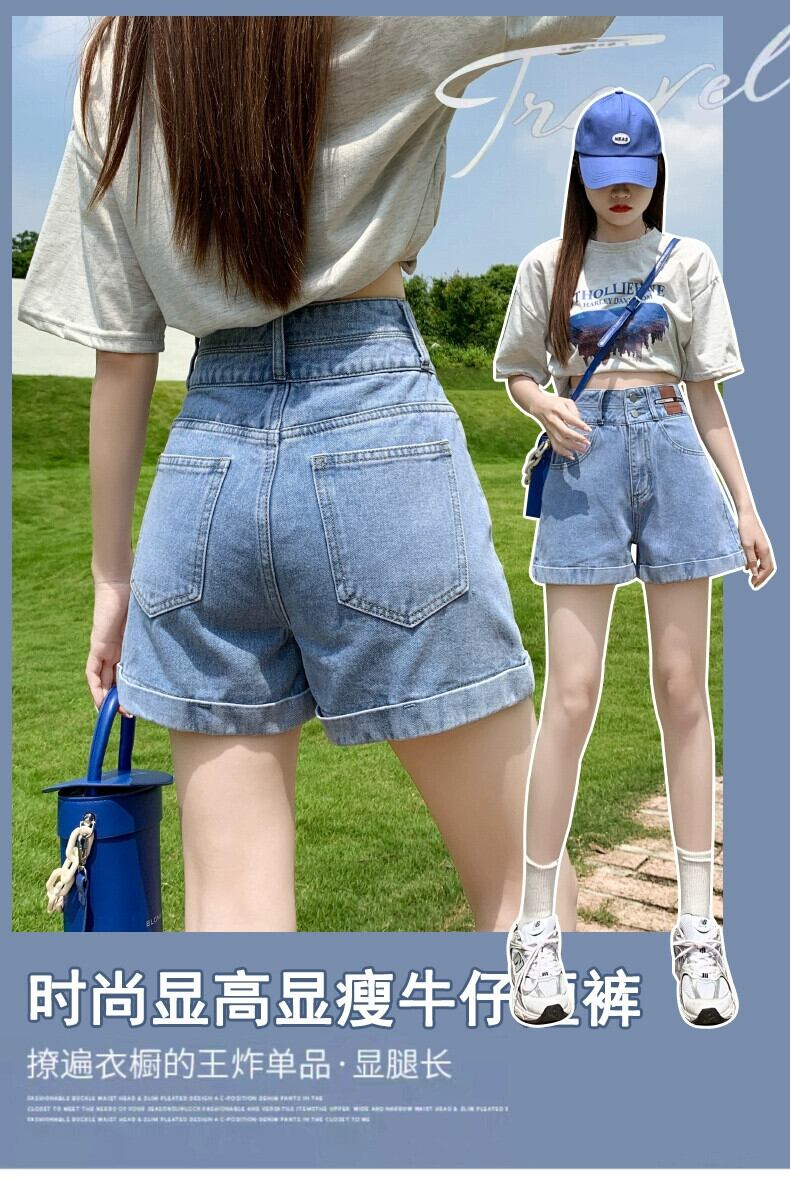 ウエストカーリーエッジAラインデニムショートパンツレディース夏ニッチアウターゆったり細い脚丈薄手ワイドパンツ サマー 夏物 ショーツ ブルマー 7460062462657340 | framboise21