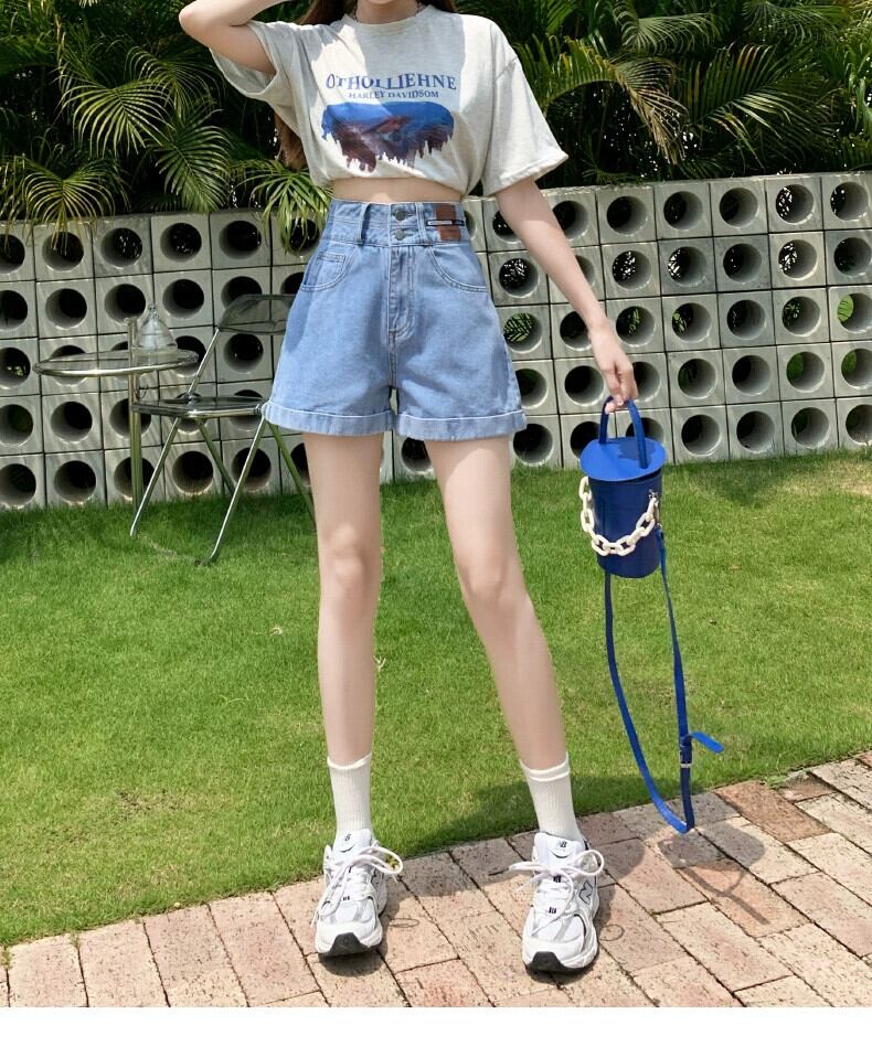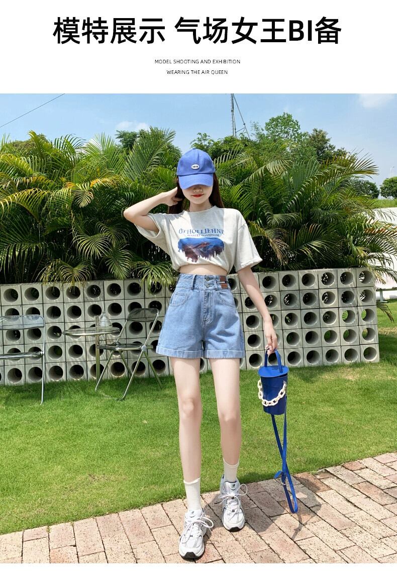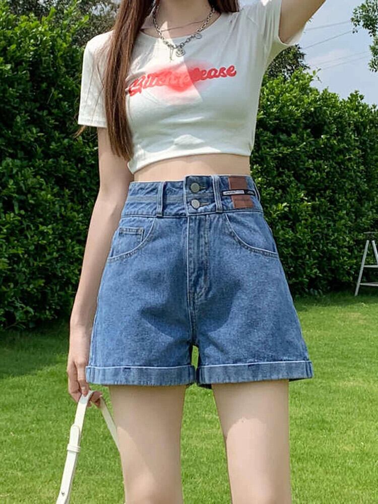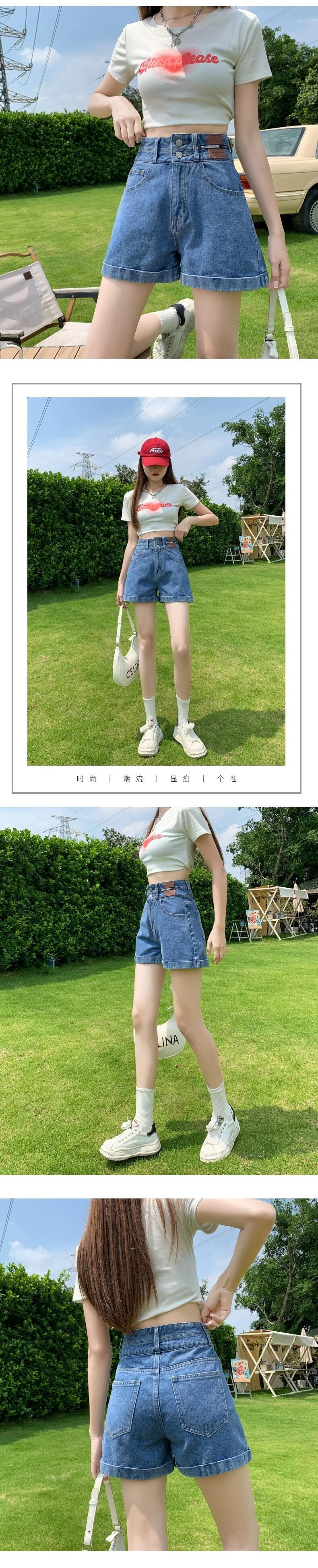 ウエストカーリーエッジAラインデニムショートパンツレディース夏ニッチアウターゆったり細い脚丈薄手ワイドパンツ サマー 夏物 ショーツ ブルマー 7460062462657340 | framboise21