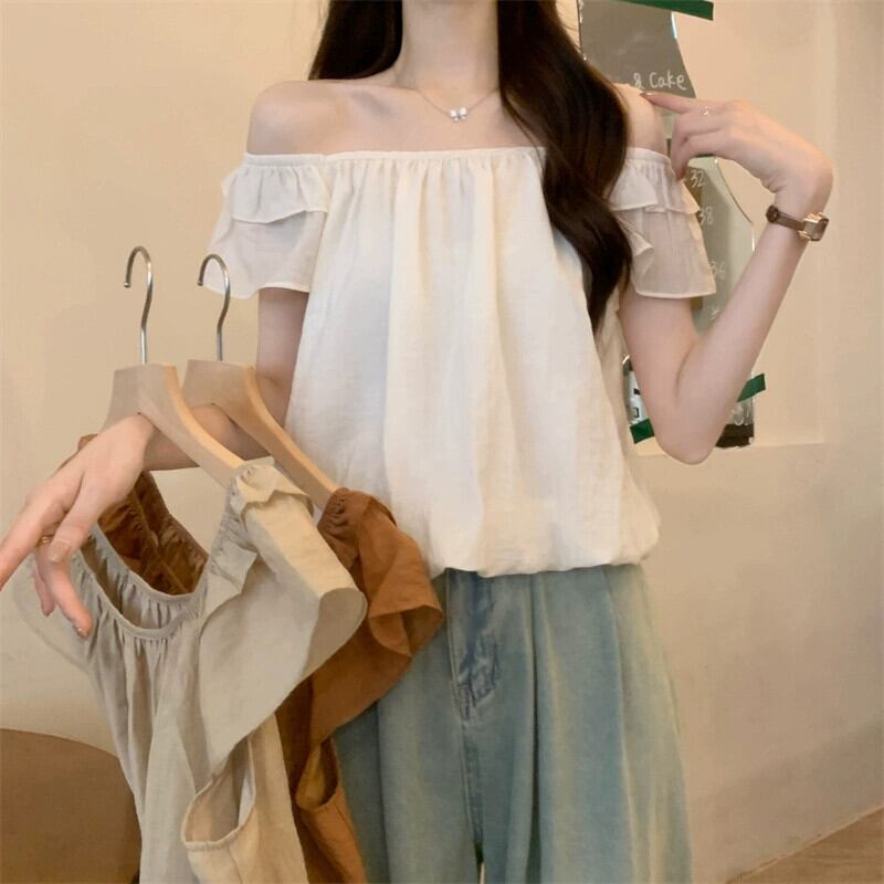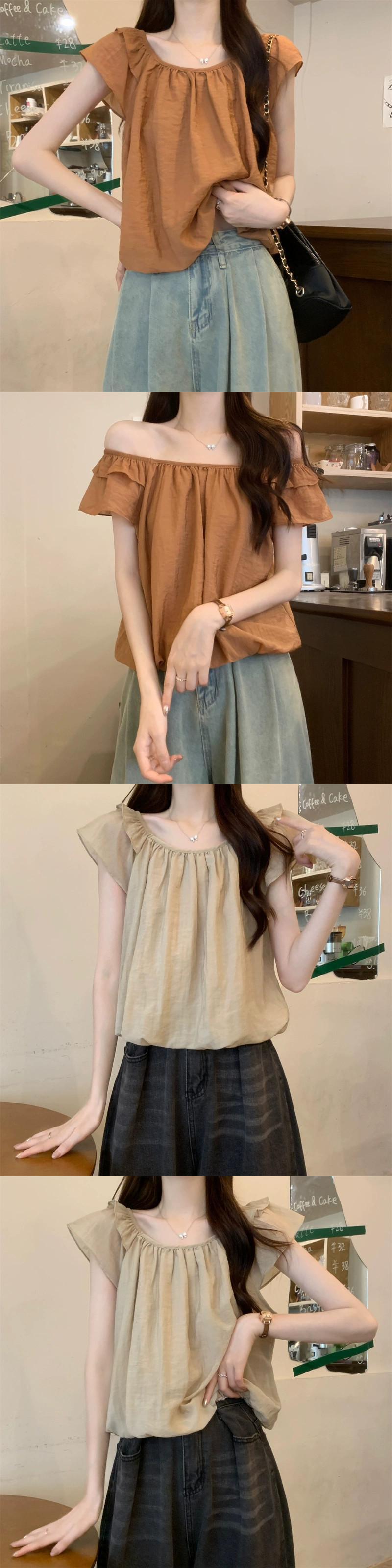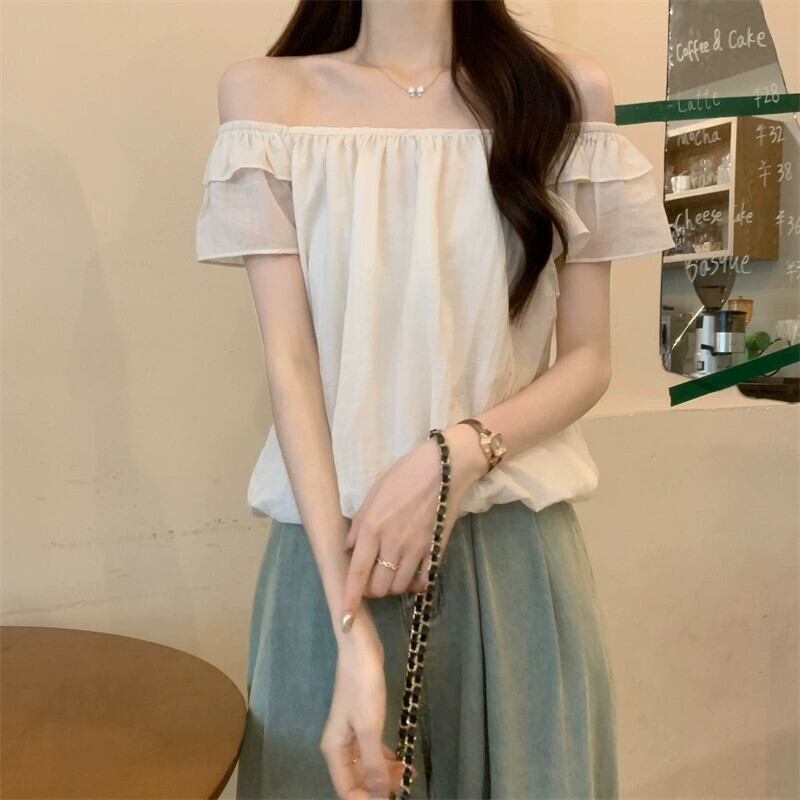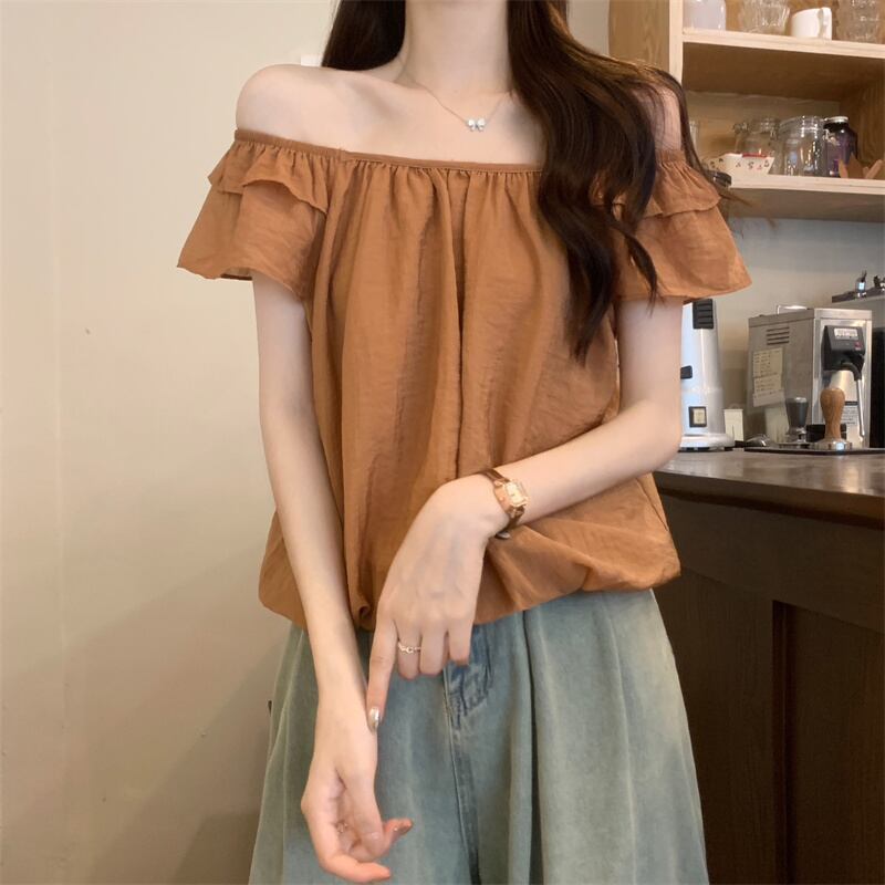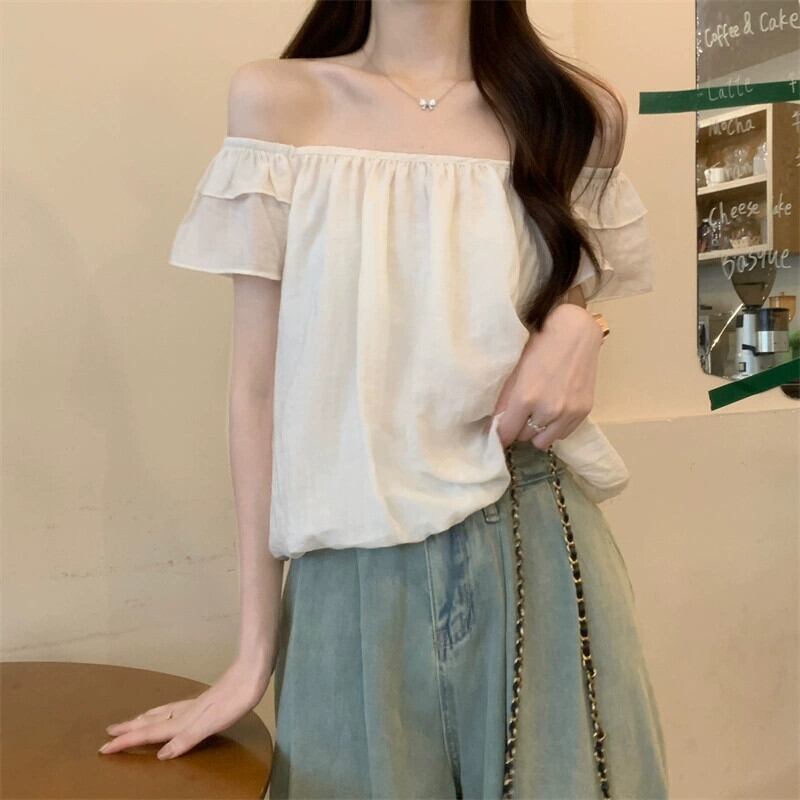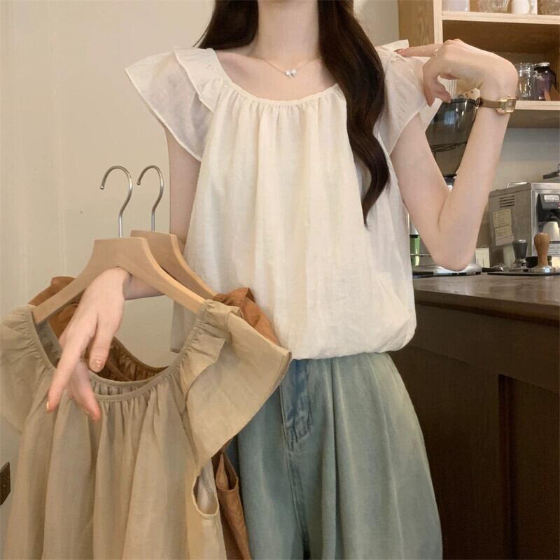 プリーツワンショルダー半袖シャツレディース夏ルーズデザインドールシャツスクエアカラートップ小さなフライングスリーブショートシャツ サマー 夏物 スクウェア 746001715937058 | framboise21
