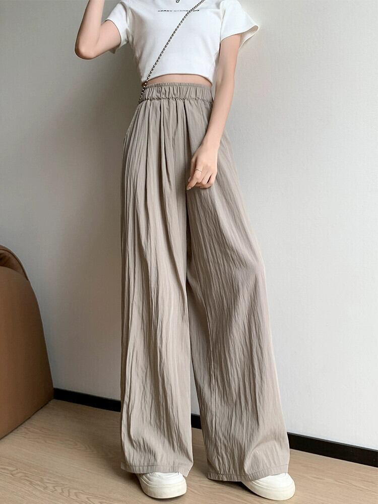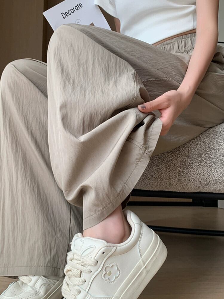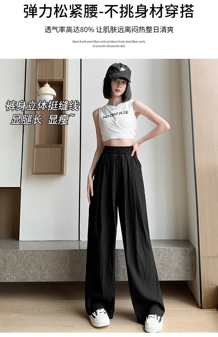 アイスシルクコットンとリネンのワイドレッグパンツ女性の夏薄いセクションモップ山本パンツ小さな怠惰なルーズストレートカジュアルパンツ サマー 夏物 7460095233332588 | framboise21
