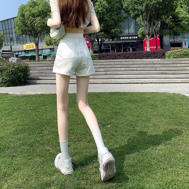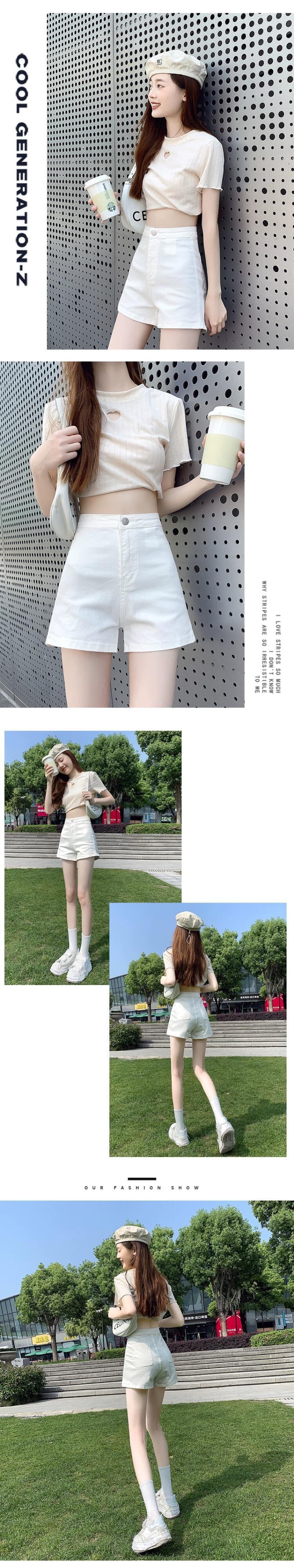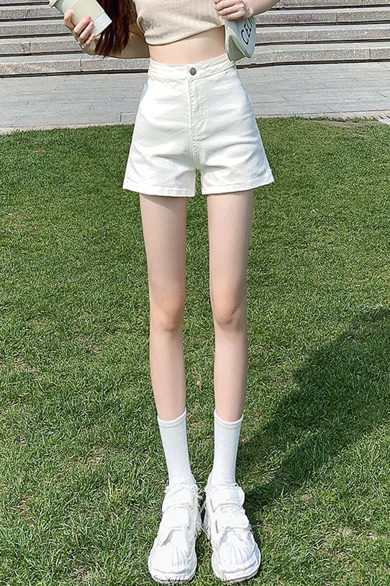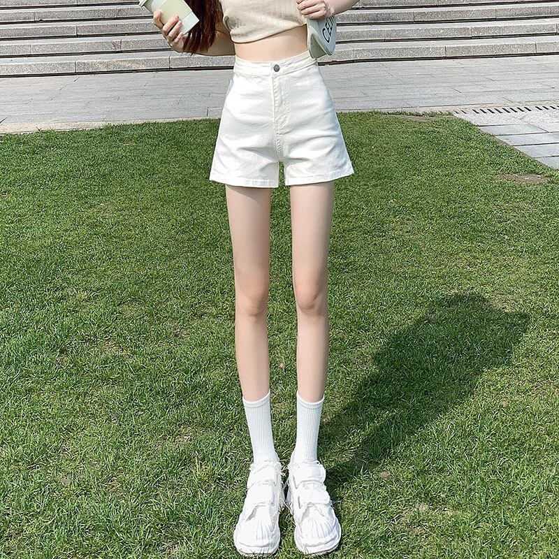 ホワイトデニムショートパンツレディース2023年夏新作ハイウエストAラインパンツゆったりワイドレッグパンツトレンド ハイウェスト サマー 夏物 ショーツ ブルマー 7460020554496838 | framboise21