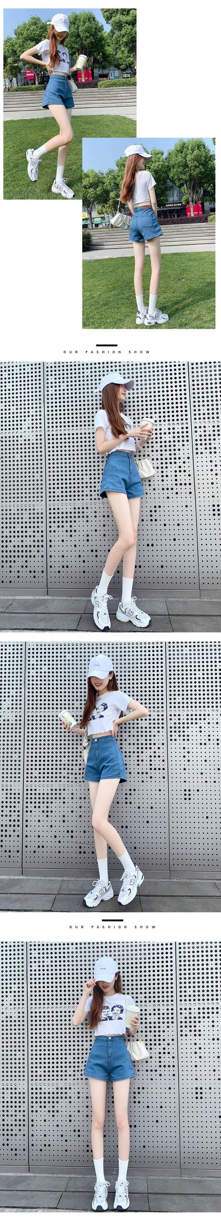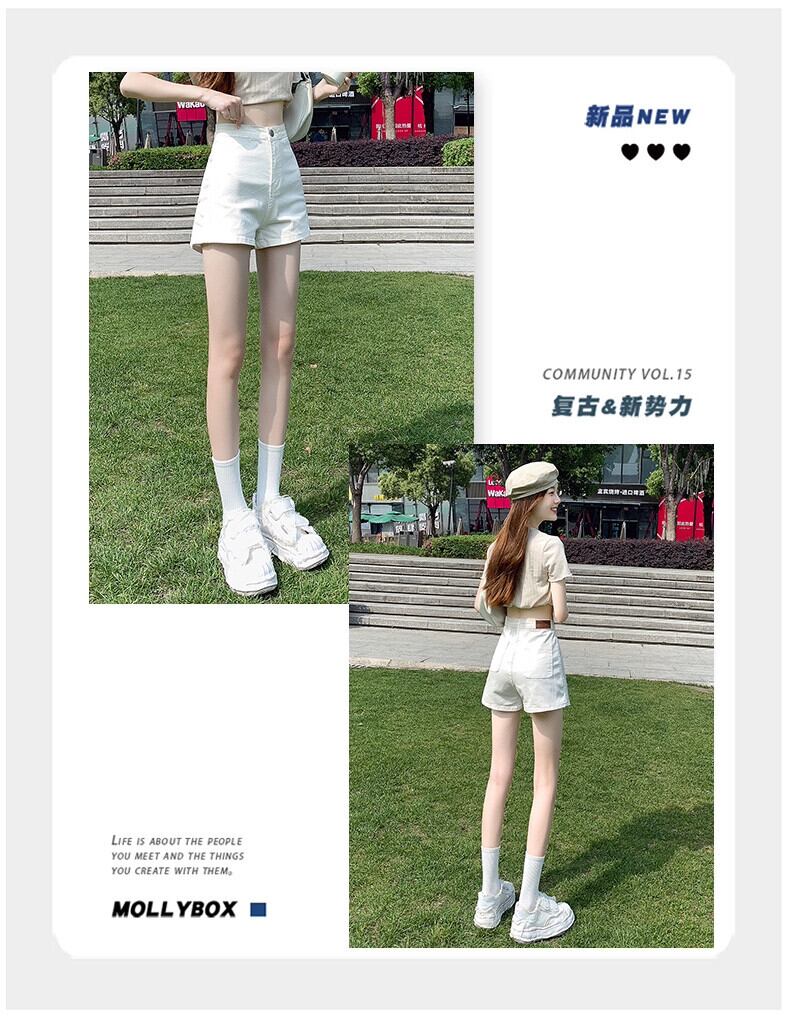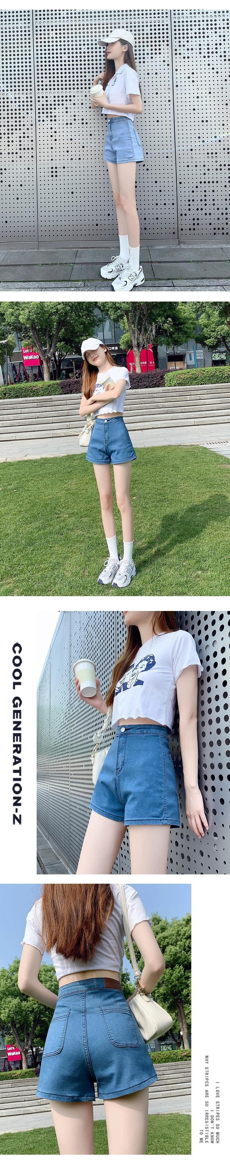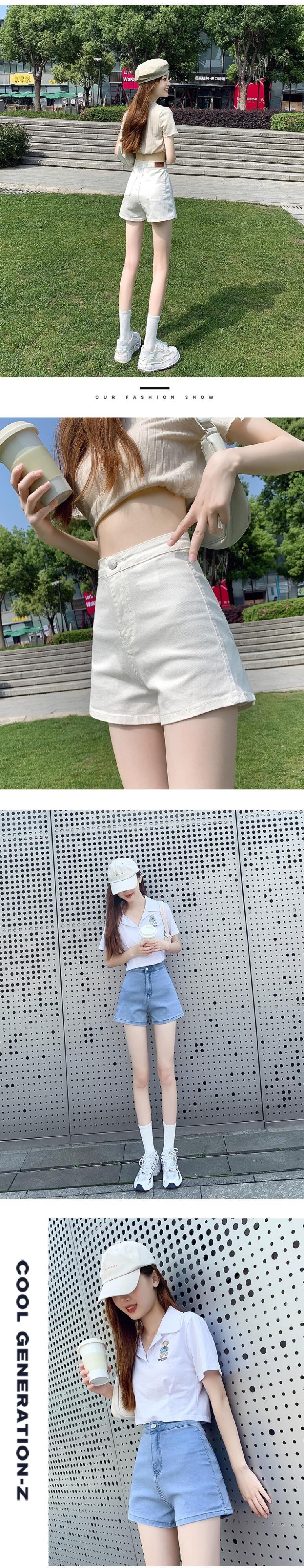 ホワイトデニムショートパンツレディース2023年夏新作ハイウエストAラインパンツゆったりワイドレッグパンツトレンド ハイウェスト サマー 夏物 ショーツ ブルマー 7460020554496838 | framboise21