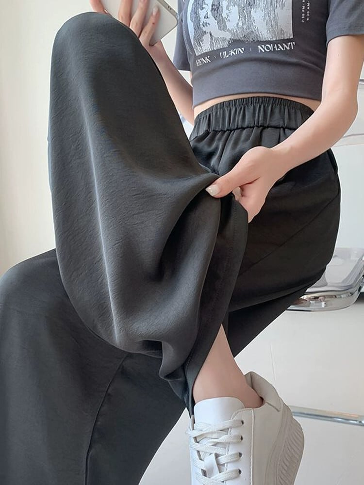 ドレープ感アイスシルクワイドレッグパンツレディース夏ハイウエストアセテート日焼け止めパンツルーズストレートチューブ床拭き薄手カジュアルレディースパンツ ハイウェスト サマー 夏物 7460085420539150 | framboise21