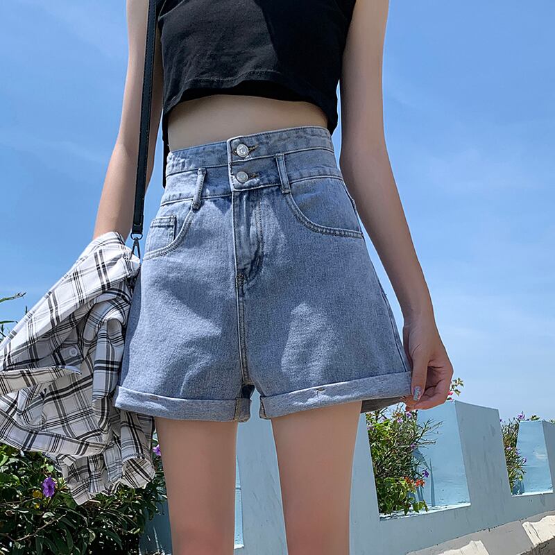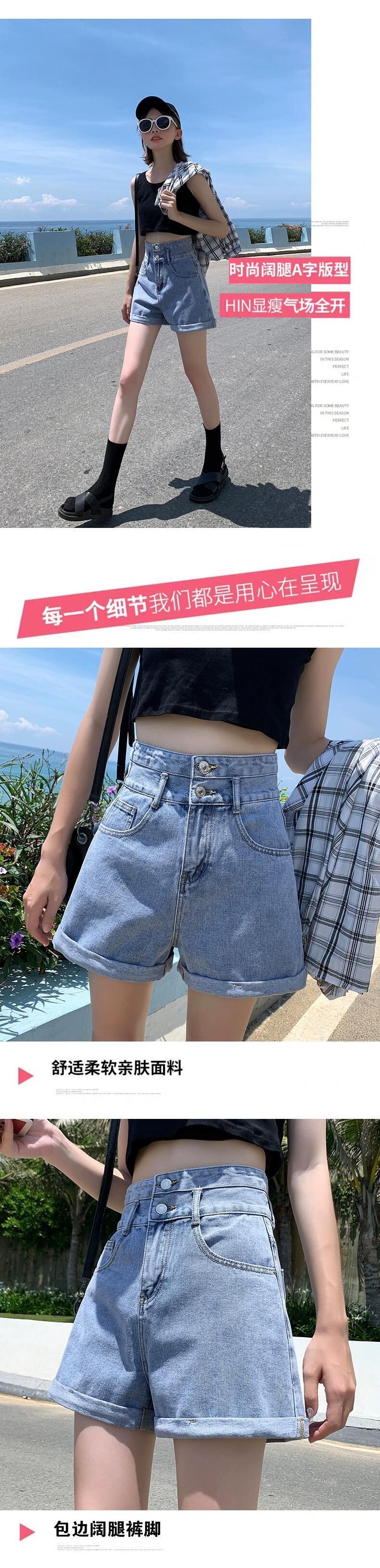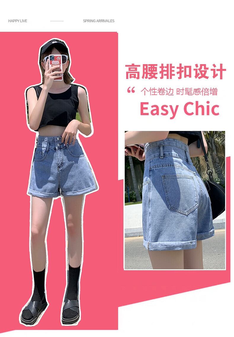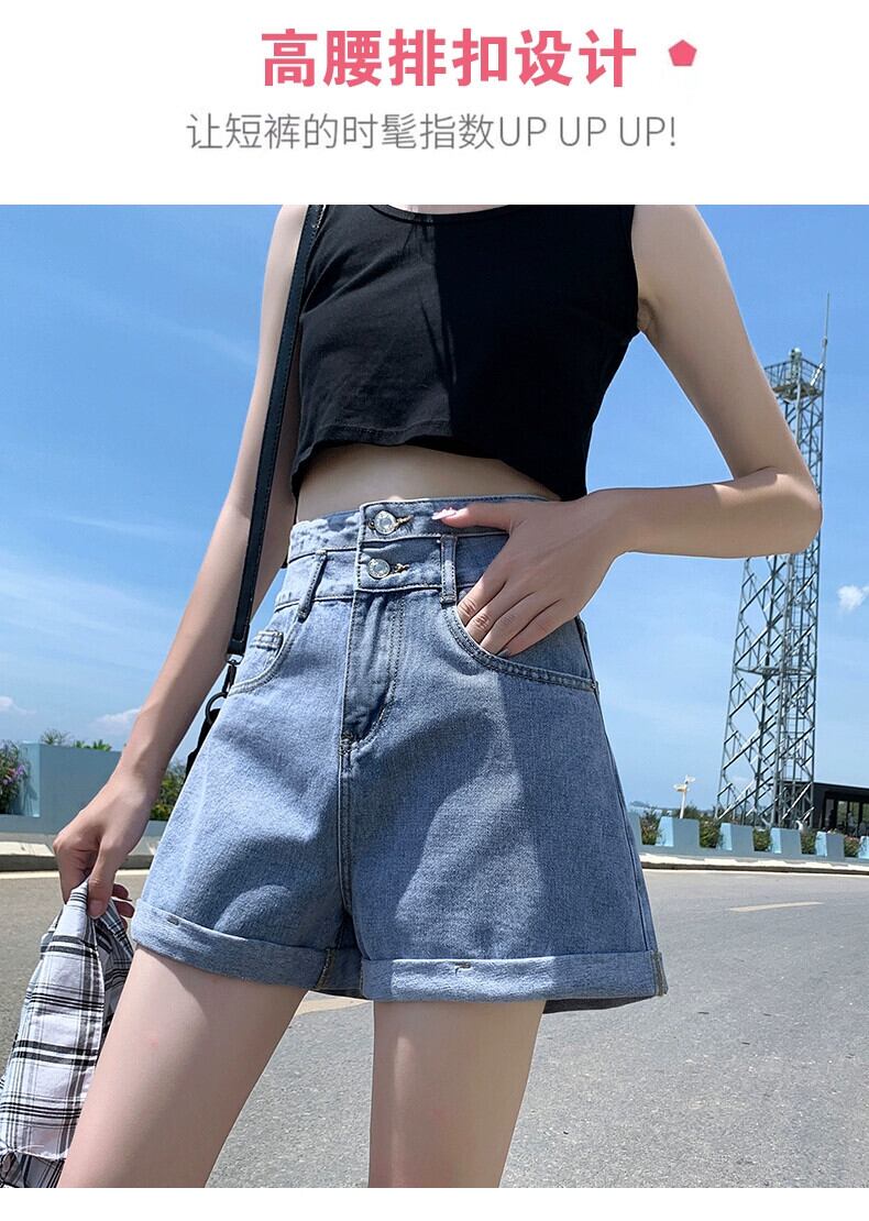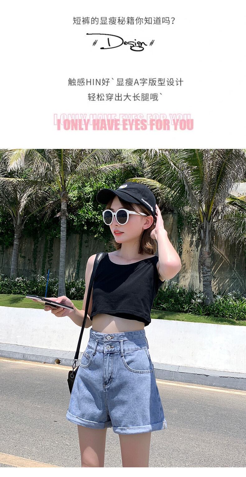 黒のワードロールエッジデニムショートパンツ女性の夏ルーズワイドレッグパンツ小さな背の高いウエストパンツ ブラック サマー 夏物 ショーツ ブルマー ワイドパンツ 7460043329864979 | framboise21