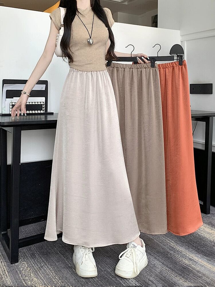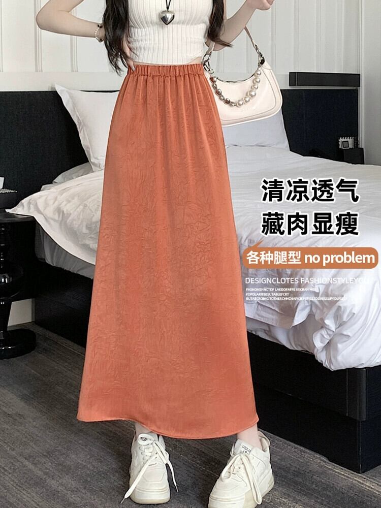 黒サテンアセテートフィッシュテールスカートレディース夏の高品質プリーツスカートハイウエストドレープ薄手ロングスカート ハイウェスト ブラック サマー 夏物 7460084282957183 | framboise21
