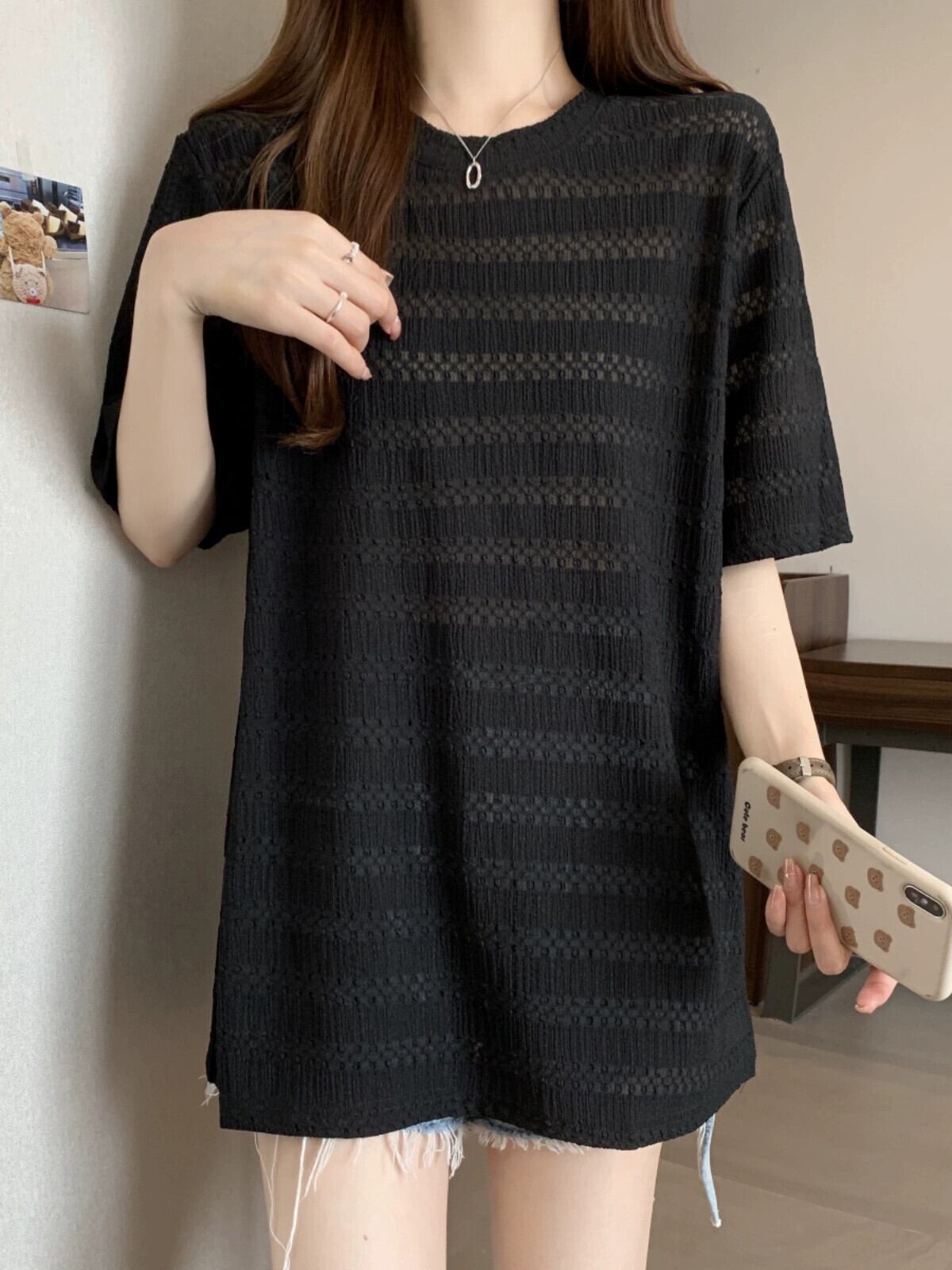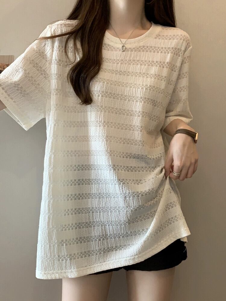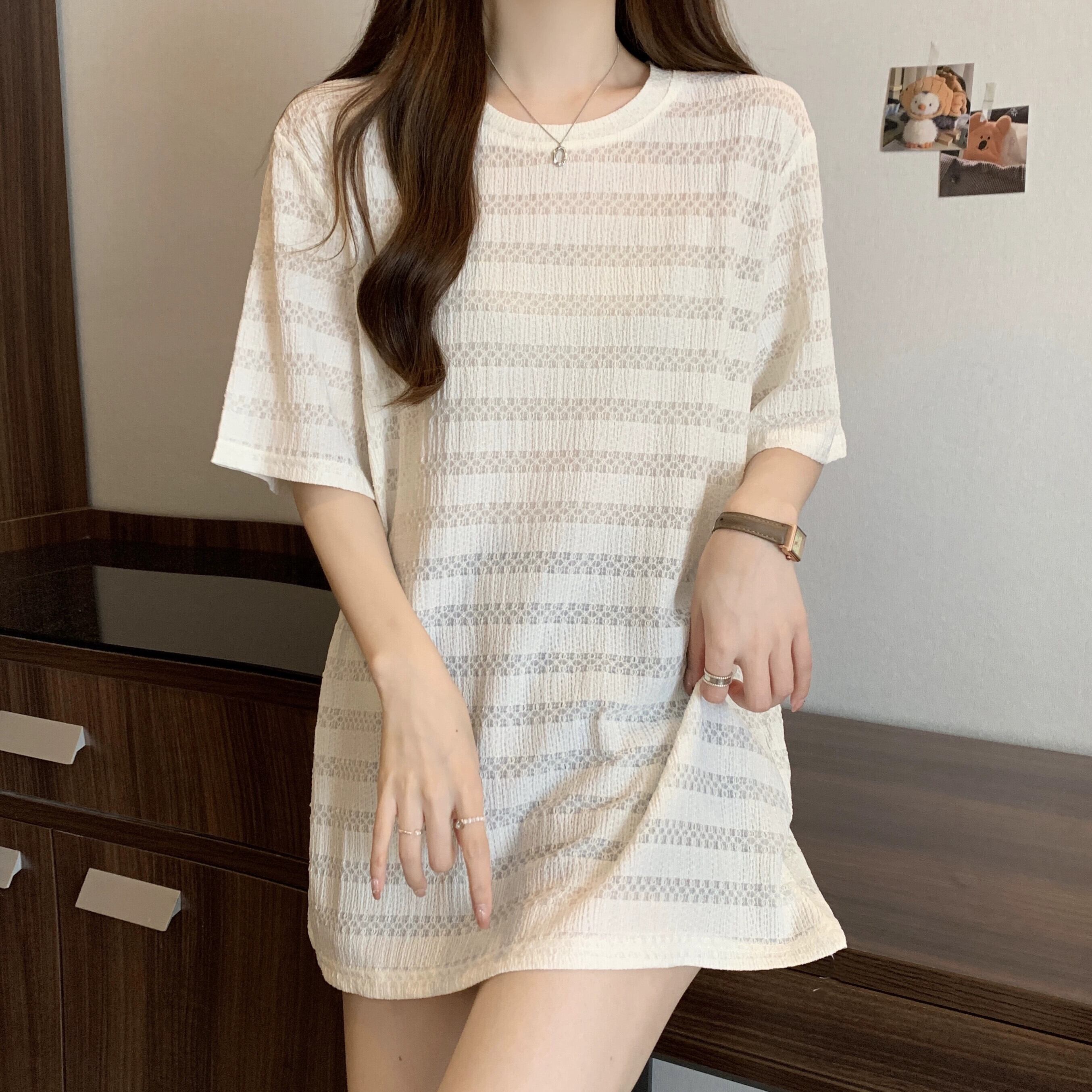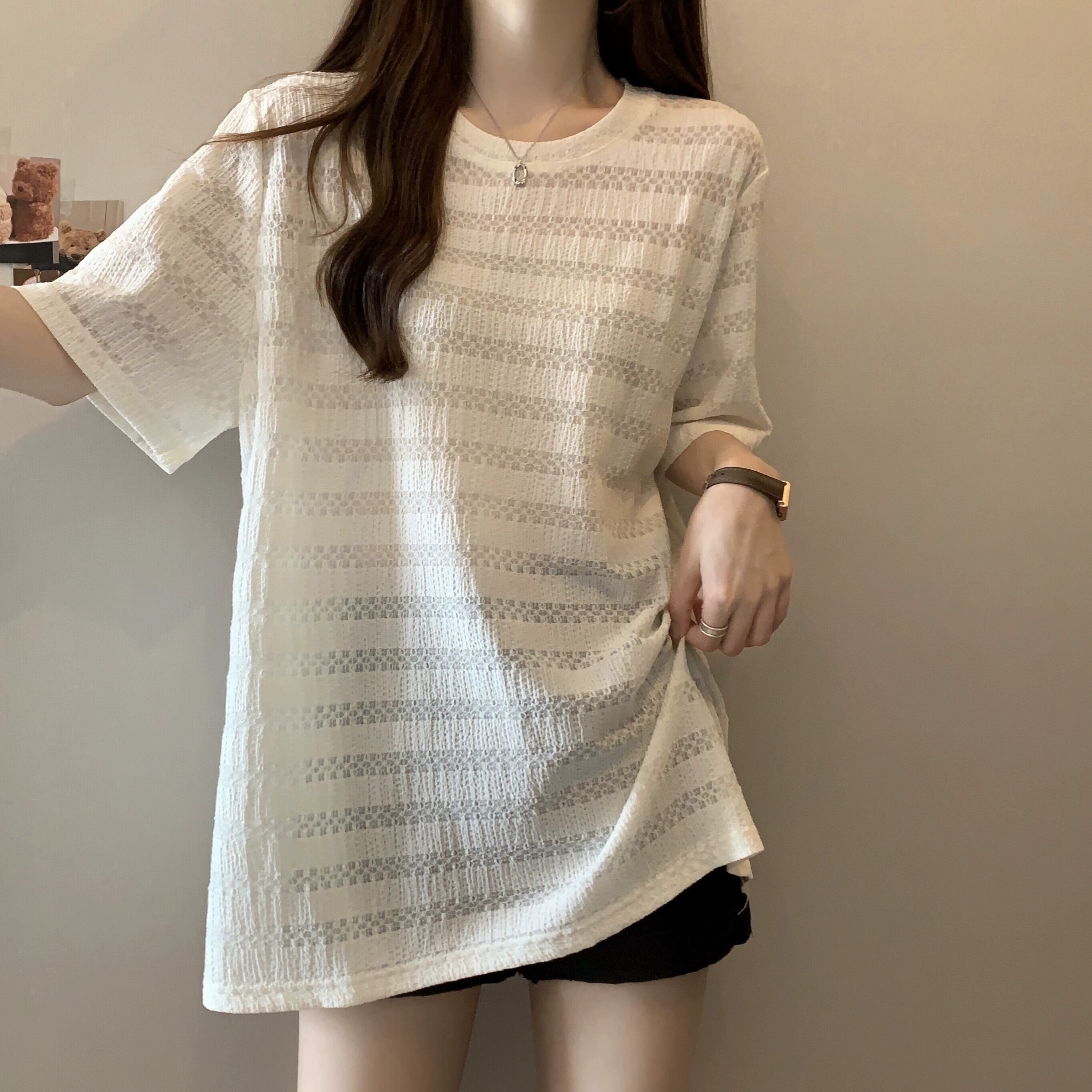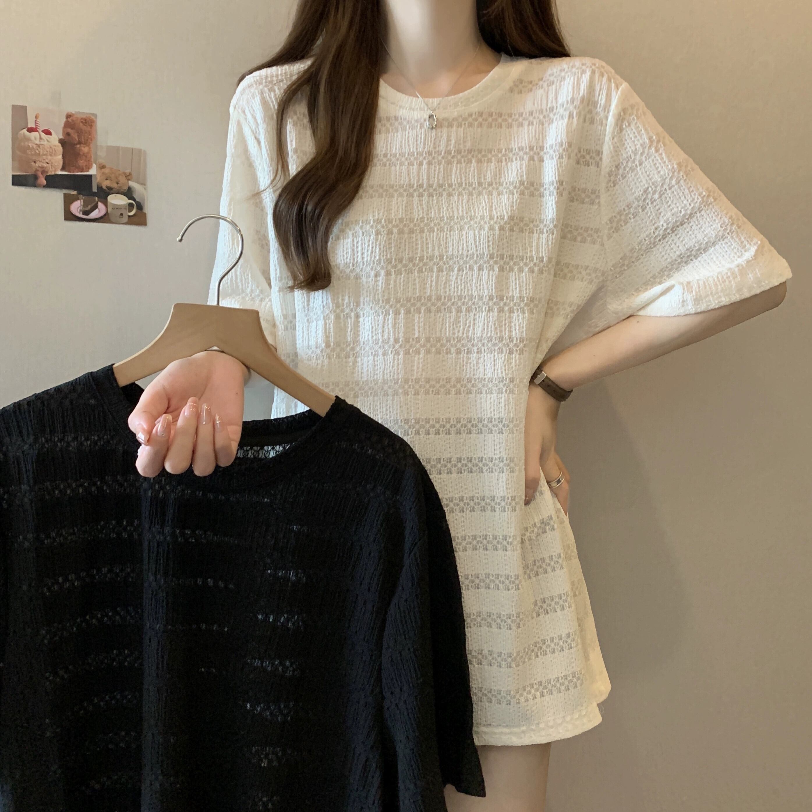 質感のある薄いアイスシルク半袖Tシャツレディース夏のデザインセンスゆったりと薄手オールマッチミッドレングス五分袖トップス レッド サマー 夏物 7460098725252799 | framboise21