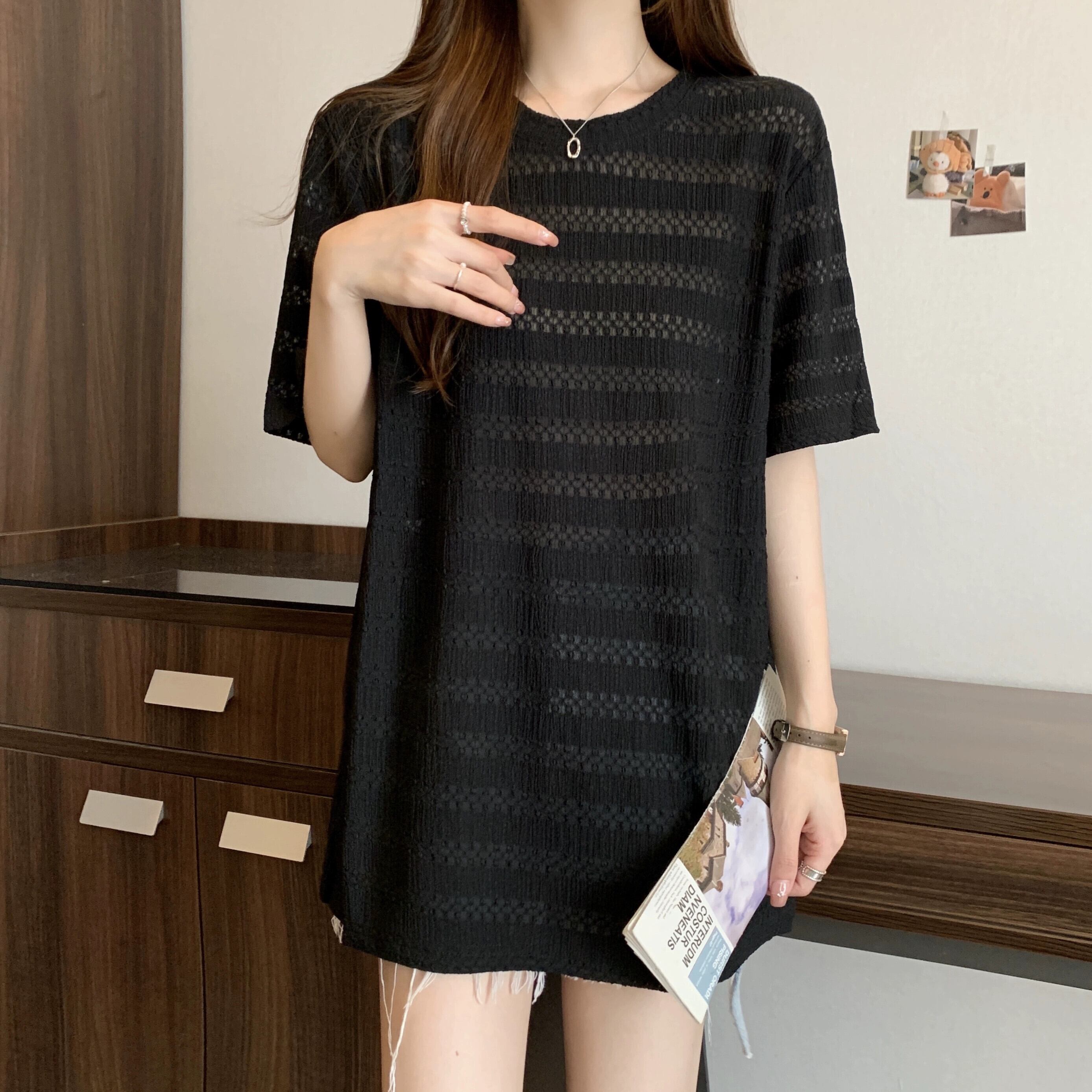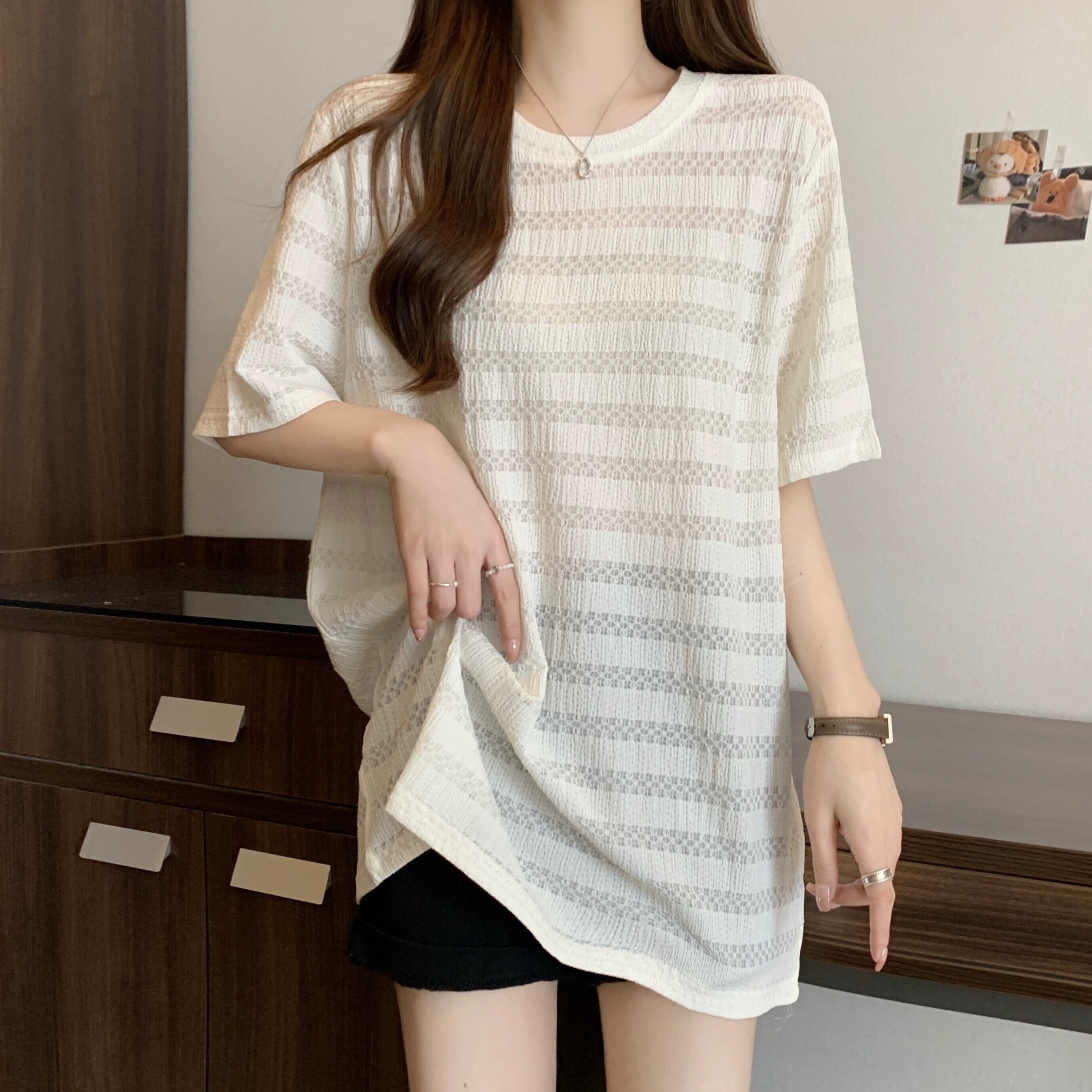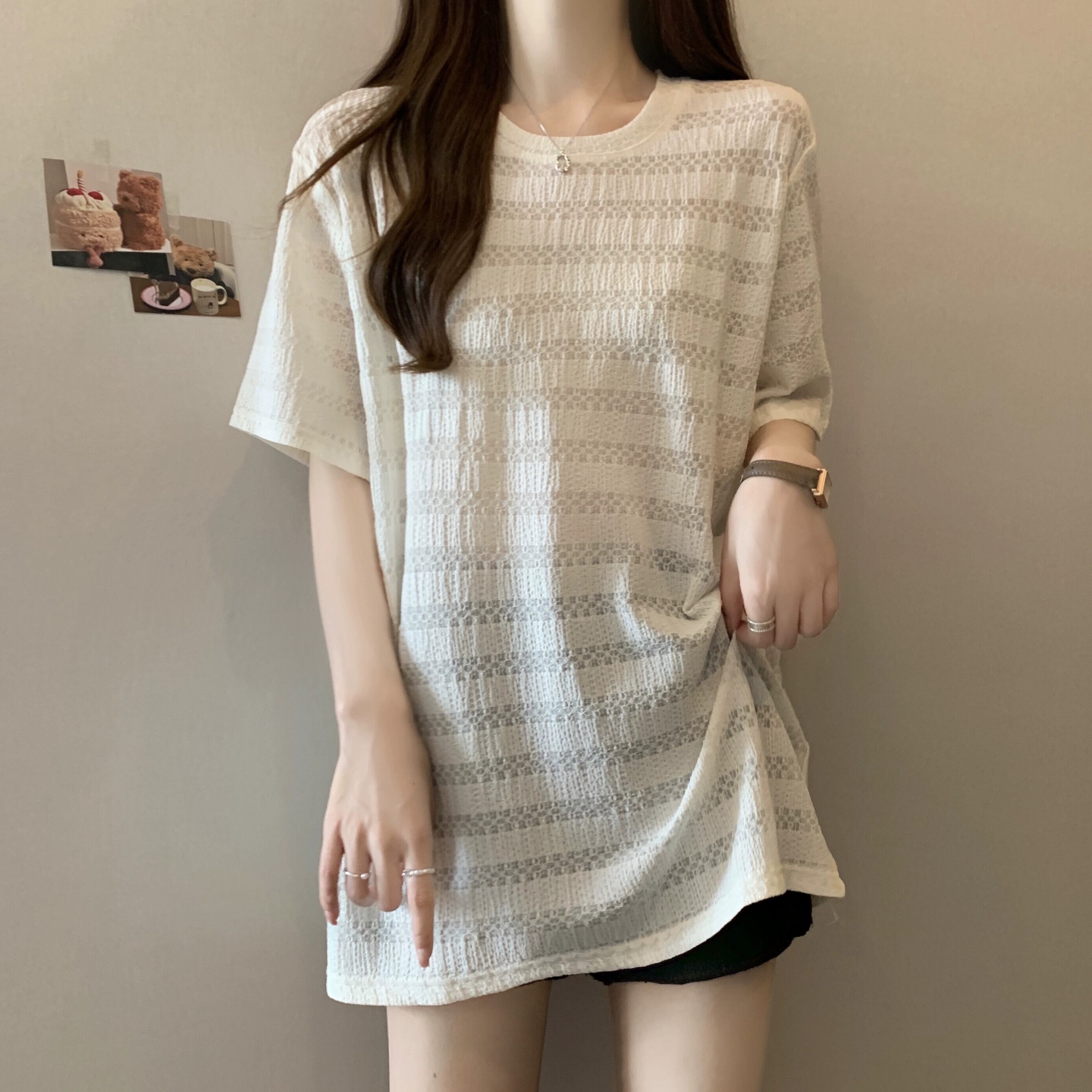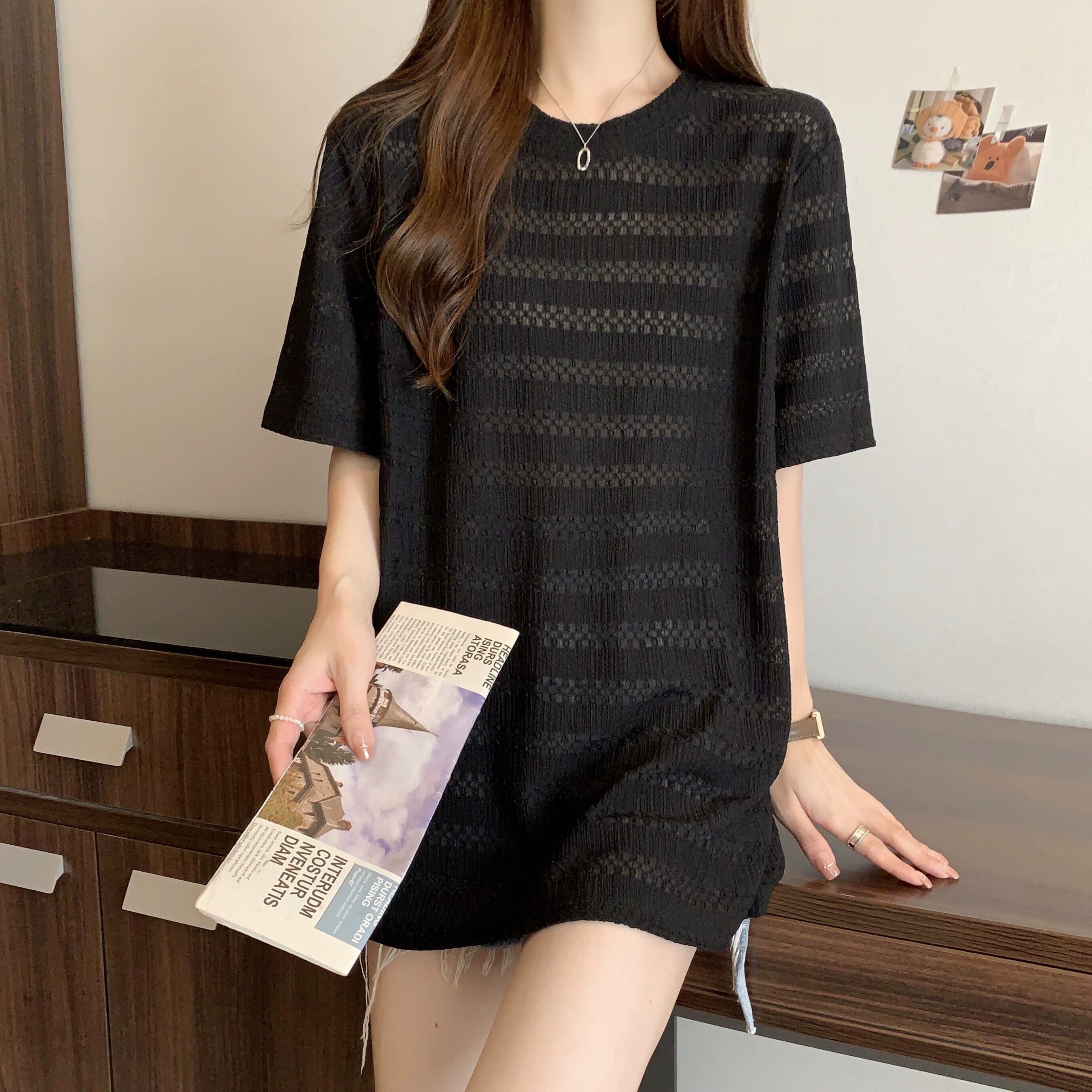 質感のある薄いアイスシルク半袖Tシャツレディース夏のデザインセンスゆったりと薄手オールマッチミッドレングス五分袖トップス レッド サマー 夏物 7460098725252799 | framboise21