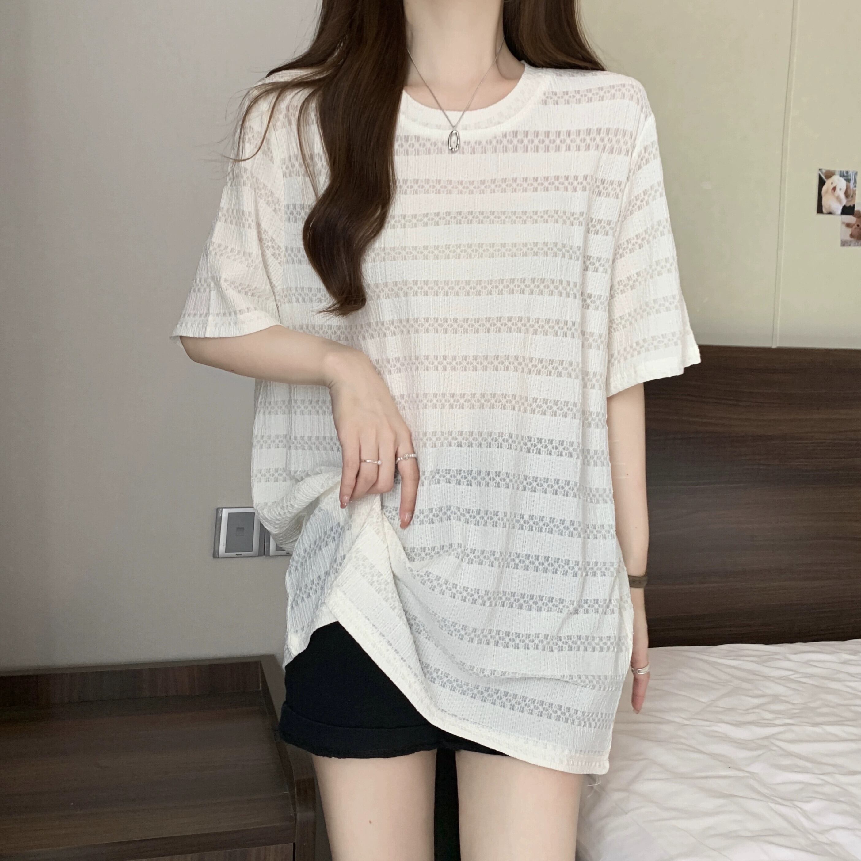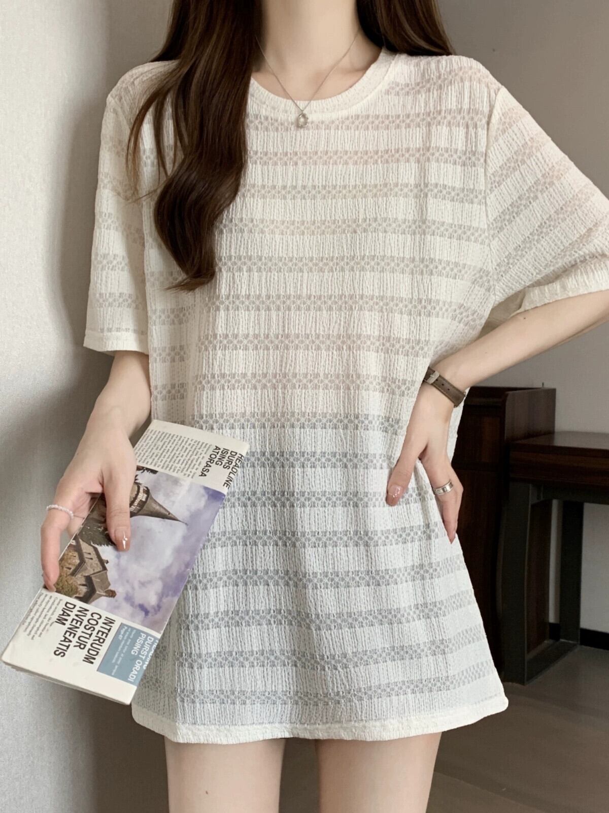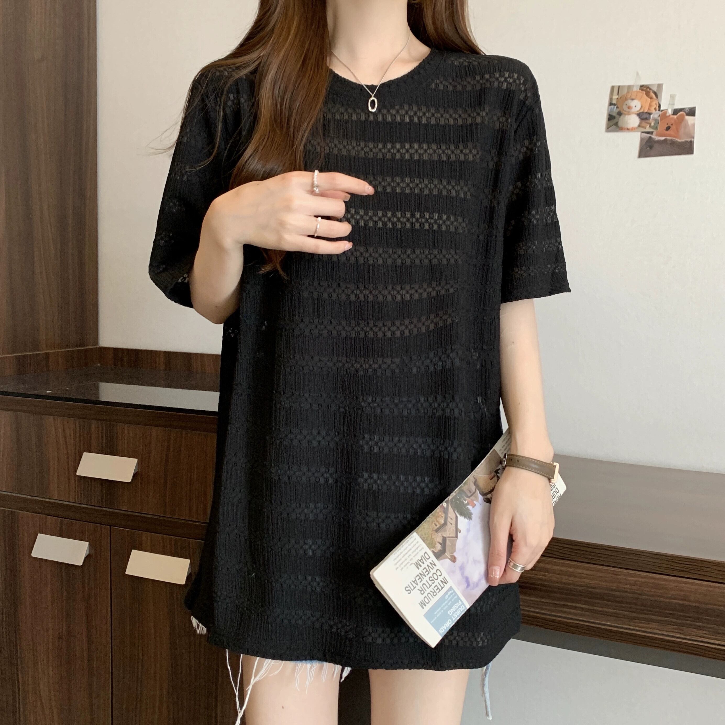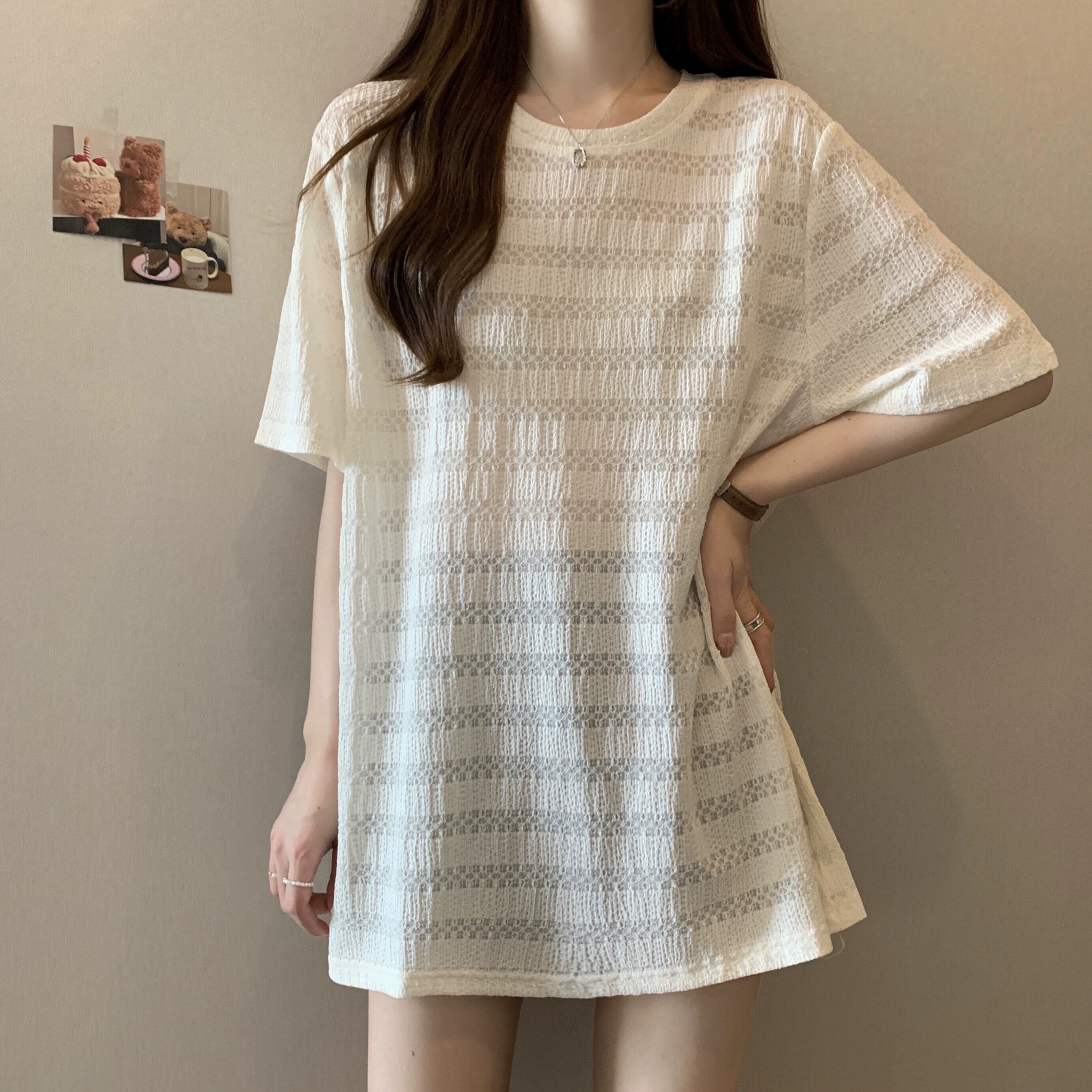 質感のある薄いアイスシルク半袖Tシャツレディース夏のデザインセンスゆったりと薄手オールマッチミッドレングス五分袖トップス レッド サマー 夏物 7460098725252799 | framboise21
