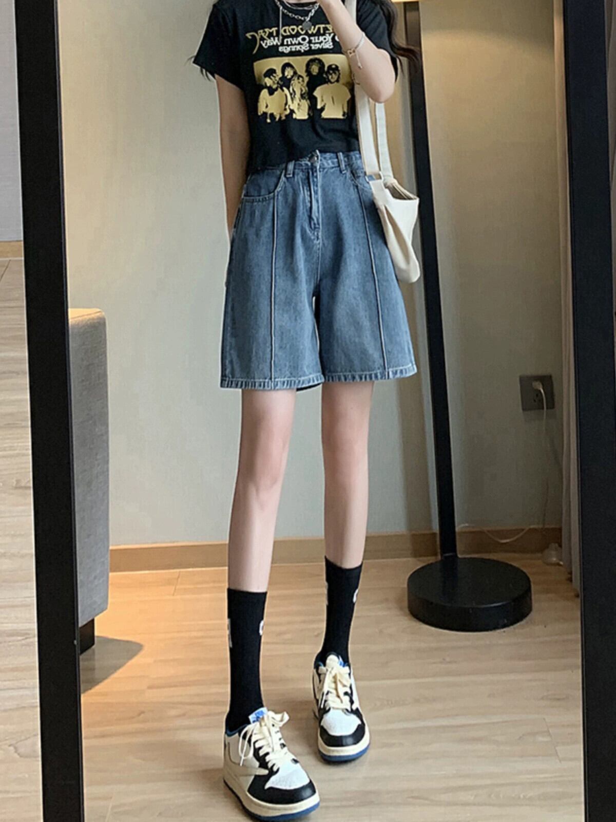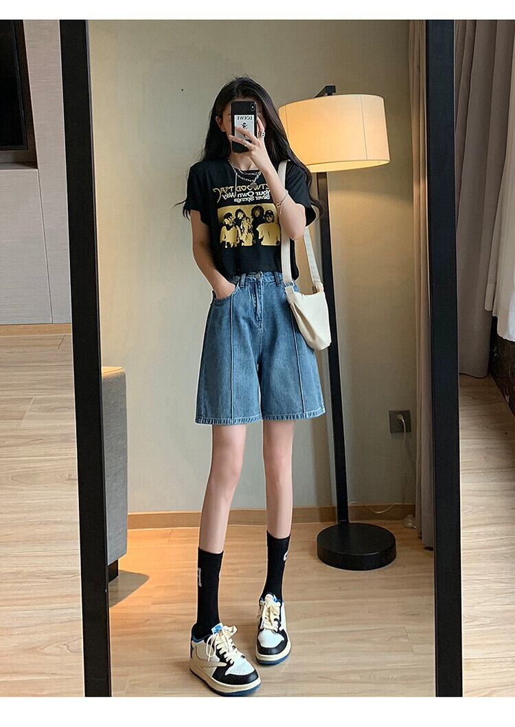 ウエスト 5 点デニム ショートパンツ レディース 2023 夏の新作痩身オールマッチ ストレート パンツ ルーズ ワイドレッグ パンツ トレンディ サマー 夏物 ショーツ ブルマー 7460044671243914 | framboise21