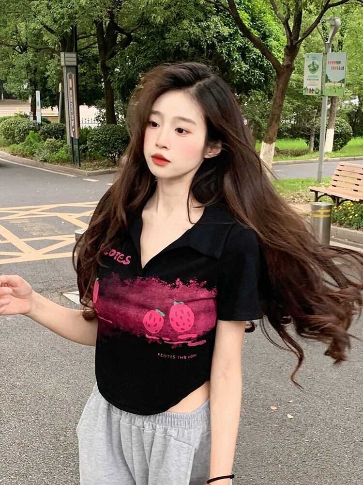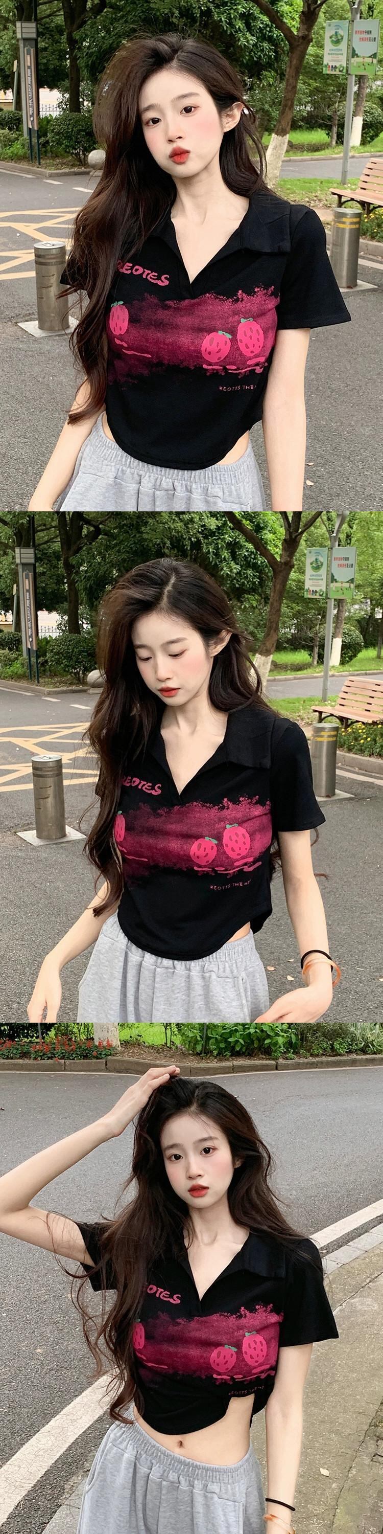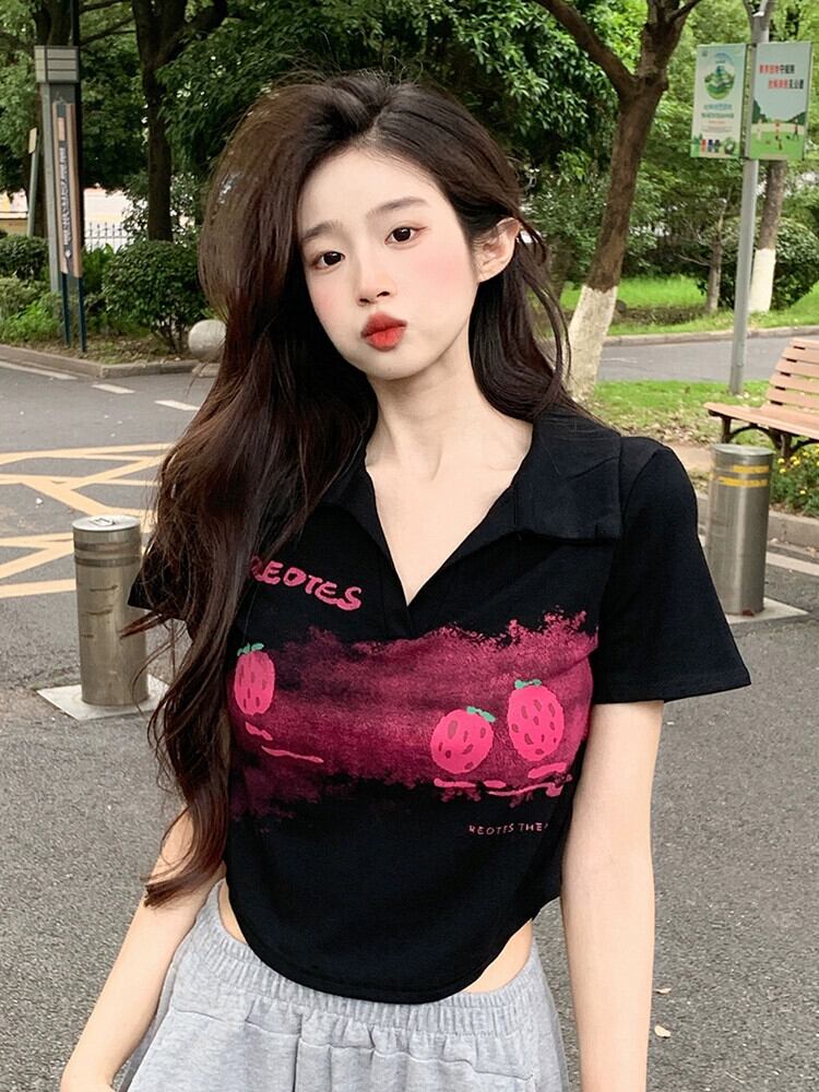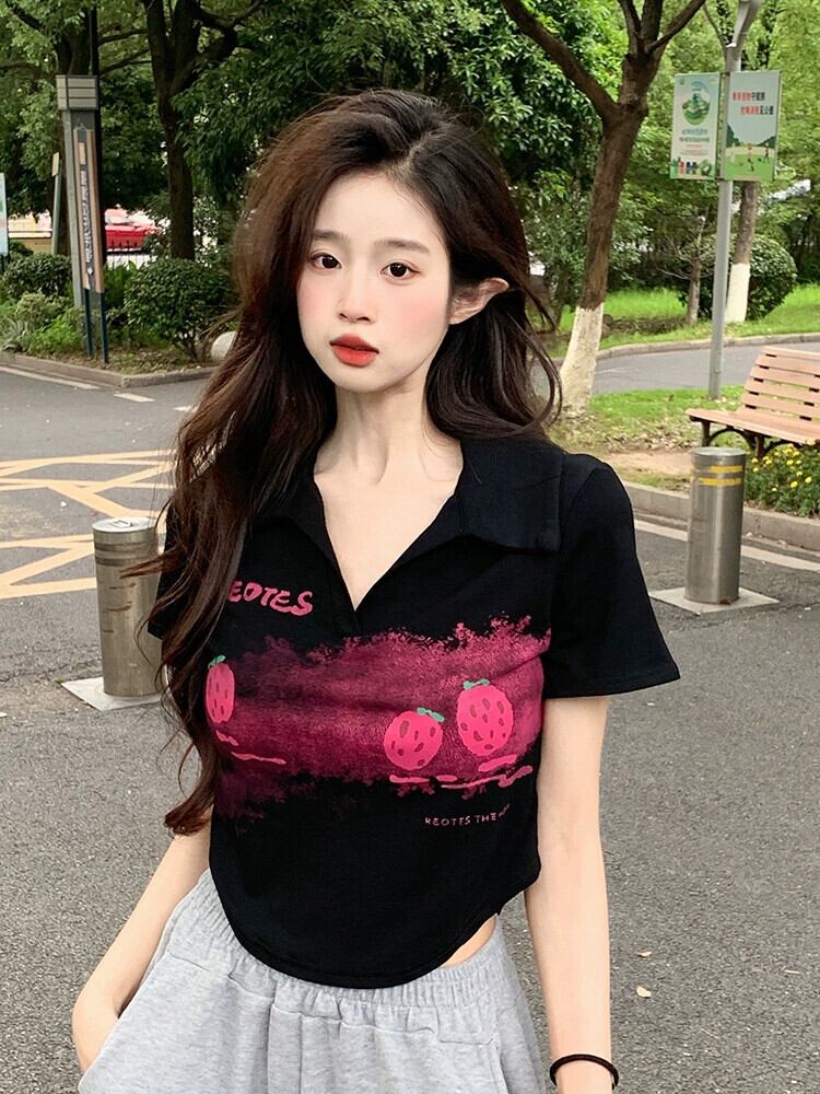 色:ホワイトラペル水彩ストロベリーT,ブラックラペルウォーターカラーストロベリーT