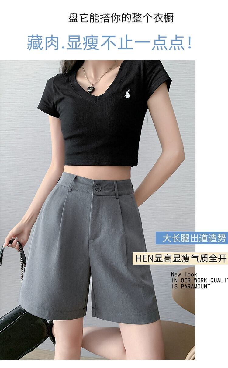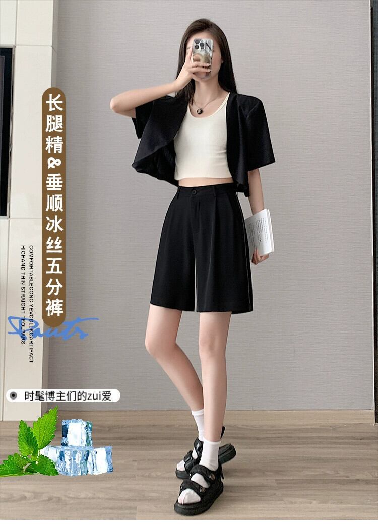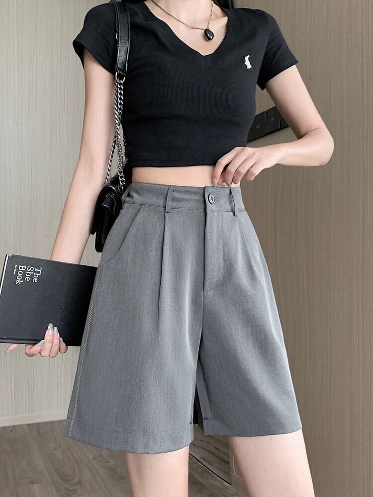 グレー ハイウエスト スーツ ショーツ レディース 夏 薄い アイス シルク ワイドレッグ ミッドパンツ 5 点式パンツ ルーズ カジュアル ストレートレッグ パンツ ハイウェスト サマー 夏物 ブルマー 7460097219508785 | framboise21