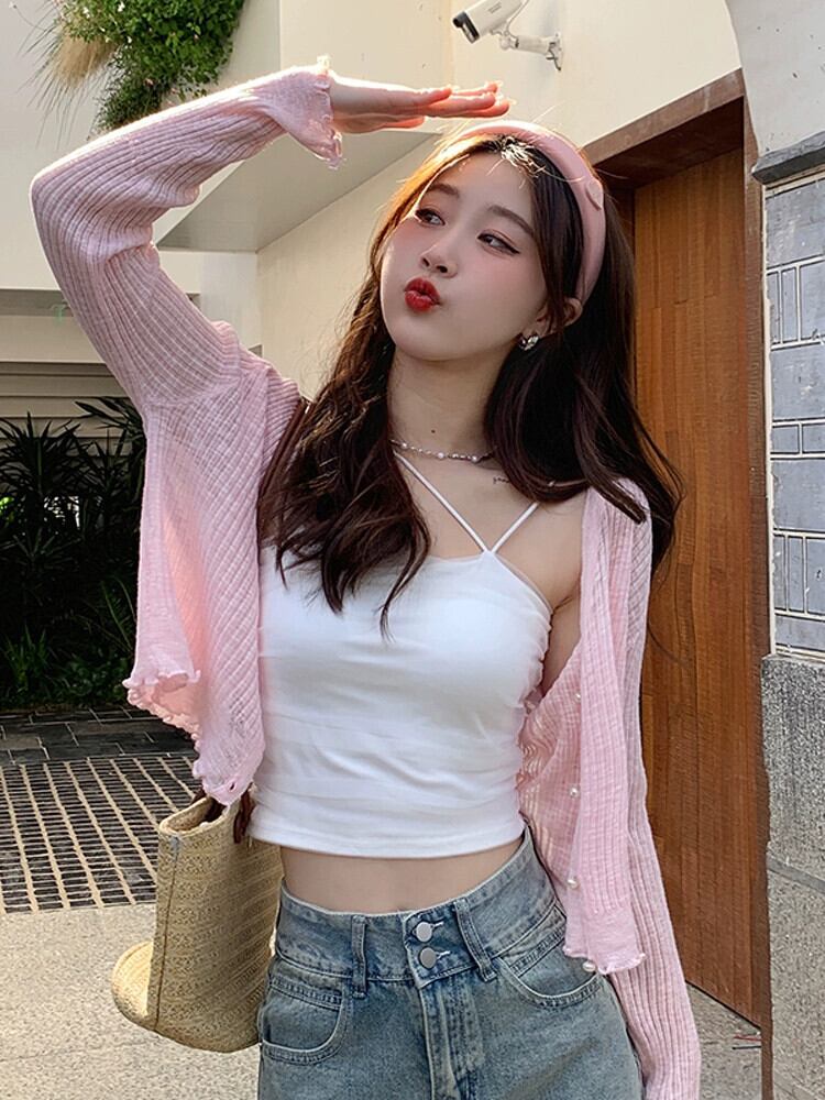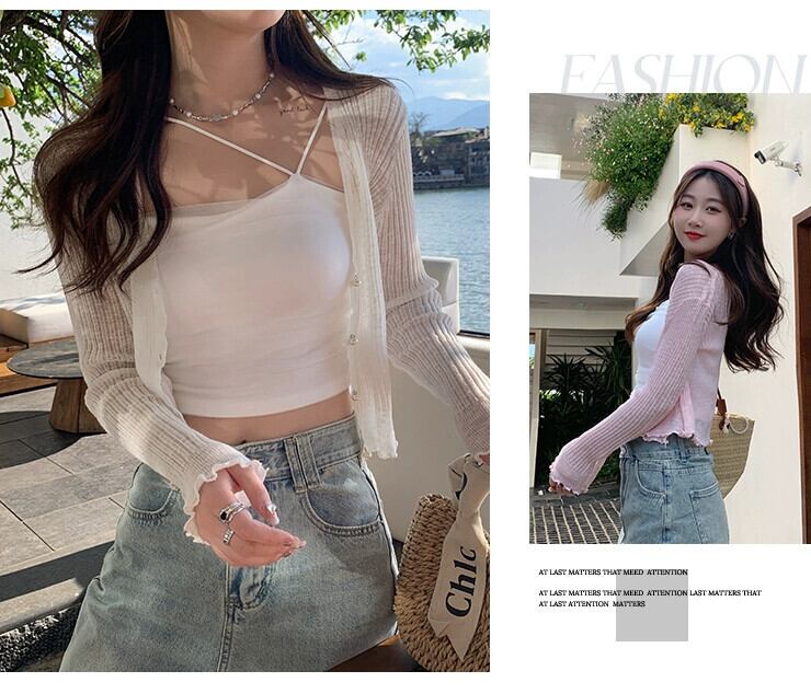 日焼け止め付きスカートアイスシルクカーディガン女性の夏の薄いショールストラップ付き小さなコートエアコン付きルームニットトップ サマー 夏物 7460095235878321 | framboise21
