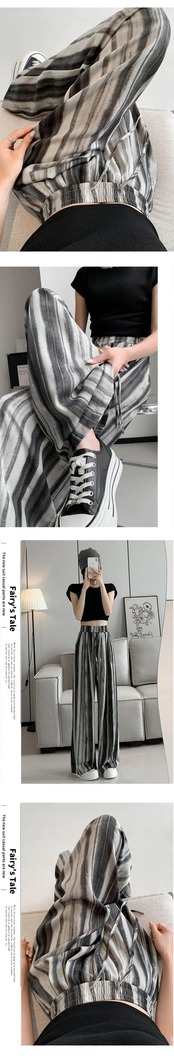 水墨画アイスシルクワイドレッグパンツ女性の夏薄いセクション日焼け止めパンツスリムハイウエストドレープストレートカジュアル女性のパンツ潮 ハイウェスト サマー 夏物 7460015003052015