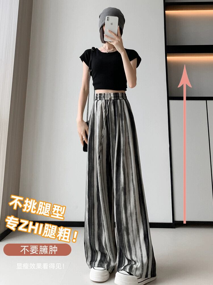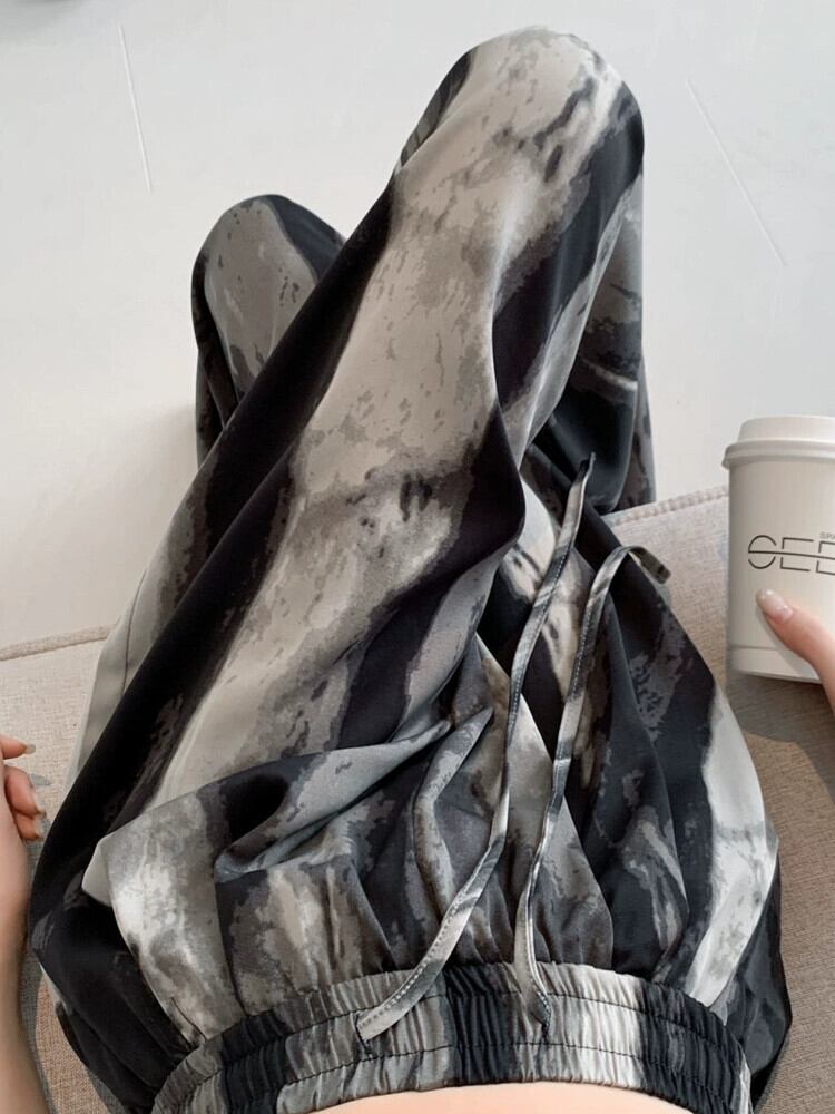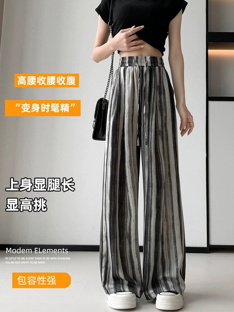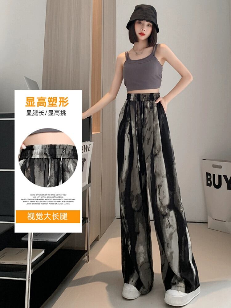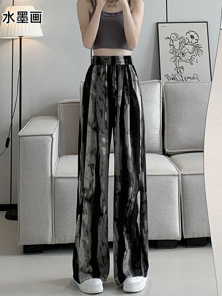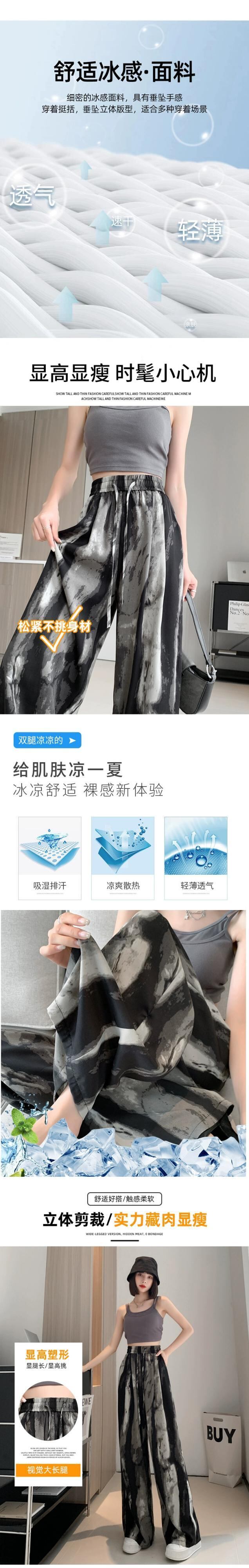 水墨画アイスシルクワイドレッグパンツ女性の夏薄いセクション日焼け止めパンツスリムハイウエストドレープストレートカジュアル女性のパンツ潮 ハイウェスト サマー 夏物 7460015003052015 | framboise21