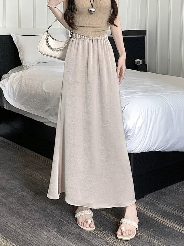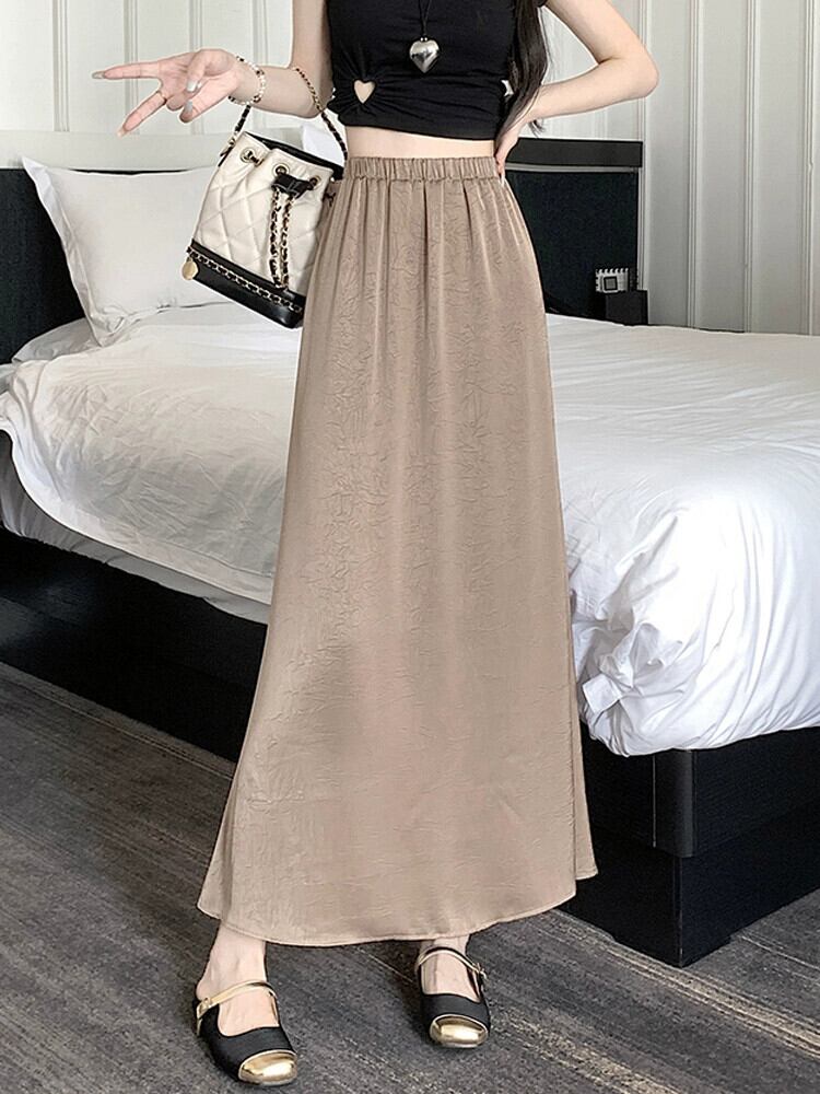 アセテートサテンハーフレングススカートレディース夏の気質高級感薄くて万能な薄セクションプリーツハイウエストAラインマーメイドスカート ハイウェスト サマー 夏物 7460062560199413 | framboise21