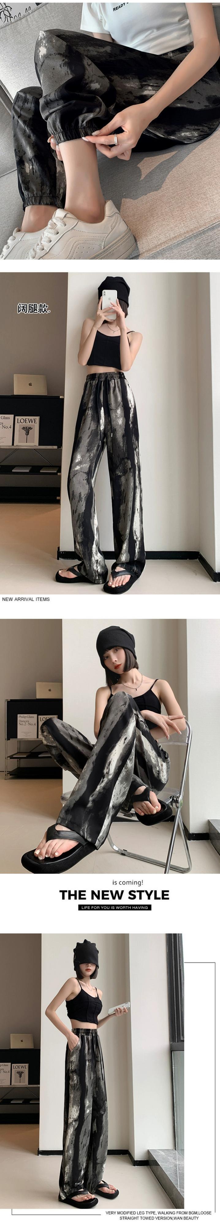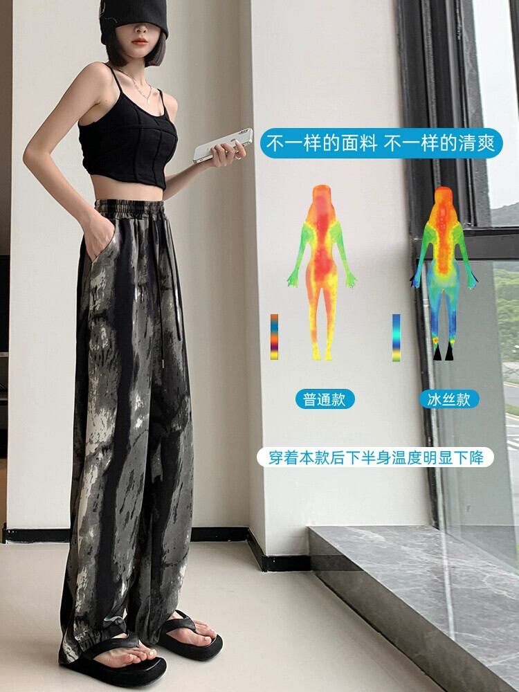 9 点ビームフィートアイスシルクパンツ女性の夏の薄いセクションルーズで薄いハーレムパンツ小さなハイウエストシフォンカジュアルパンツ ハイウェスト サマー 夏物 7460062646654390 | framboise21