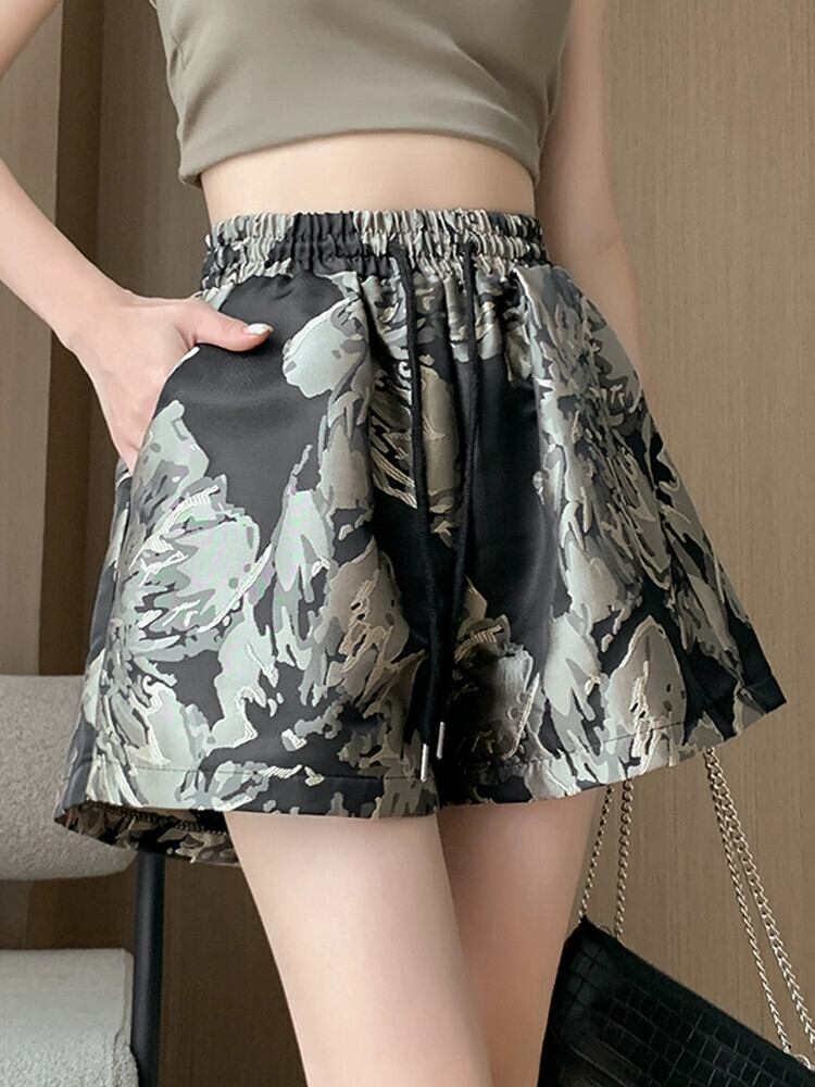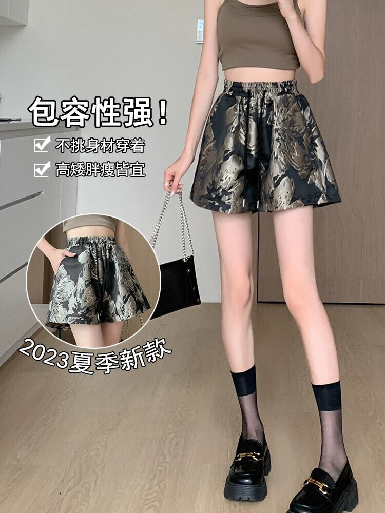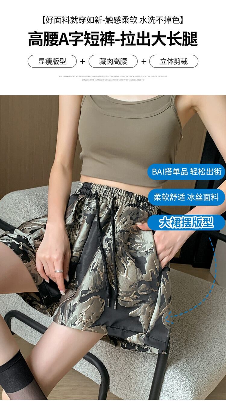 ウエスト A ライン カジュアル ショーツ レディース 夏 レトロ ルーズ スリム ハイウエスト パンツ 薄いセクション アイスシルク ワイドレッグ パンツ トレンディ ハイウェスト サマー 夏物 ブルマー Aライン ワイドパンツ 7460011762699755 | framboise21