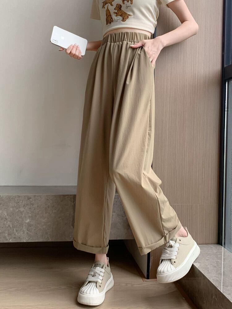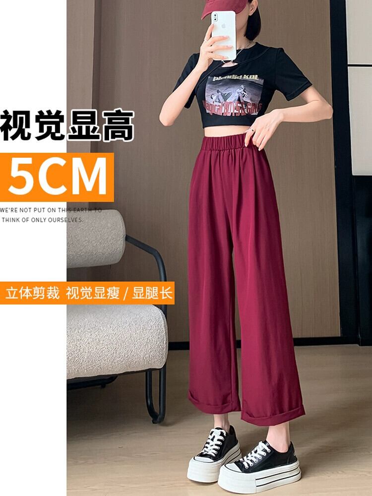 速乾性アイスシルクナローバージョンワイドレッグパンツレディース夏の薄いセクションルーズで薄いストレートチューブハイウエストドレープカジュアル9点パンツ ハイウェスト サマー 夏物 7460012424713581 | framboise21