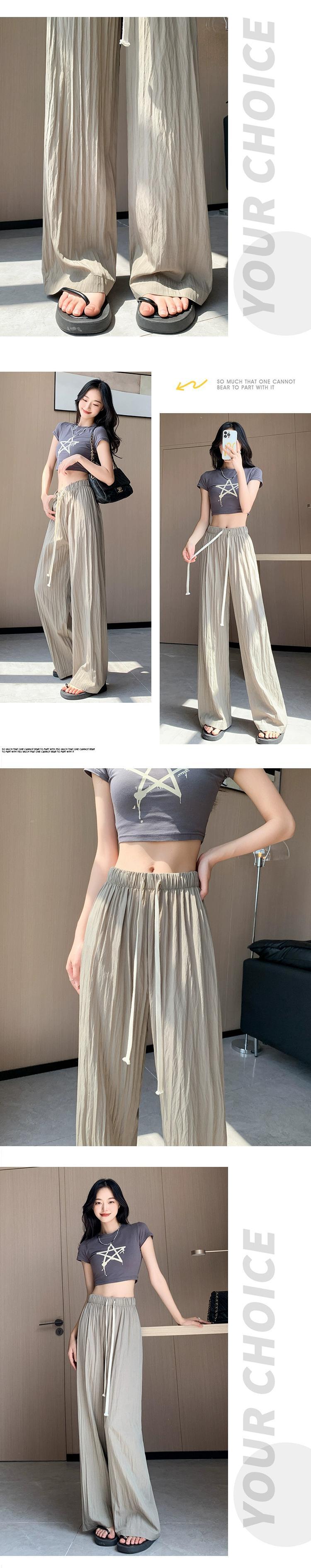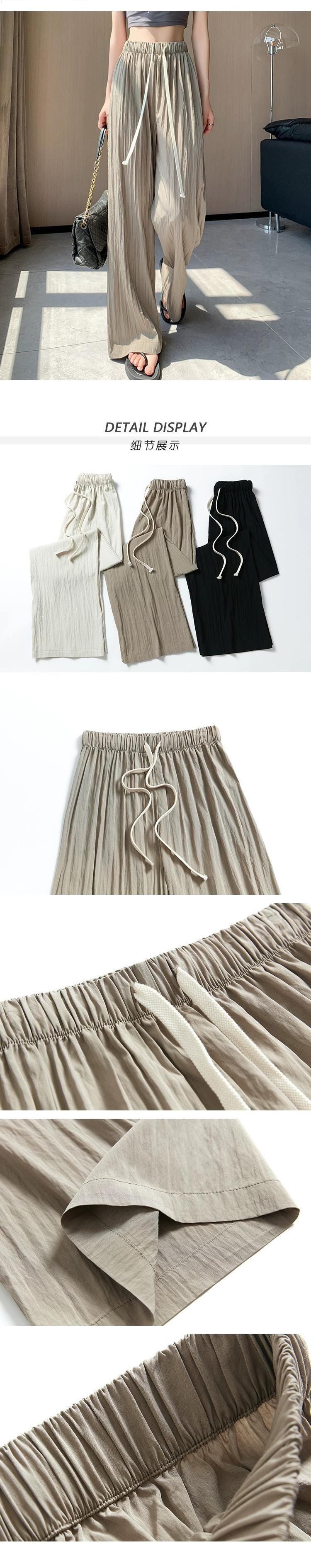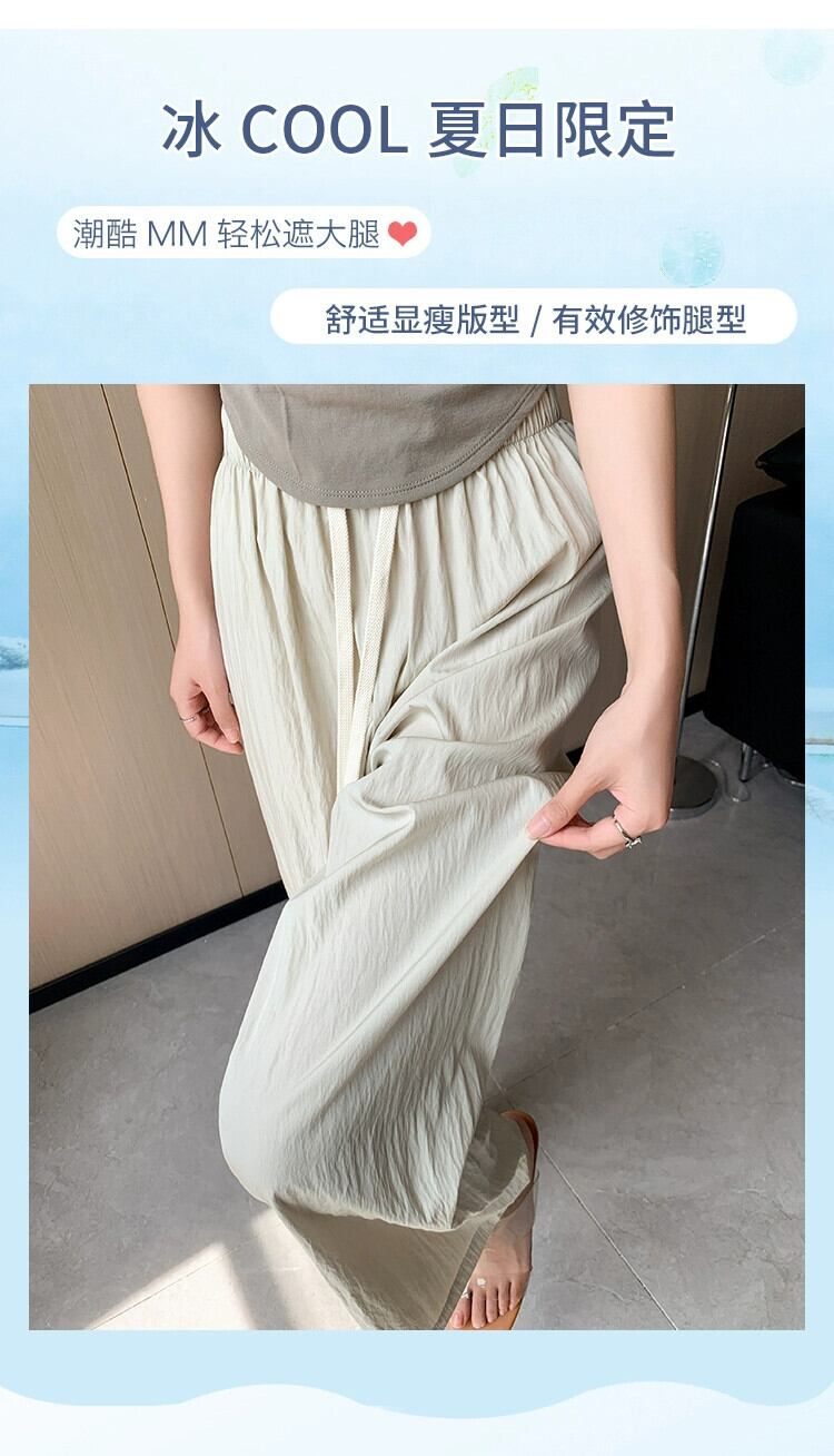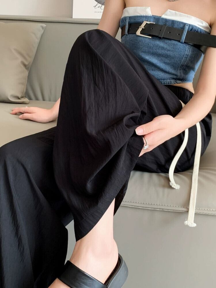 ブラックアイスシルクワイドレッグパンツ女性の夏薄いセクション小さなハイウエストドレープしわテクスチャカジュアル日焼け止めパンツ ハイウェスト サマー 夏物 7460036840875293 | framboise21