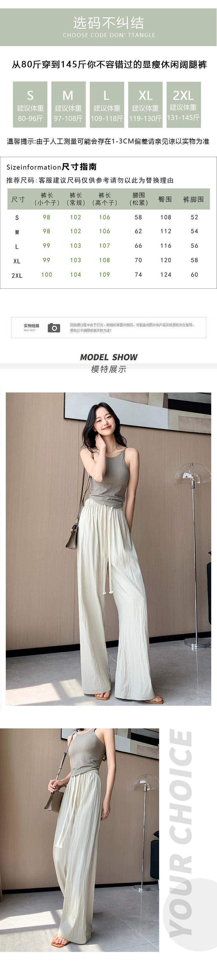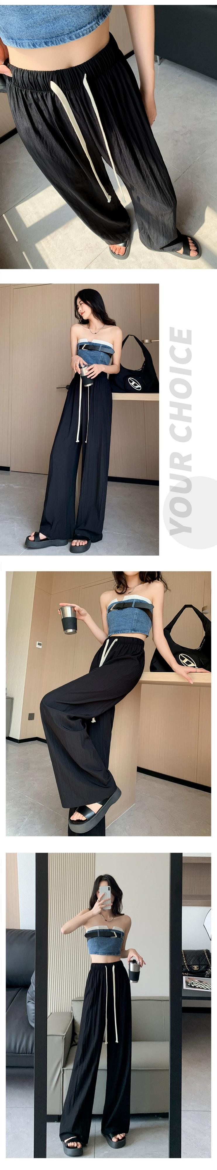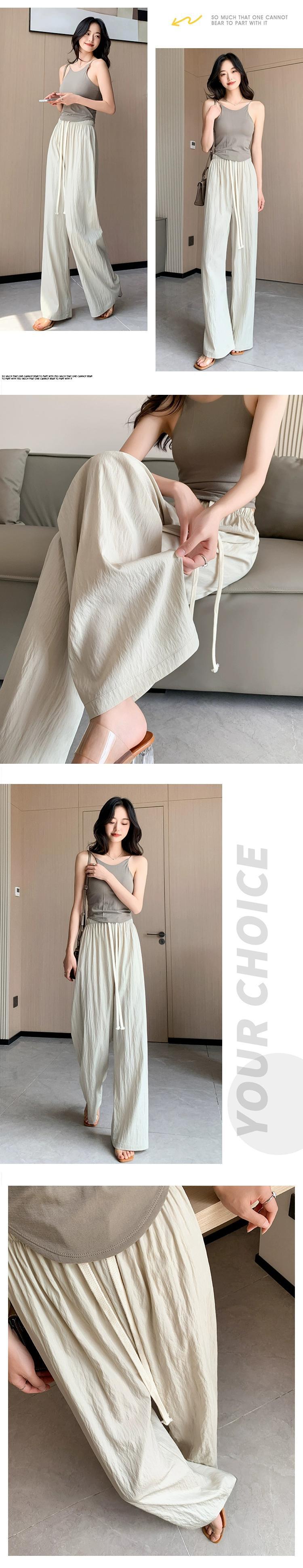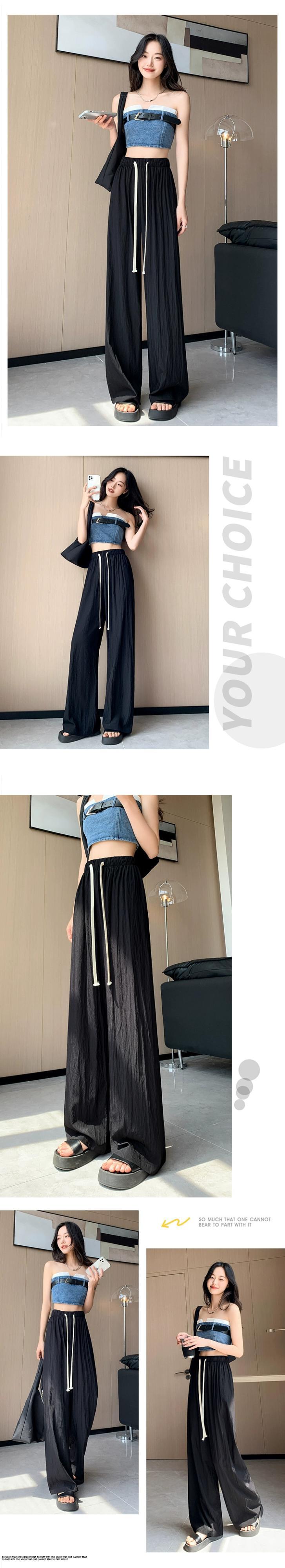 ブラックアイスシルクワイドレッグパンツ女性の夏薄いセクション小さなハイウエストドレープしわテクスチャカジュアル日焼け止めパンツ ハイウェスト サマー 夏物 7460036840875293 | framboise21