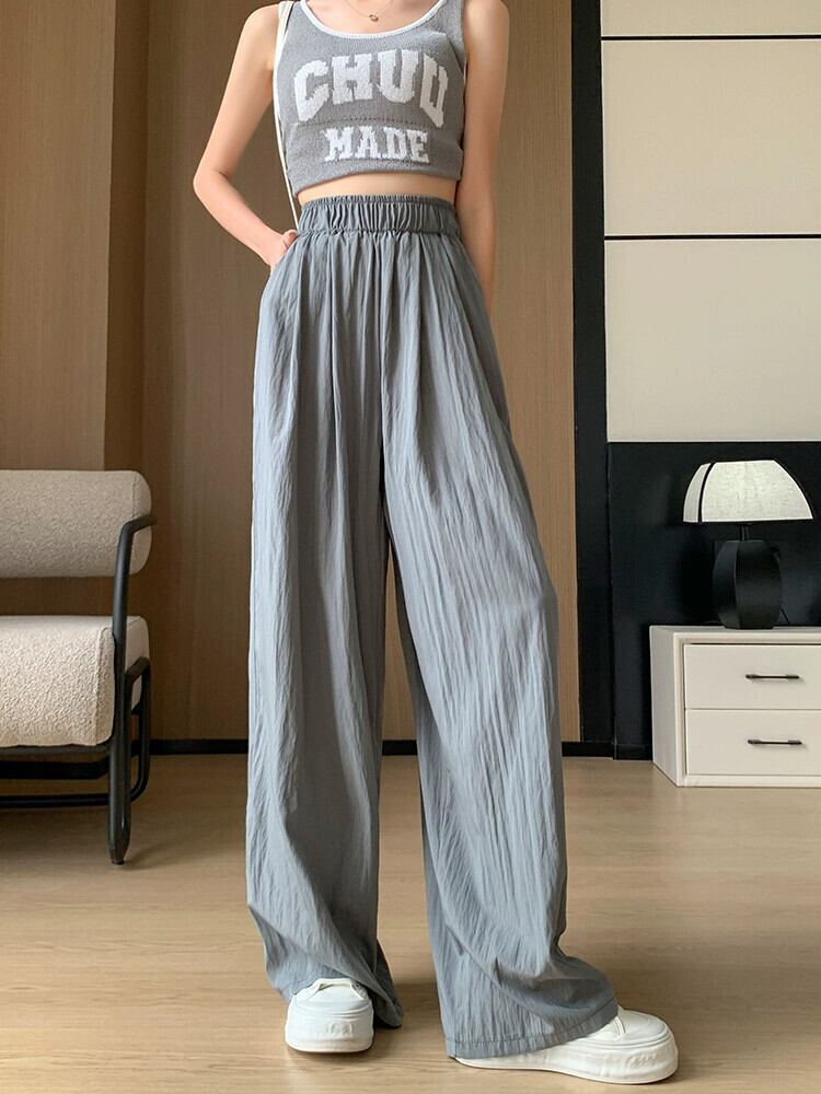 アイスシルクコットンリネンワイドレッグパンツ女性の夏の薄いリネンパンツルーズストレートウエストドレープ日焼け止め女性のパンツ サマー 夏物 ワイドパンツ 7460045252673371 | framboise21