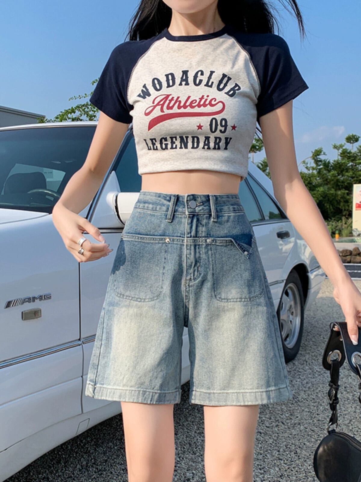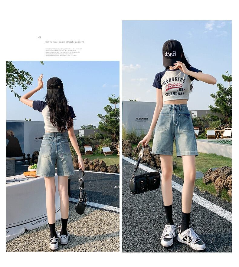 ウエスト 5 点デニム ショートパンツ レディース 2023 夏の新作 ストレート パンツ 5 点パンツ ルーズ スリム ワイドレッグ パンツ サマー 夏物 ショーツ ブルマー 7460092290047864 | framboise21