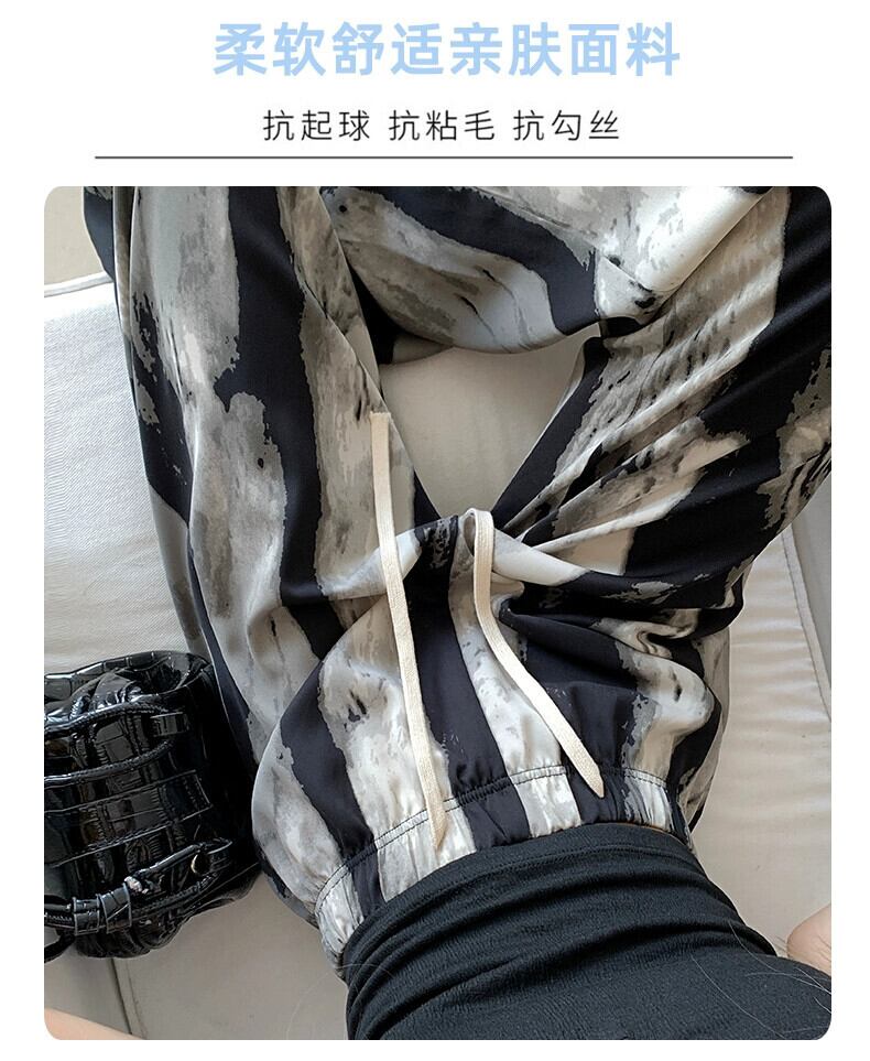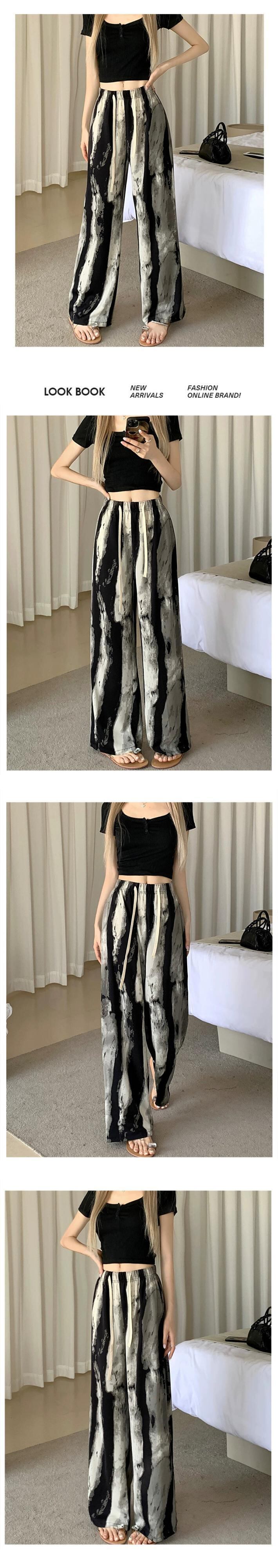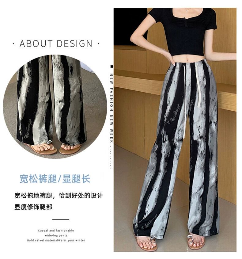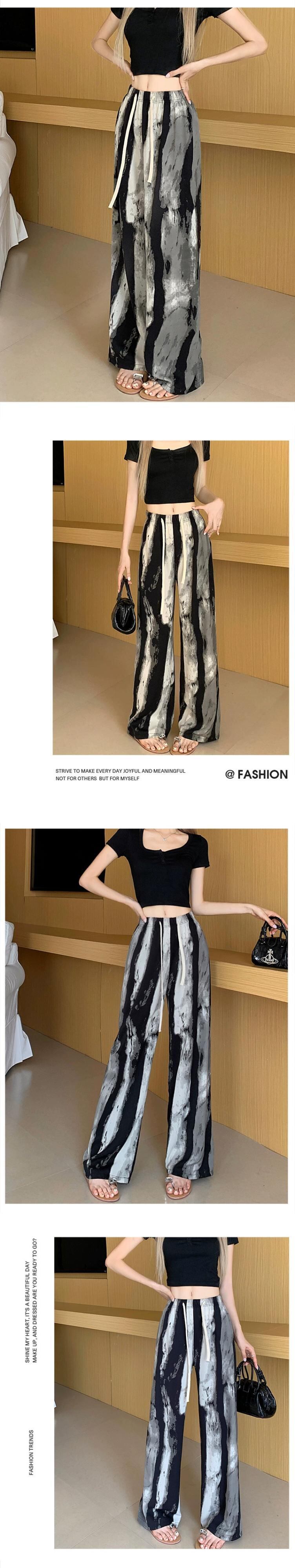 プリントインクワイドレッグパンツ女性の夏薄いアイスシルクパンツハイウエストカジュアル小さなストレート垂直日焼け止めパンツ ハイウェスト サマー 夏物 7460013269001906 | framboise21