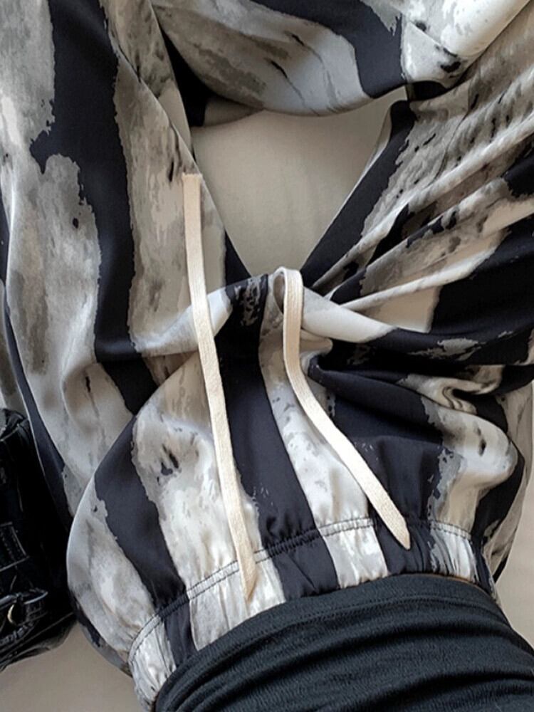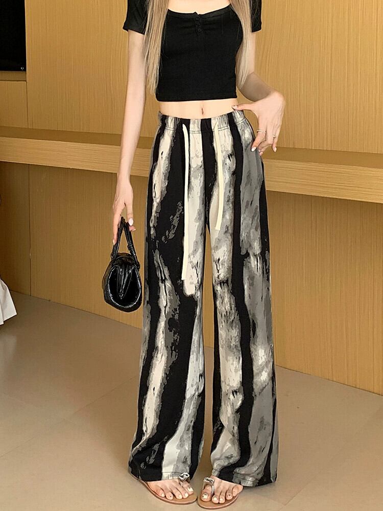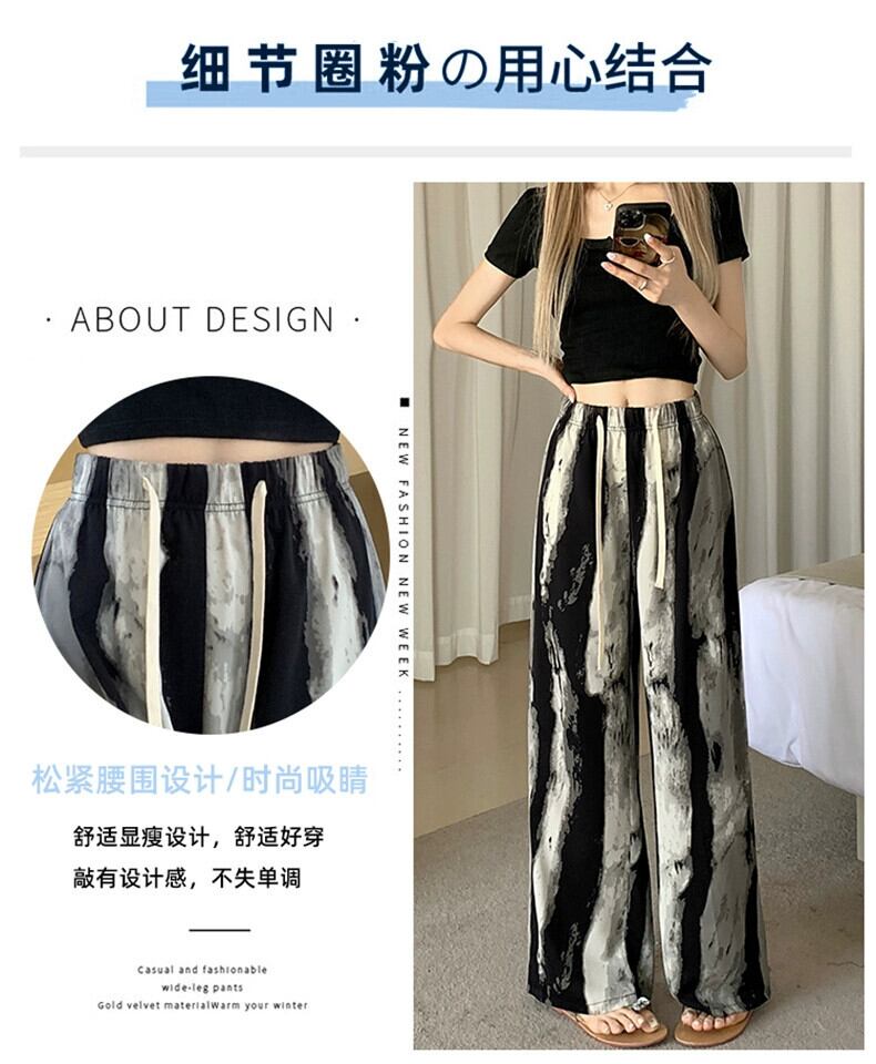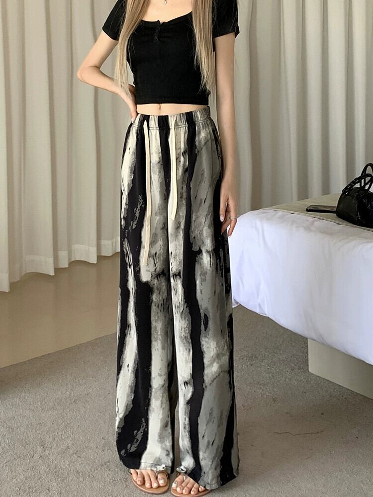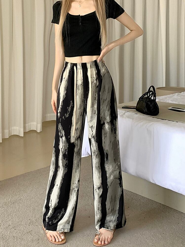 プリントインクワイドレッグパンツ女性の夏薄いアイスシルクパンツハイウエストカジュアル小さなストレート垂直日焼け止めパンツ ハイウェスト サマー 夏物 7460013269001906 | framboise21