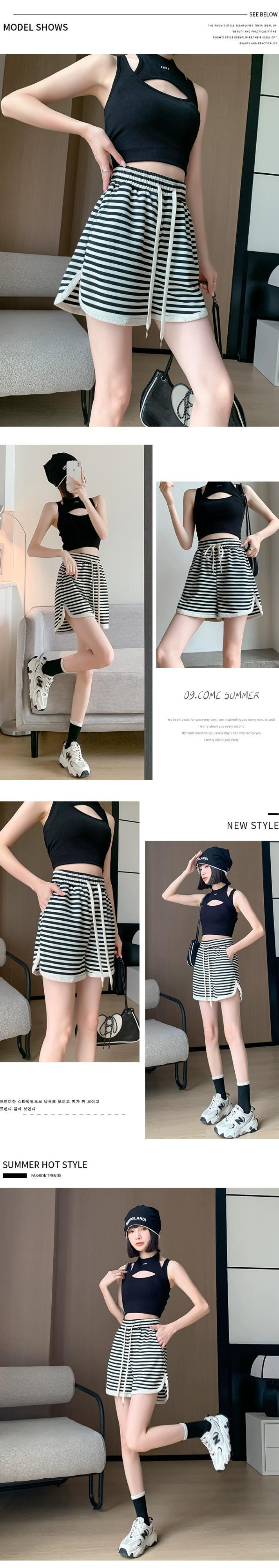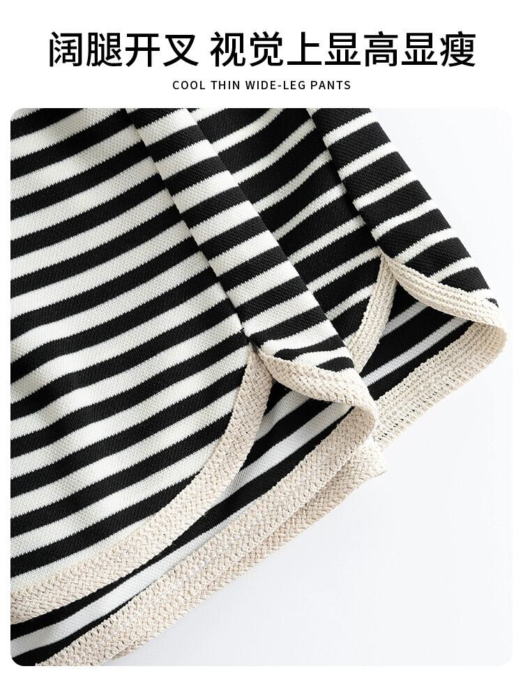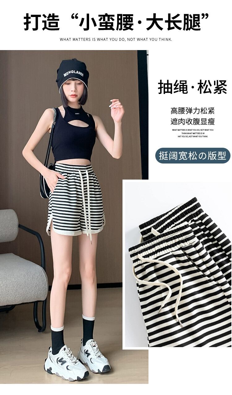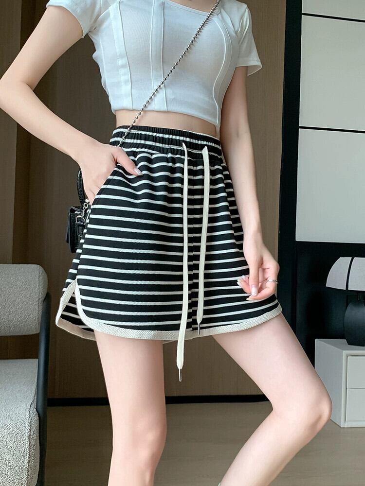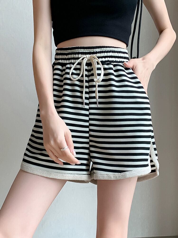 -ウエスト ワイドレッグ ストライプ ショートパンツ レディース 夏 ルーズ カジュアル 伸縮性ウエスト スリット パンツ アウター Aライン ドローストリング パンツ エラスティック サマー 夏物 ショーツ ブルマー 7460035893846789 | framboise21