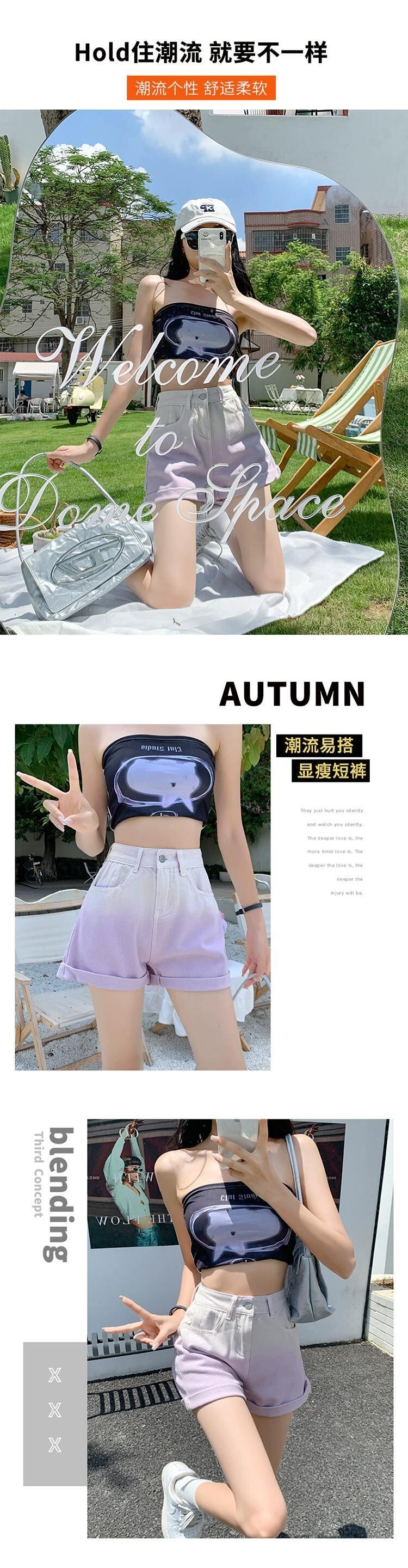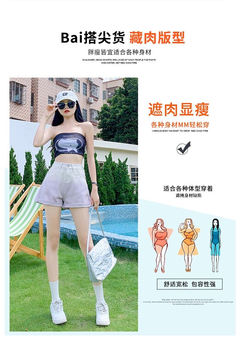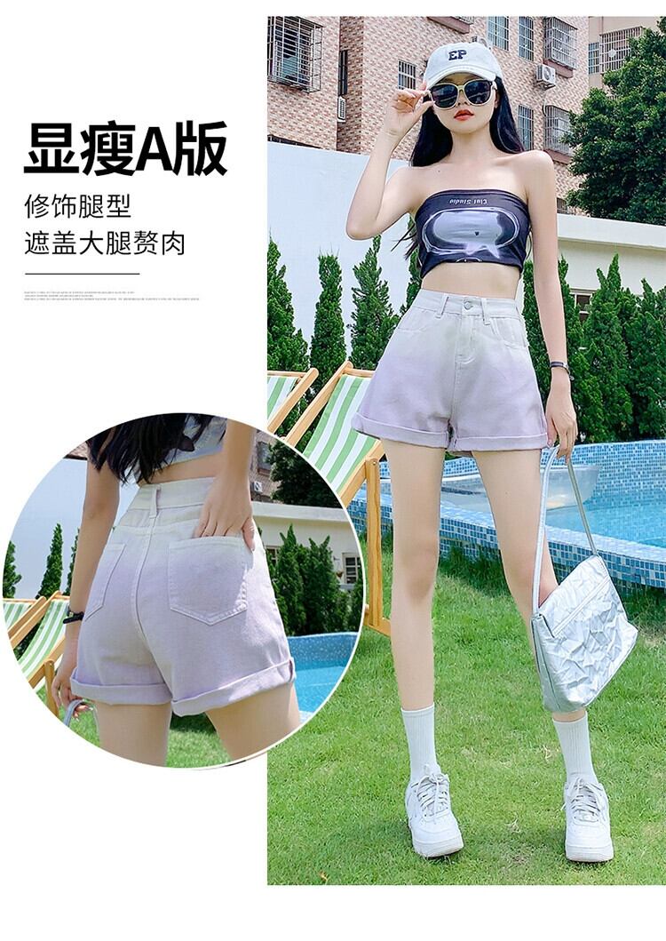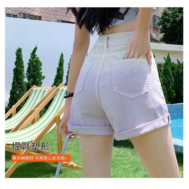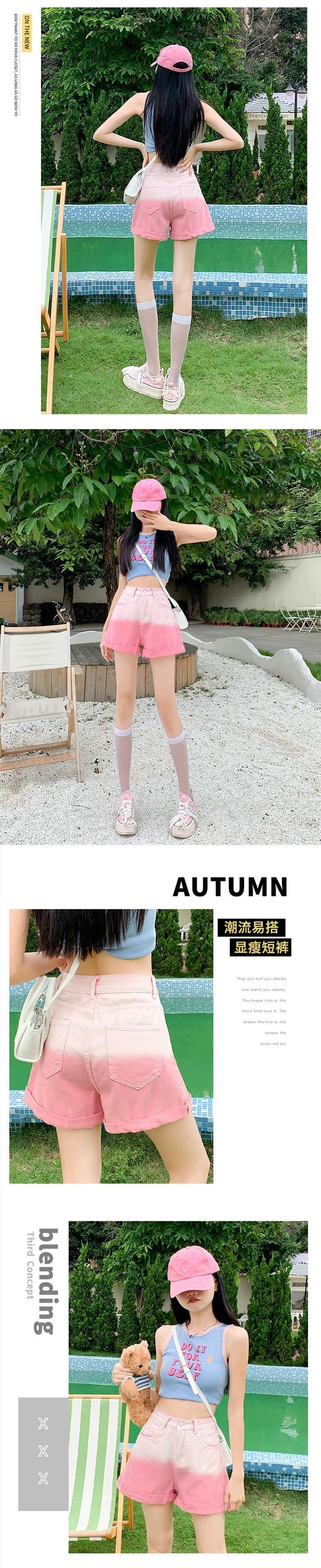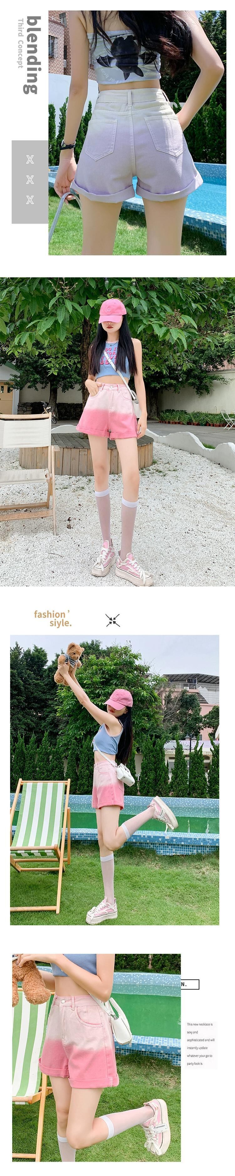 ロールワイドレッグデニムショートパンツレディース2023年夏新作アウターハイウエストパンツAラインピンクグラデーションパンツ潮 サマー 夏物 ショーツ ブルマー 7460083366488432 | framboise21