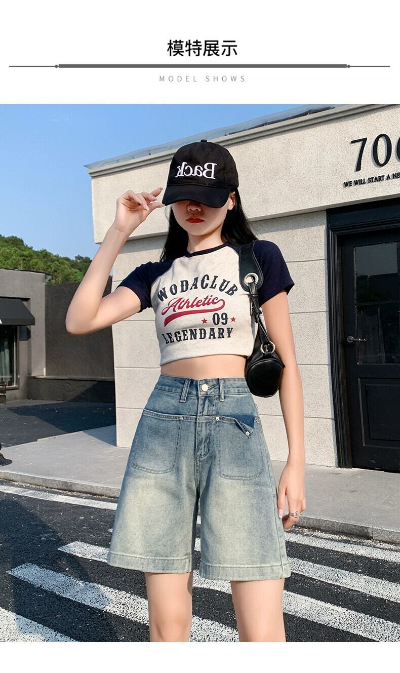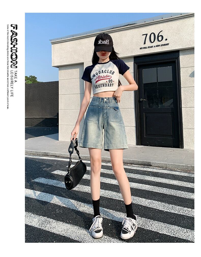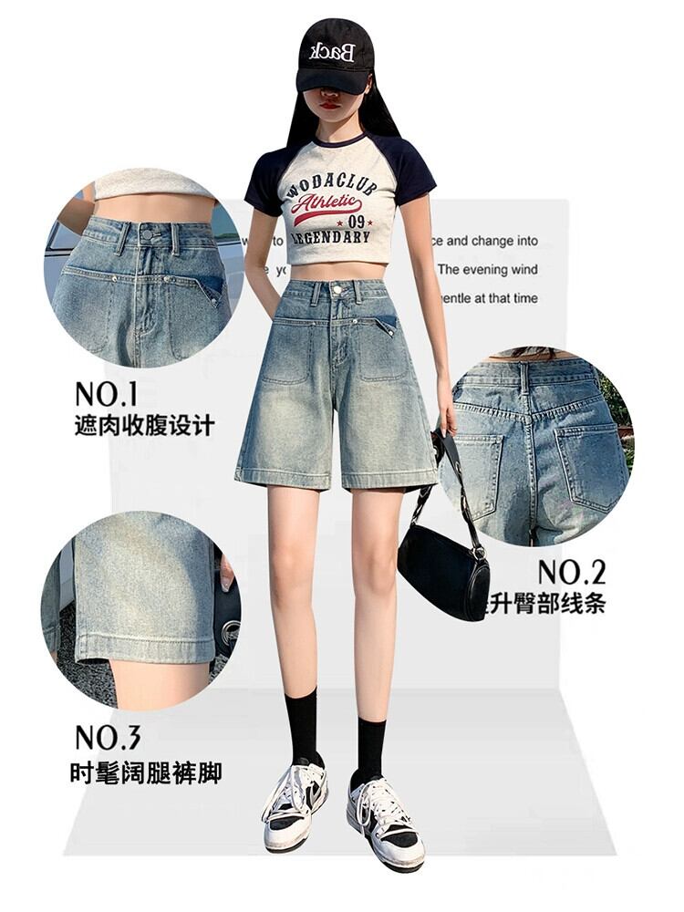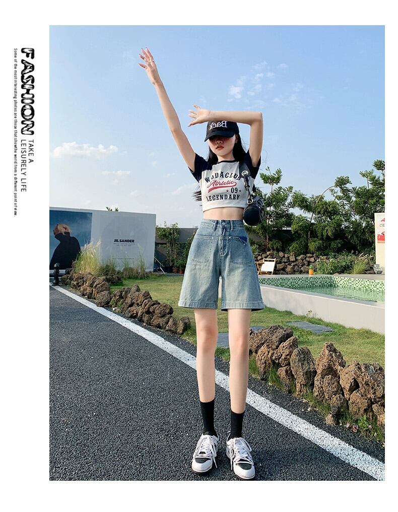 ブルーデニムショートパンツレディース2023年夏新作痩身アウタースモールトールウエストパンツワイドレッグAラインパンツ サマー 夏物 ショーツ ブルマー ワイドパンツ 7460098110871905 | framboise21