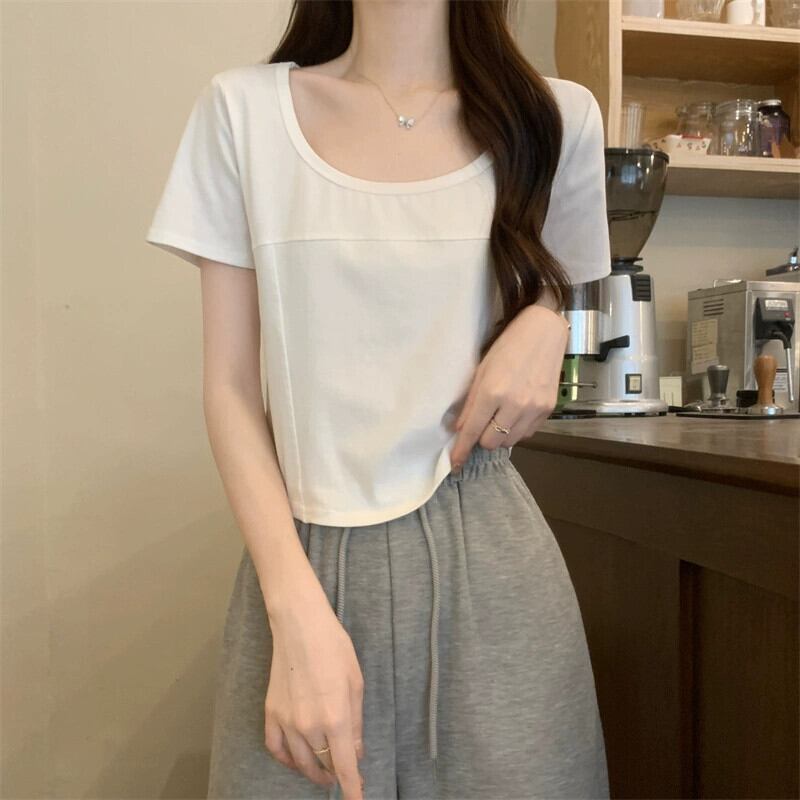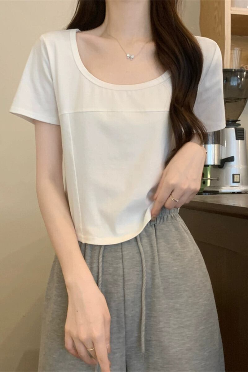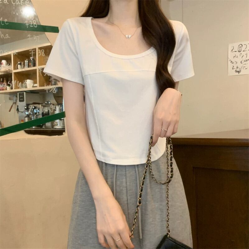 フィッシュボーン フロントショルダー 半袖 Tシャツ レディース 夏 デザイン ゆったり 薄手 ラウンドネック ショート トップス ホワイト サマー 夏物 Oネック 7460025514994791 | framboise21