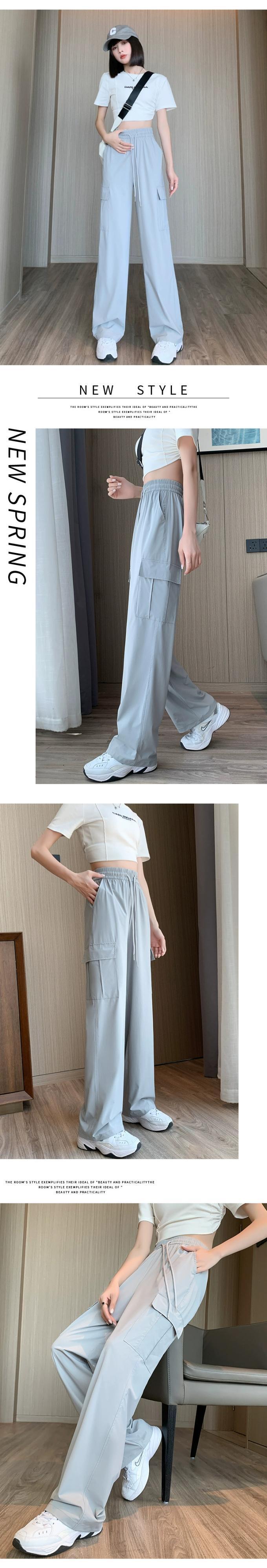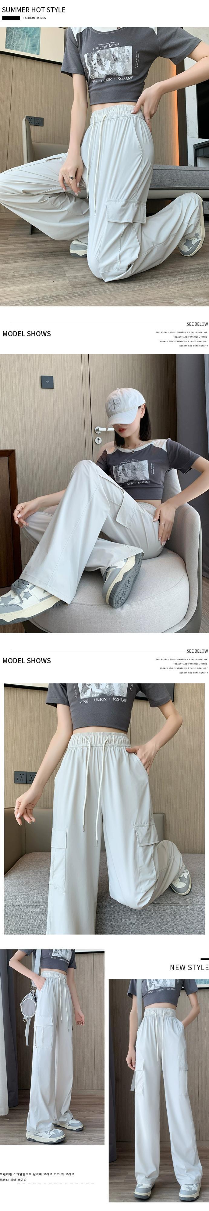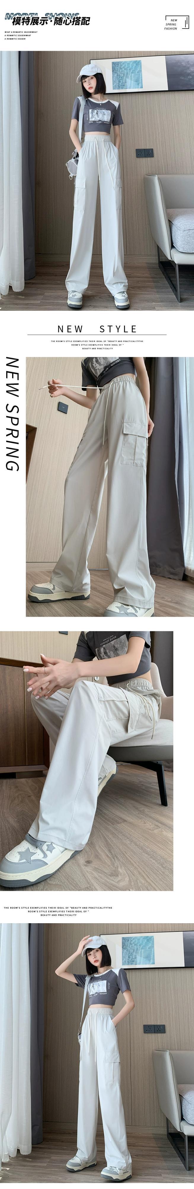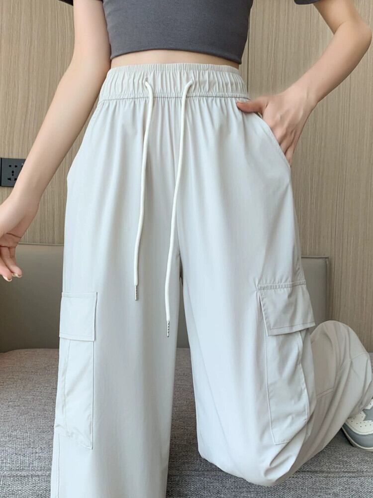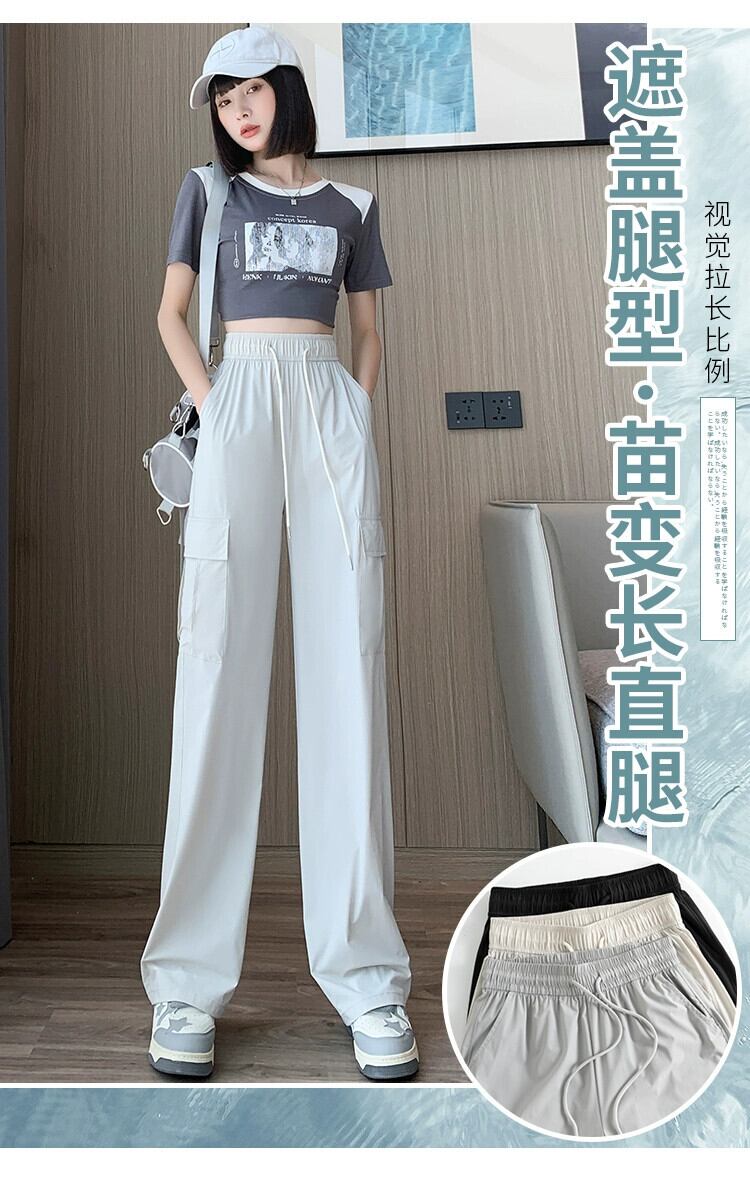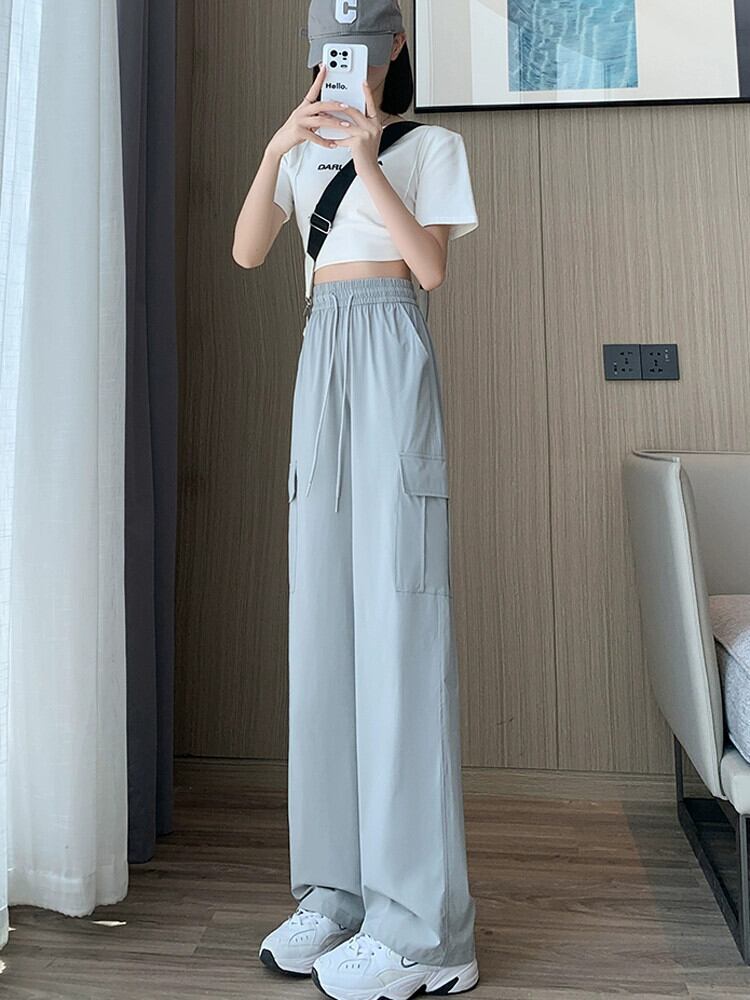 アメリカンレトロオーバーオールレディース夏小さい薄いセクション速乾性スポーツパンツカジュアルハイウエストドレープワイドレッグパンツ ハイウェスト サマー 夏物 7460056367602603 | framboise21