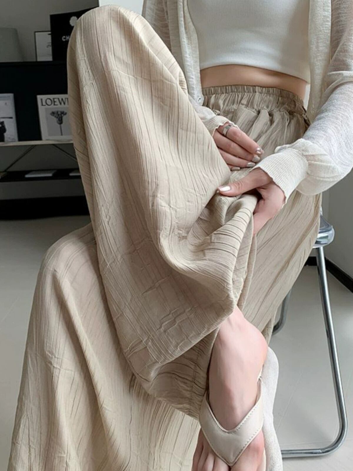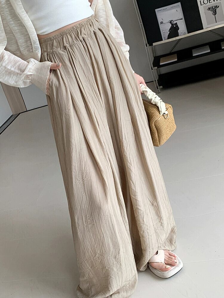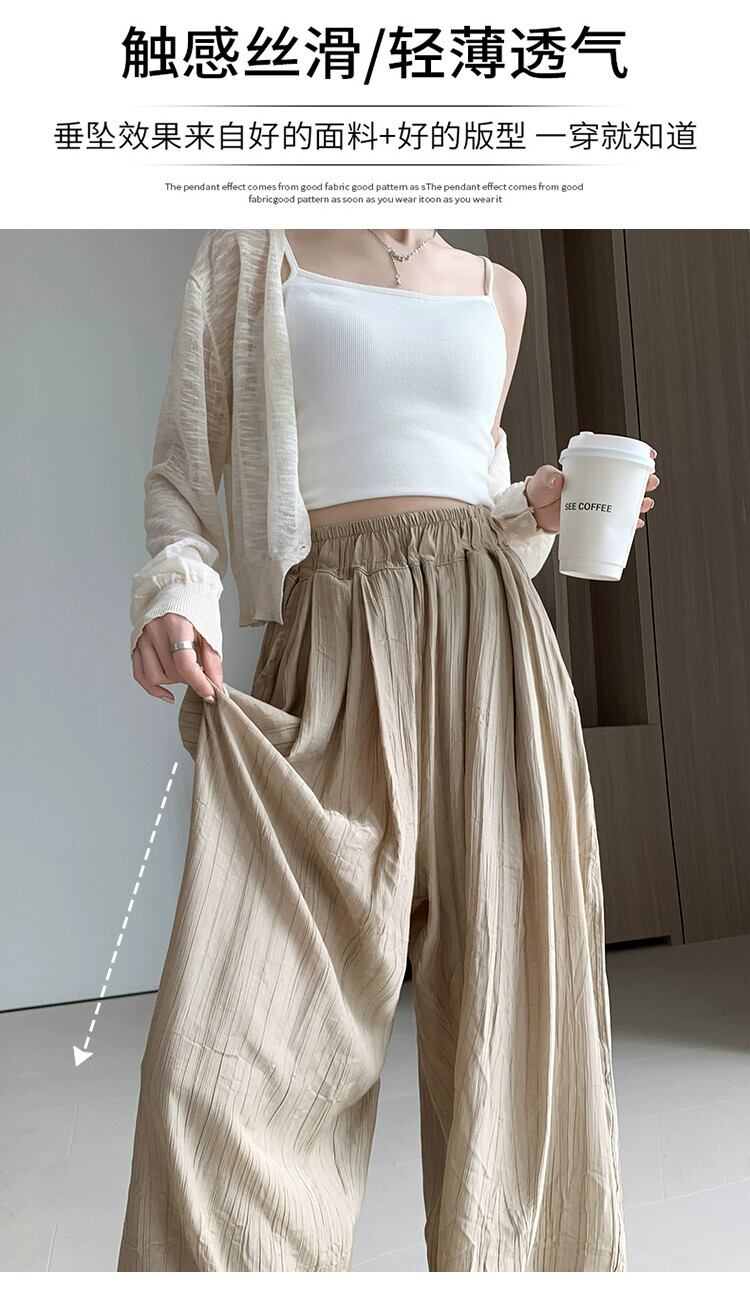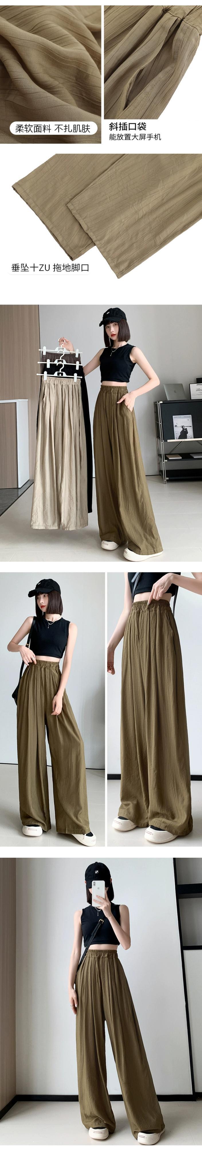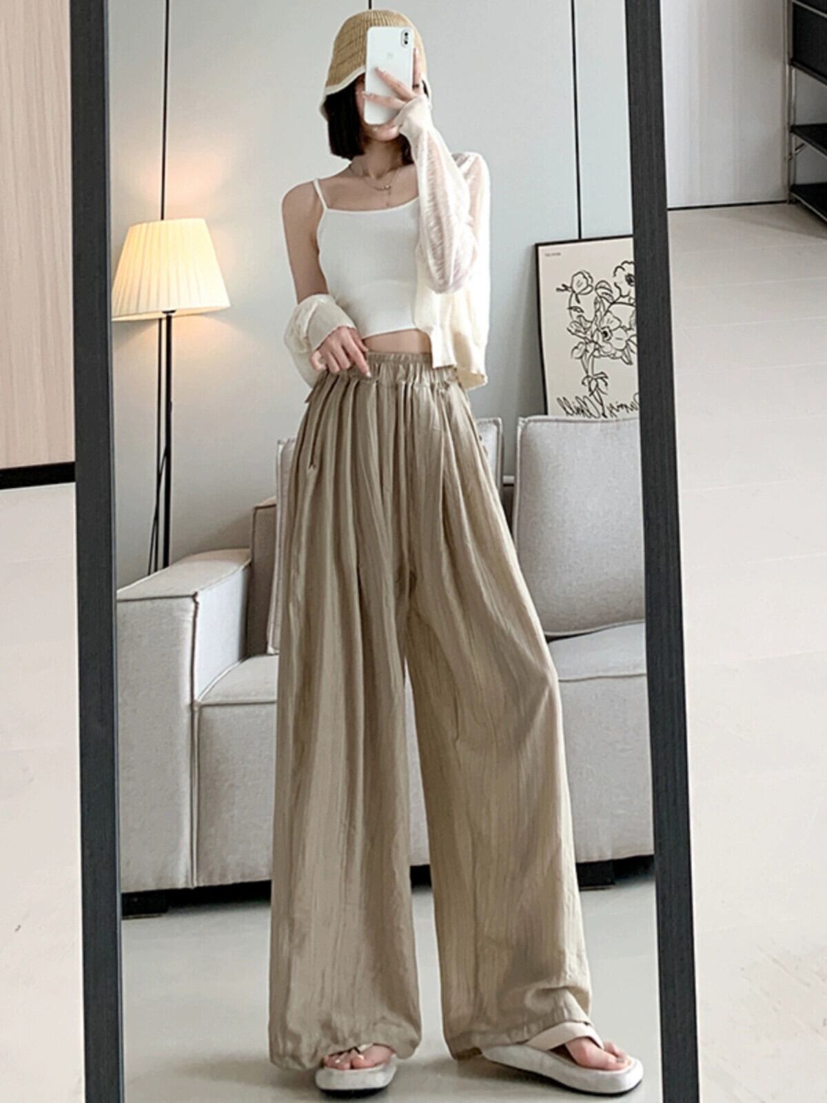 プリーツコットンとリネンパンツの女性の夏ルーズスリムハイウエストドレープリネンモップパンツカジュアル薄セクションアイスシルクワイドレッグパンツ ハイウェスト サマー 夏物 7460041726630742 | framboise21