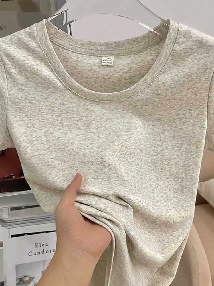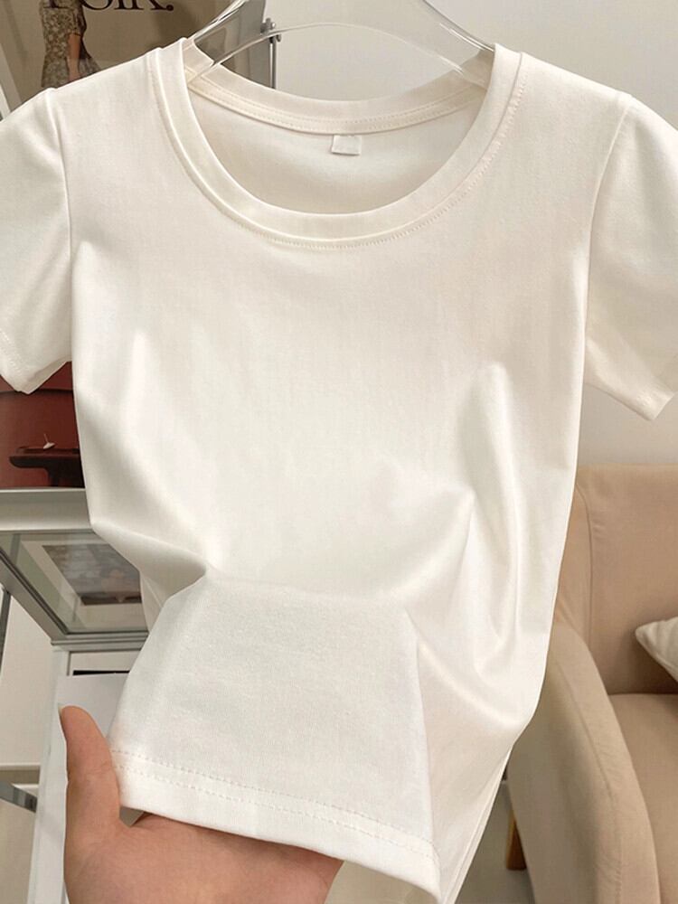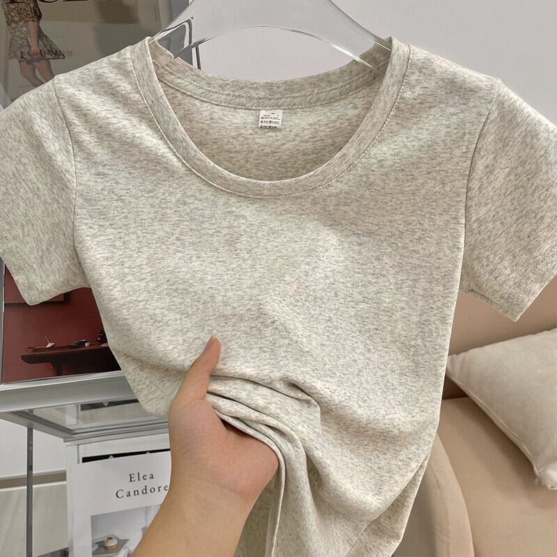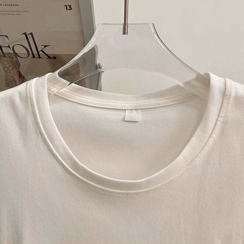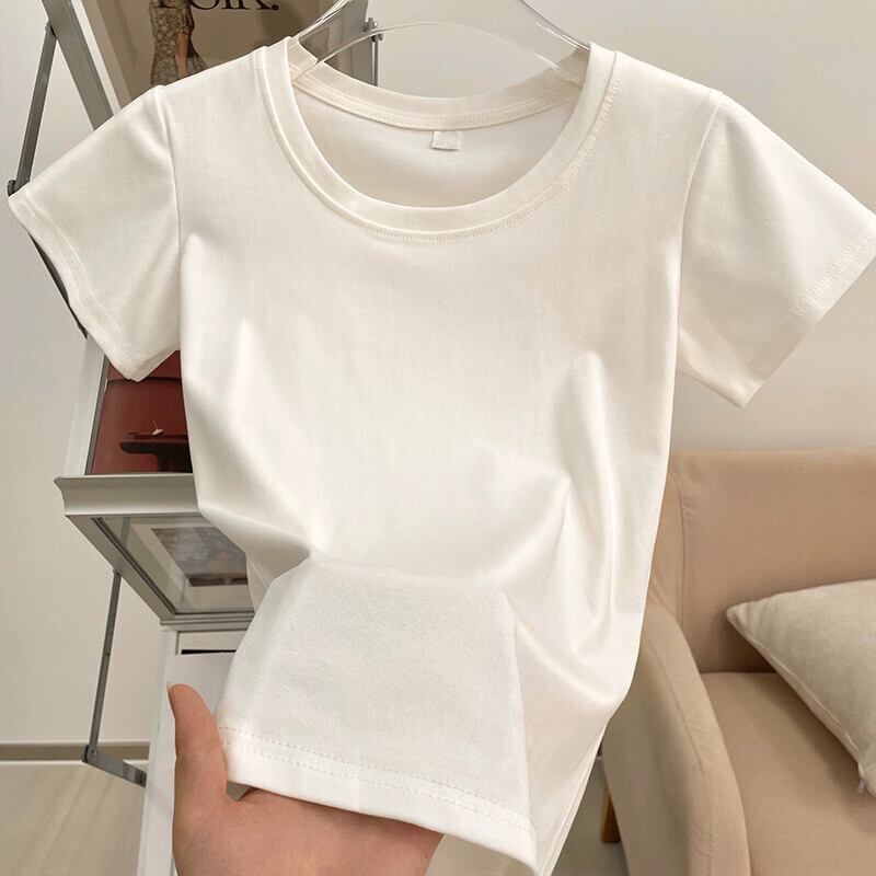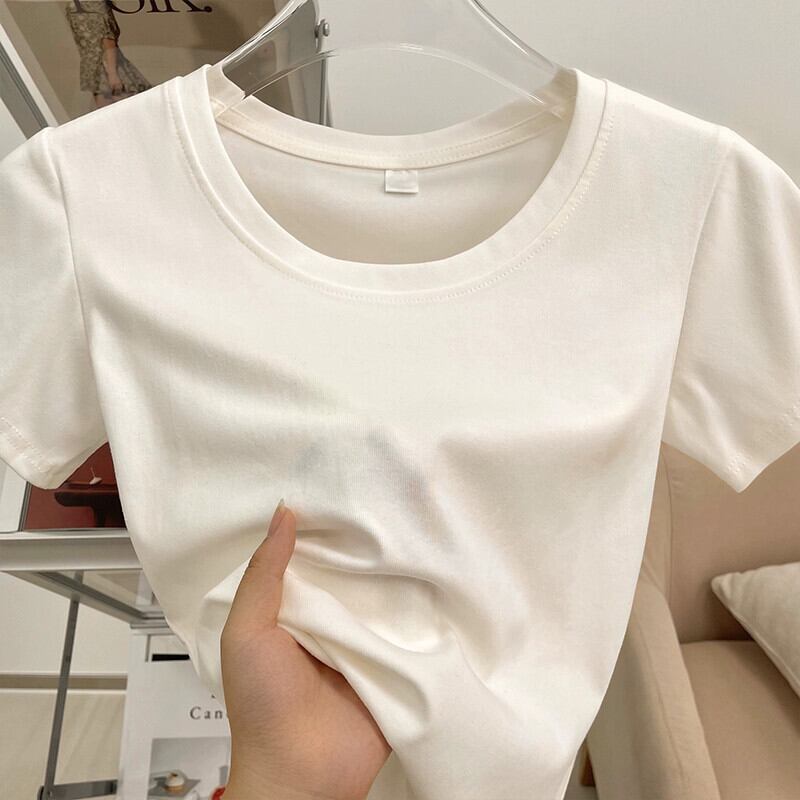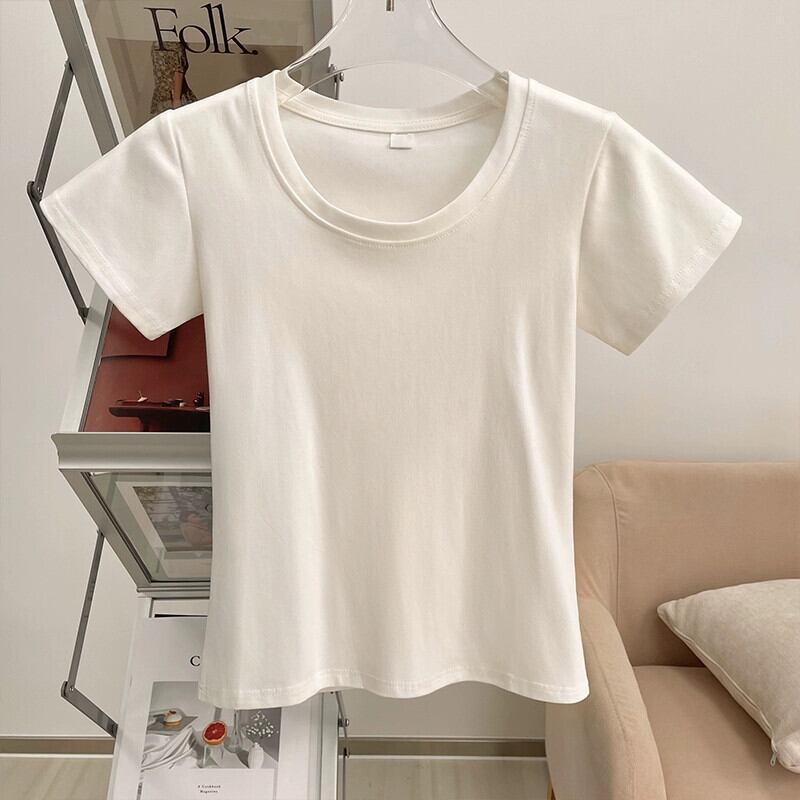 ラウンドネックショルダー半袖Tシャツレディース夏自己修養レトロニッチファッション小男オールマッチ薄いショートトップ サマー 夏物 Oネック 7460082092468802 | framboise21