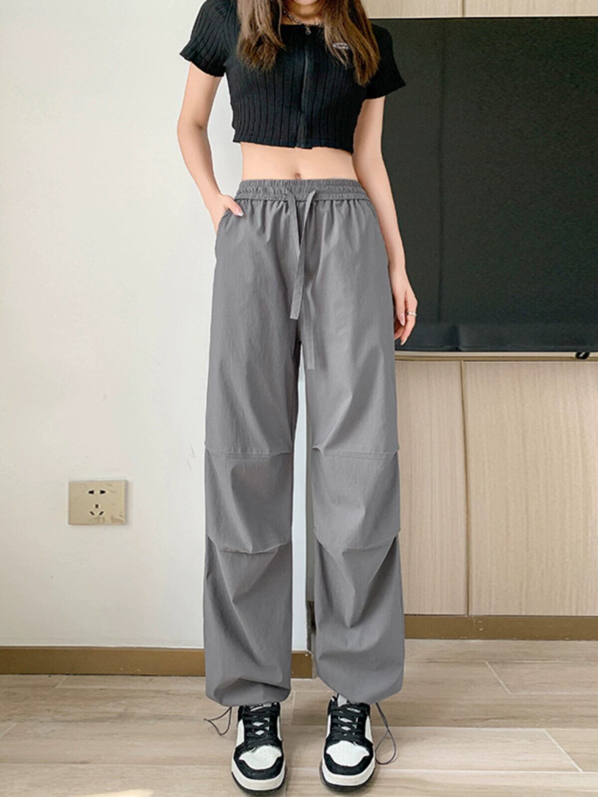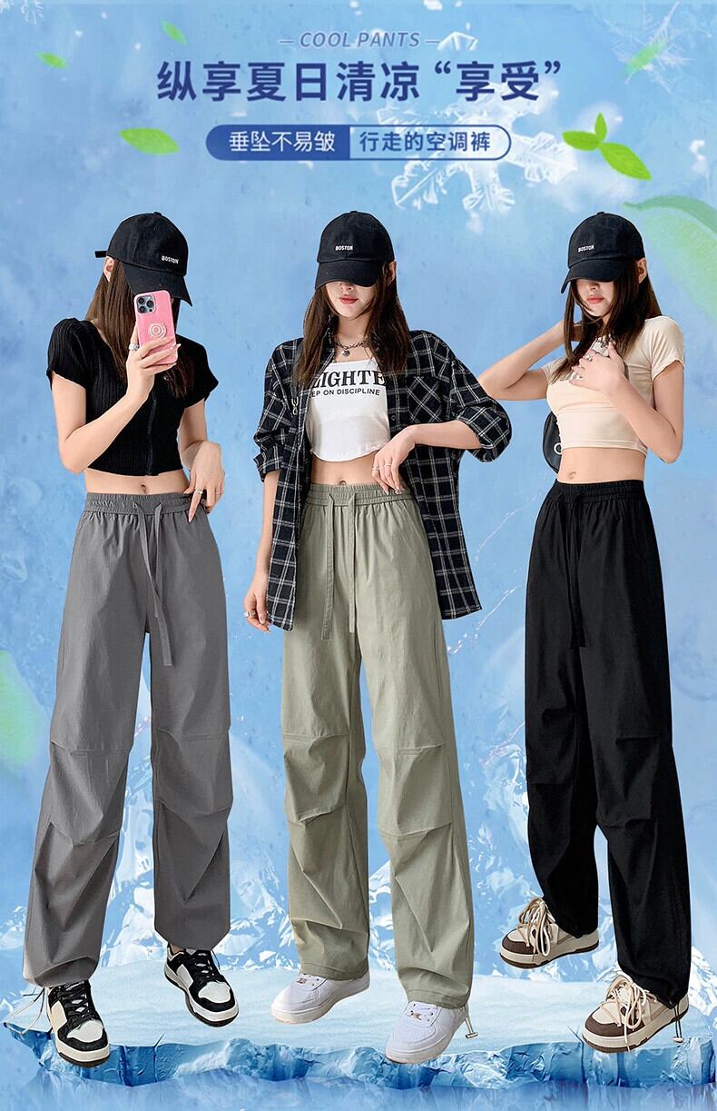 アメリカンアイスシルク速乾性オーバーオール女性の夏の薄いセクションハイウエストドレープワイドレッグパンツルーズカジュアルスポーツパンツ ハイウェスト サマー 夏物 7460076039128664 | framboise21