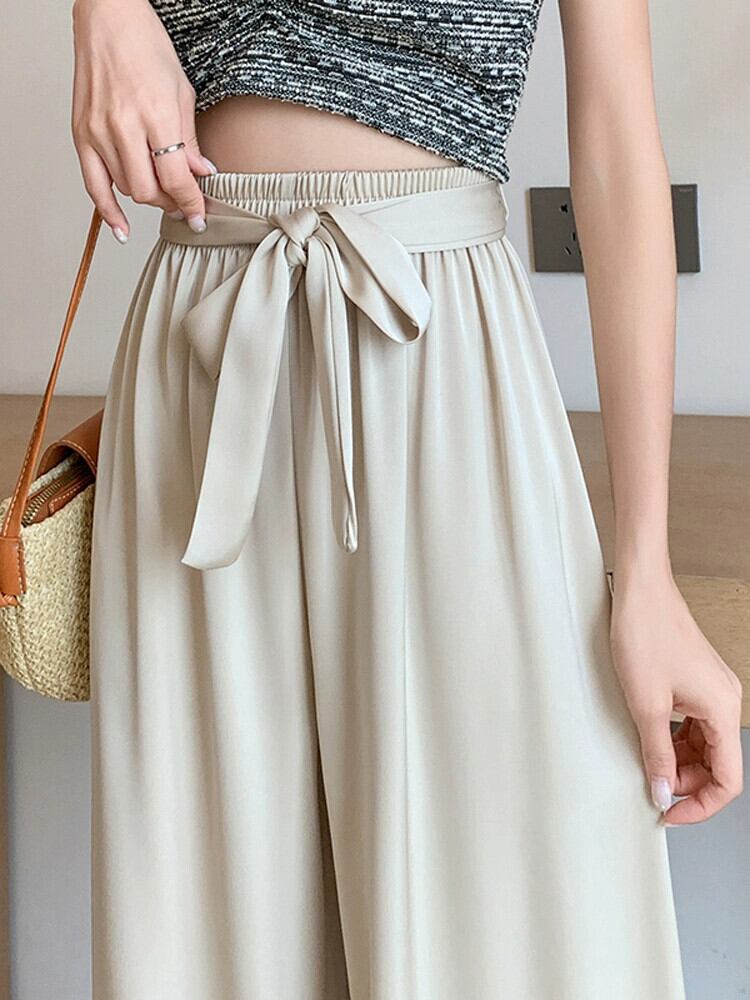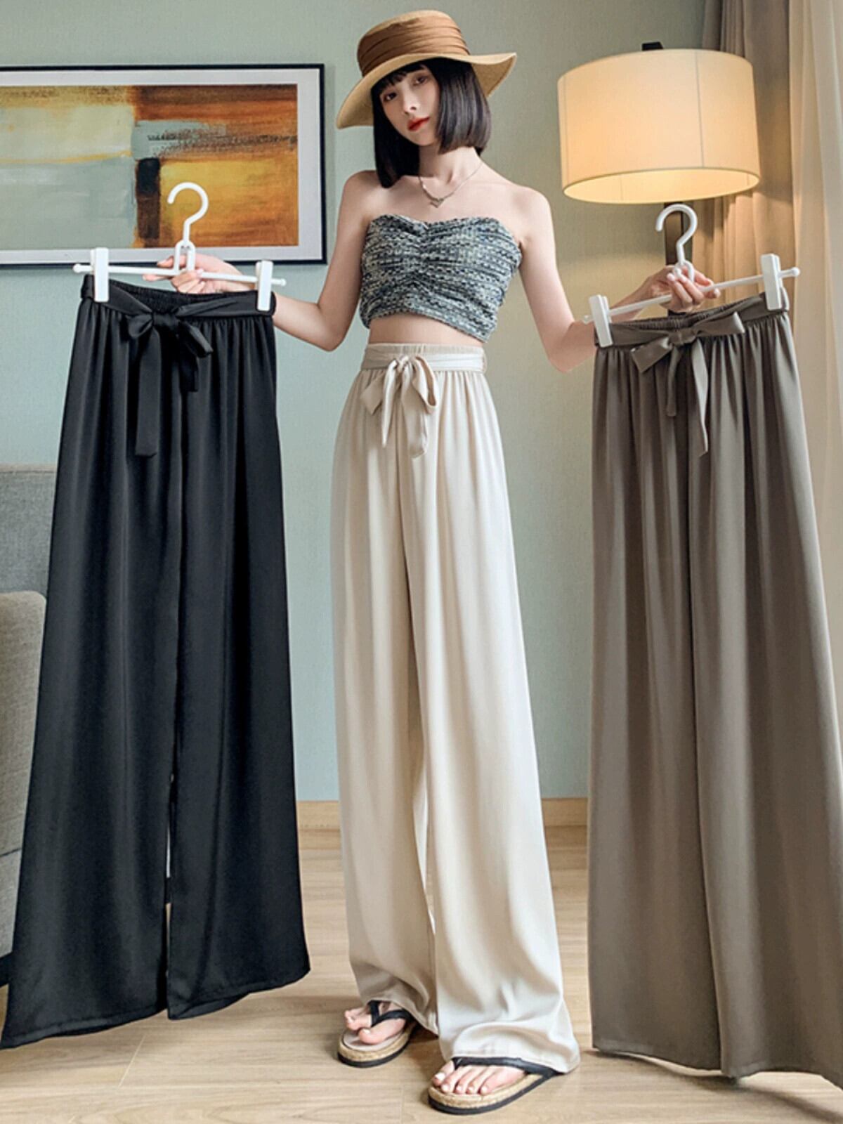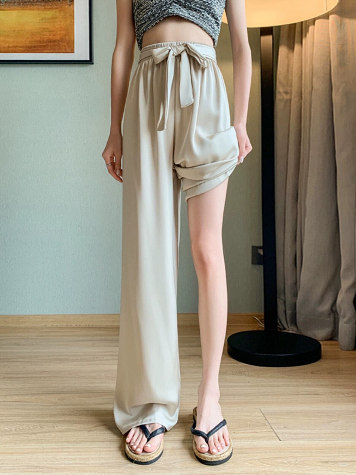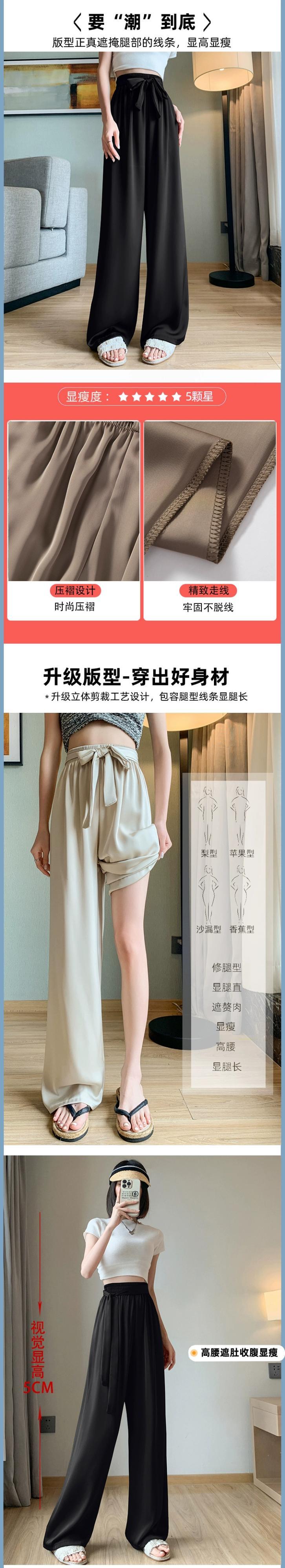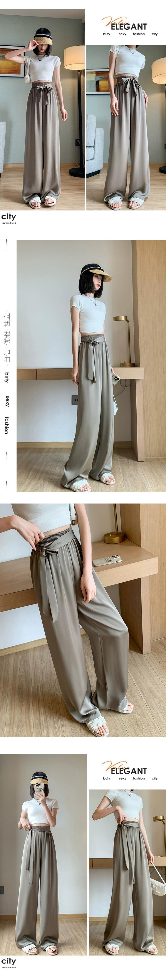 アイスシルクワイドレッグパンツ女性の夏の薄いセクションハイウエスト小さなドレープモップパンツカジュアル酸っぱい酢サテン日焼け止めパンツ サマー 夏物 7460030980369456 | framboise21