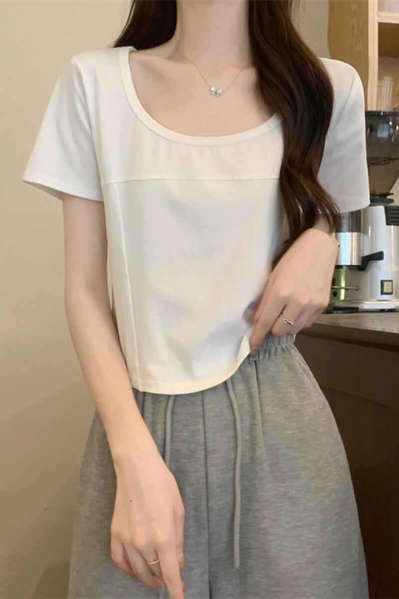 マイノリティ不規則半袖Tシャツレディース夏デザインセンス小男スリムショルダー純綿ラウンドネックトップ コットン サマー 夏物 Oネック ピュア 7460063894578595 | framboise21