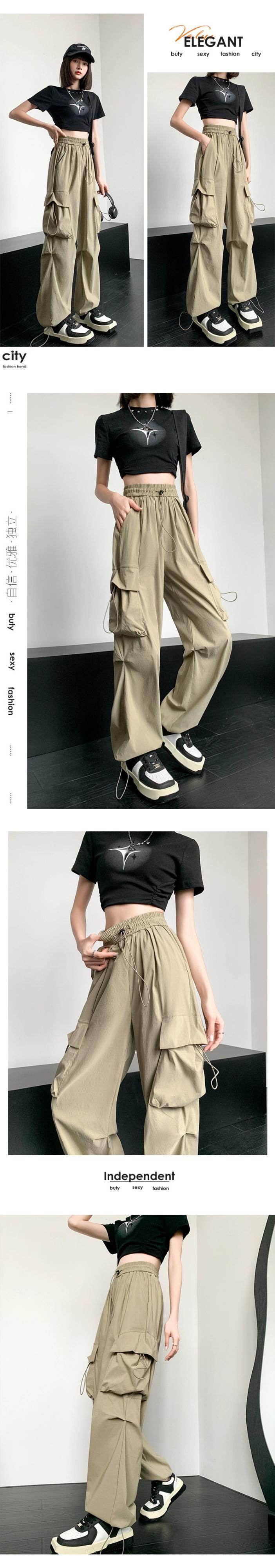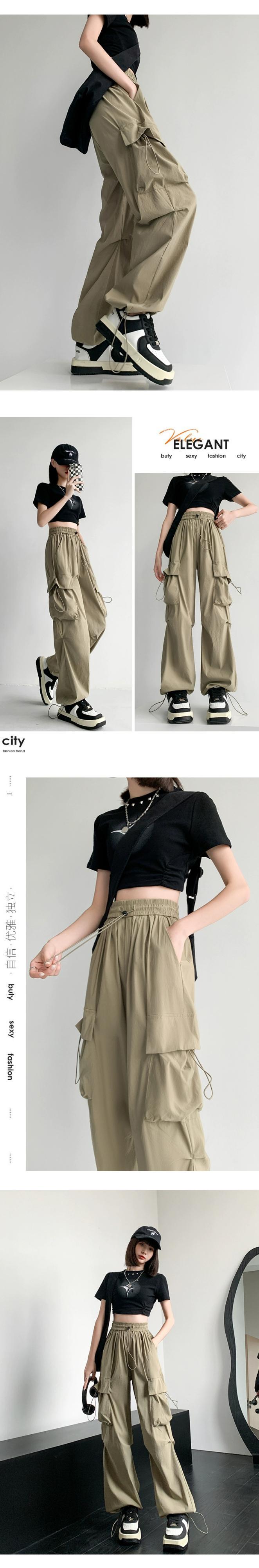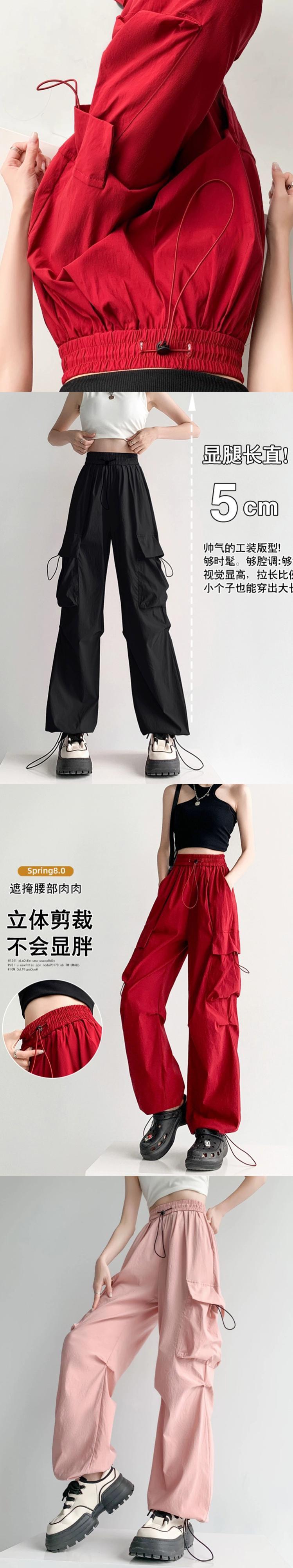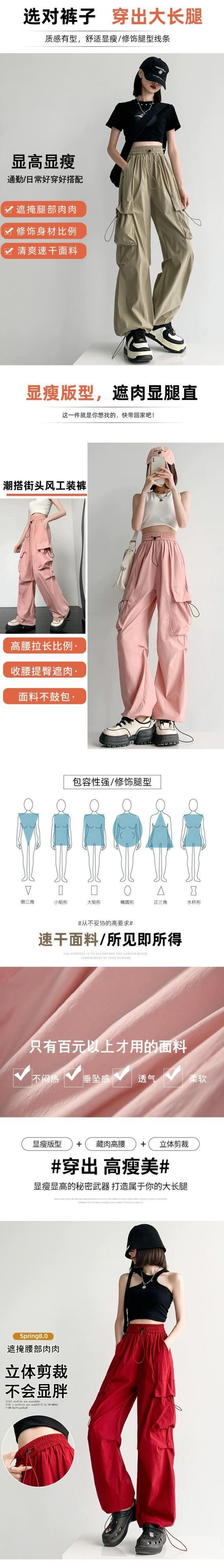 アメリカンストリート速乾オーバーオールレディース夏小さな巾着スポーツパンツハイウエストドレープカジュアルパンツ ハイウェスト サマー 夏物 7460050766372059 | framboise21