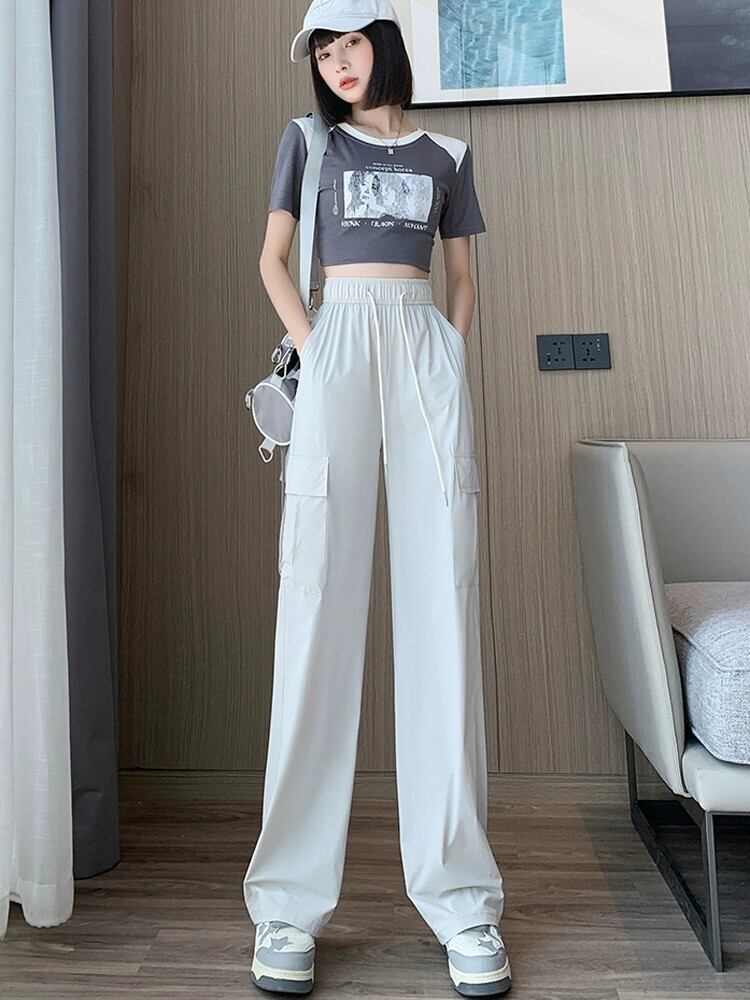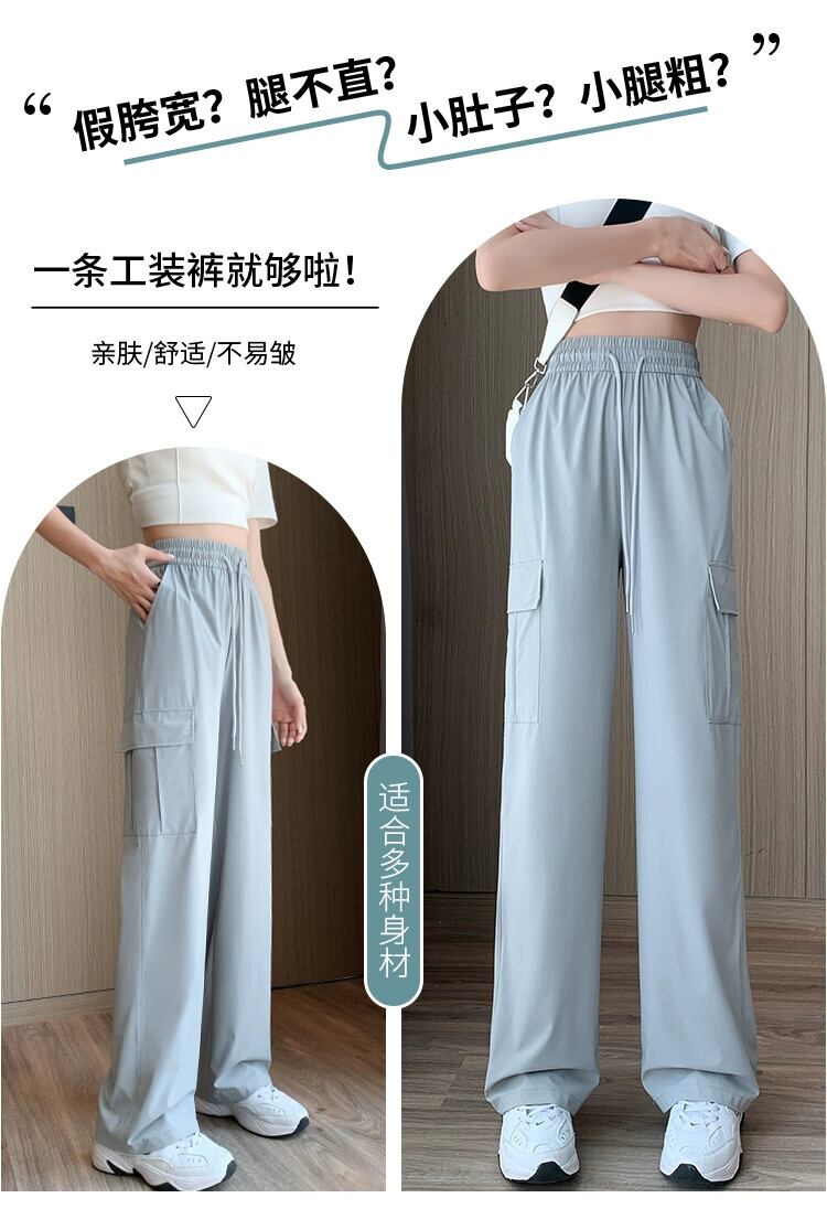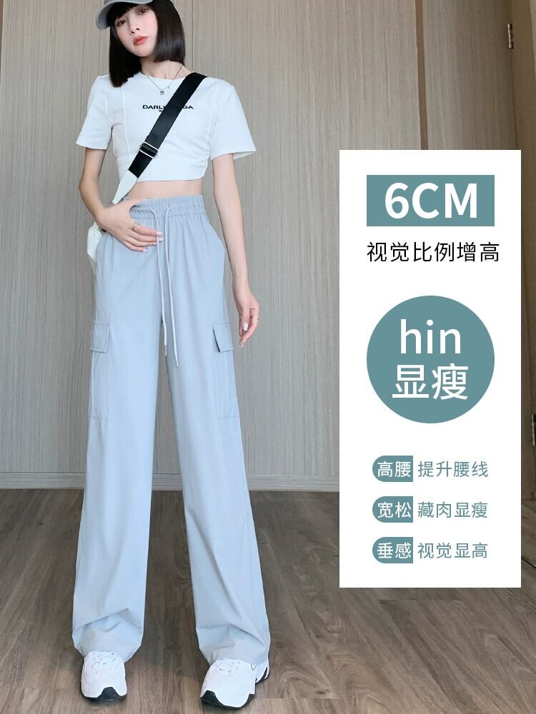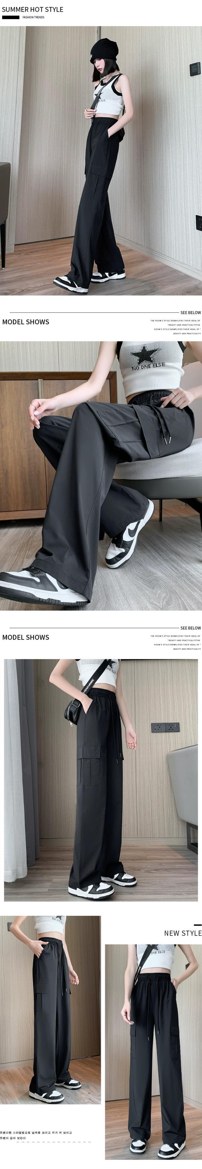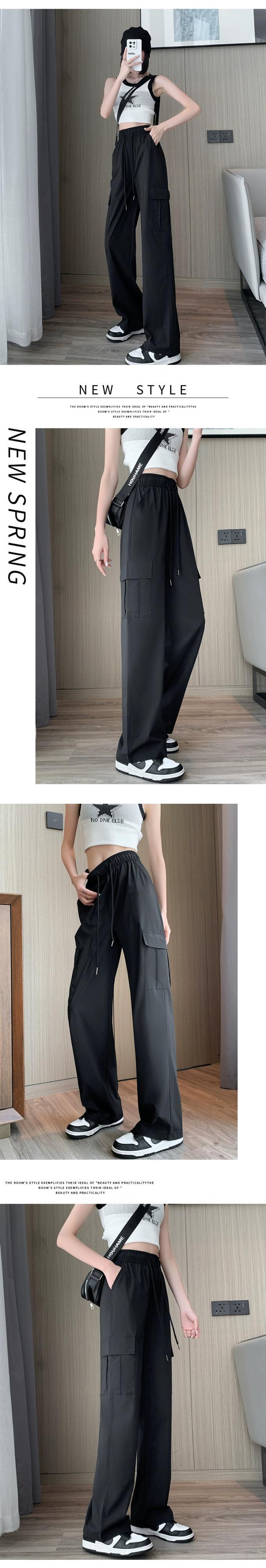 黒の速乾性オーバーオール女性の夏薄いランニングスポーツパンツ小さな背の高いウエストドレープカジュアルワイドレッグパンツ ブラック サマー 夏物 7460073221841014 | framboise21
