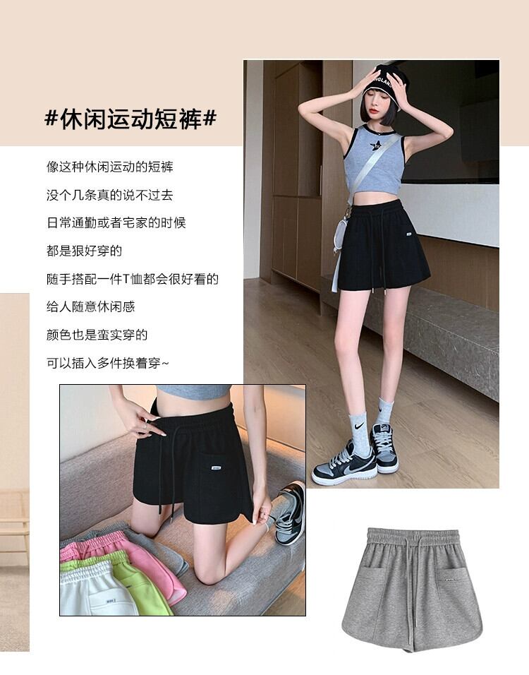 ランニングスポーツショーツ女性 2023 新しい夏のアウタールーズで薄いオールマッチカジュアル弾性ハイウエストパンツグレー ハイウェスト エラスティック 伸縮 サマー 夏物 ブルマー 7460016883729468 | framboise21