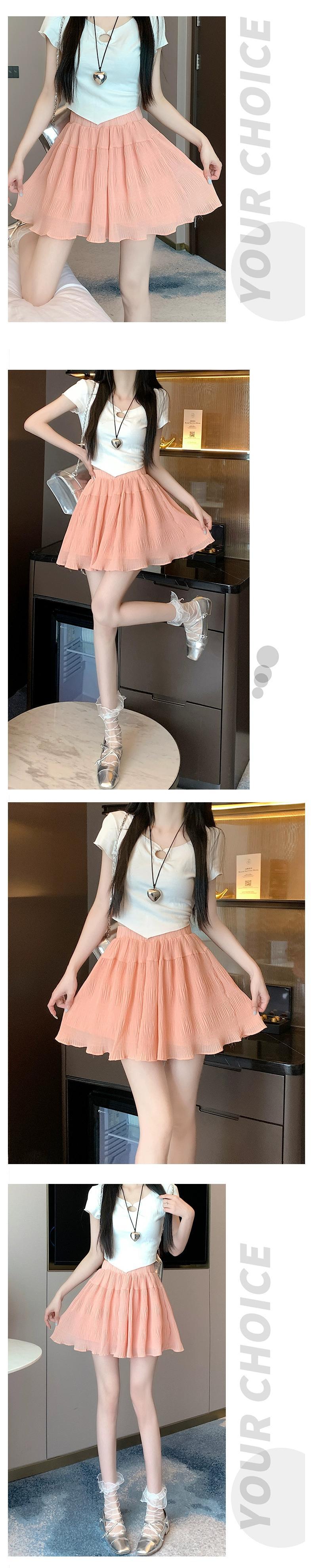 ピンクシフォン A ラインスカート夏の女性の 2023 新しいファッション痩身多用途メッシュハイウエストプリーツスカート ハイウェスト サマー 夏物 Aライン 7460093565817988 | framboise21