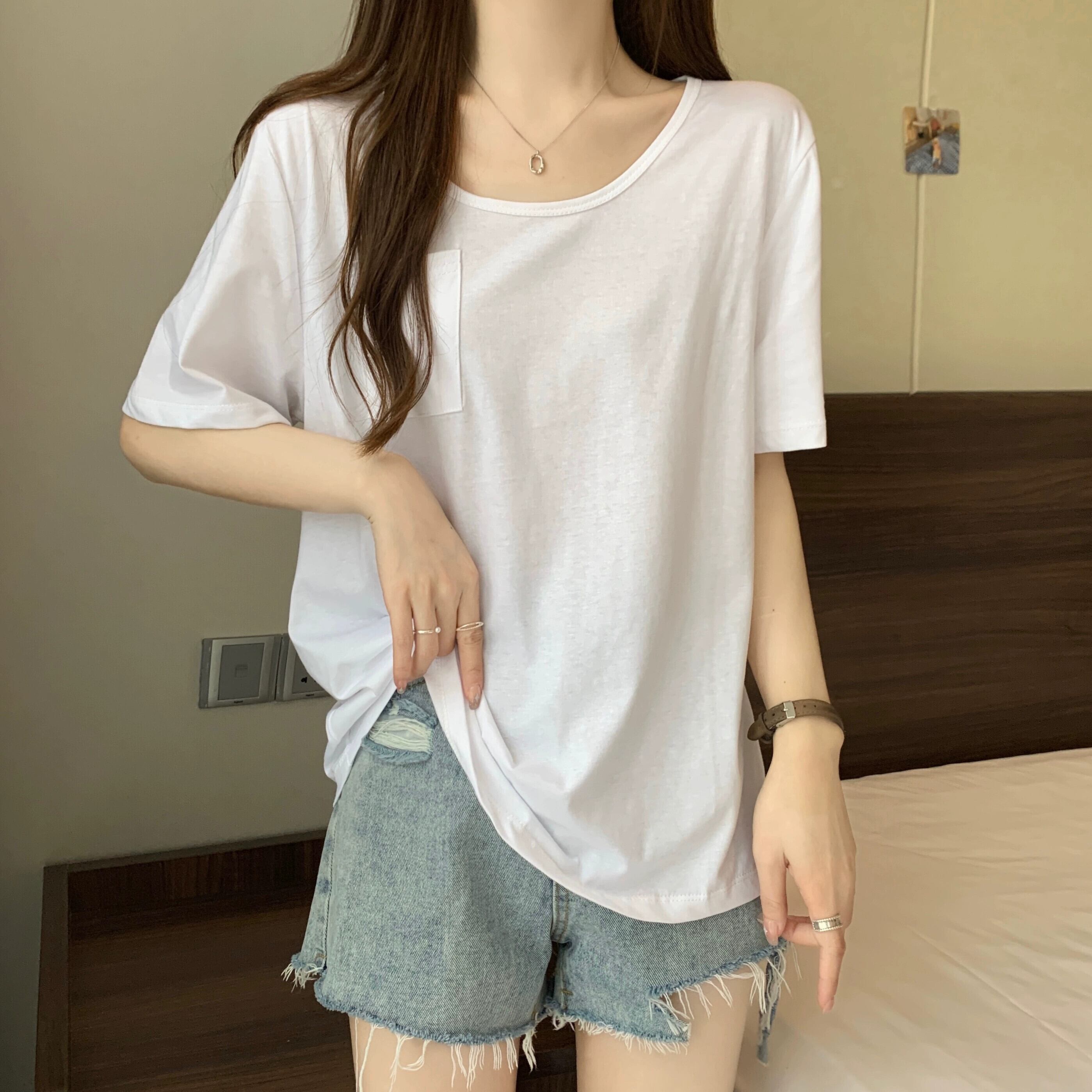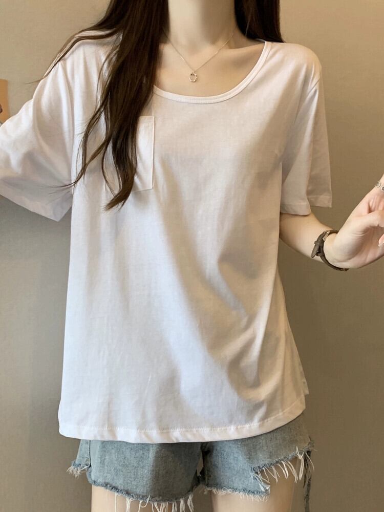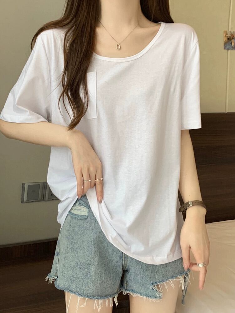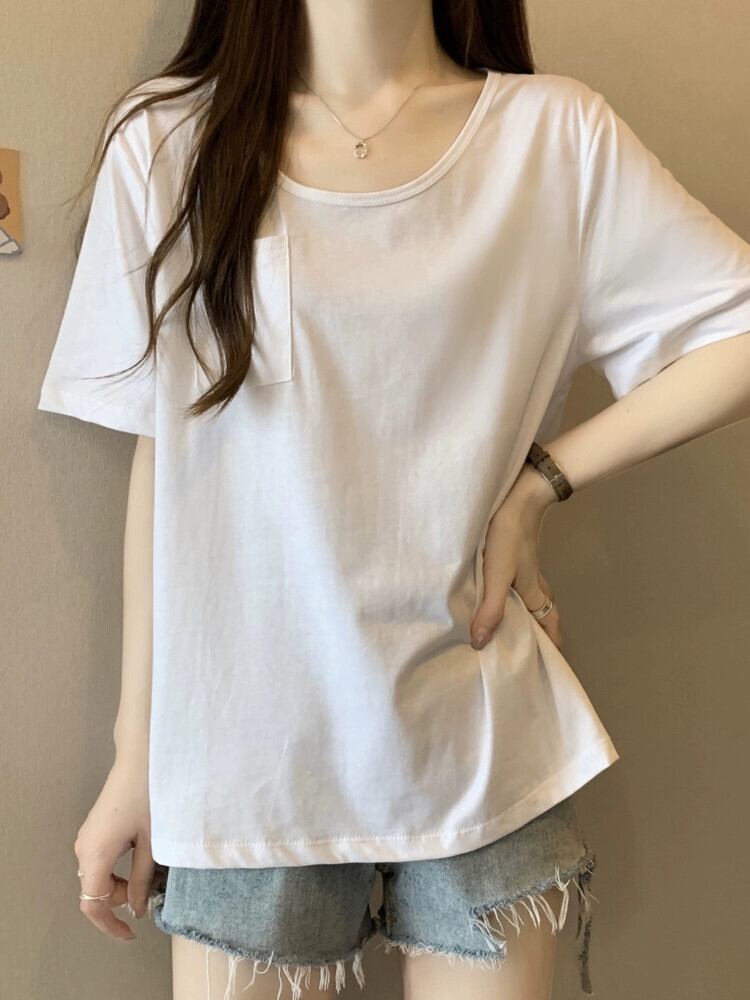 バージョンのルーズ半袖 Tシャツ女性の 2023 夏の新しいファッションデザインセンスカジュアルオールマッチ半袖ラウンドネックトップ サマー 夏物 Oネック 7460082910289565 | framboise21
