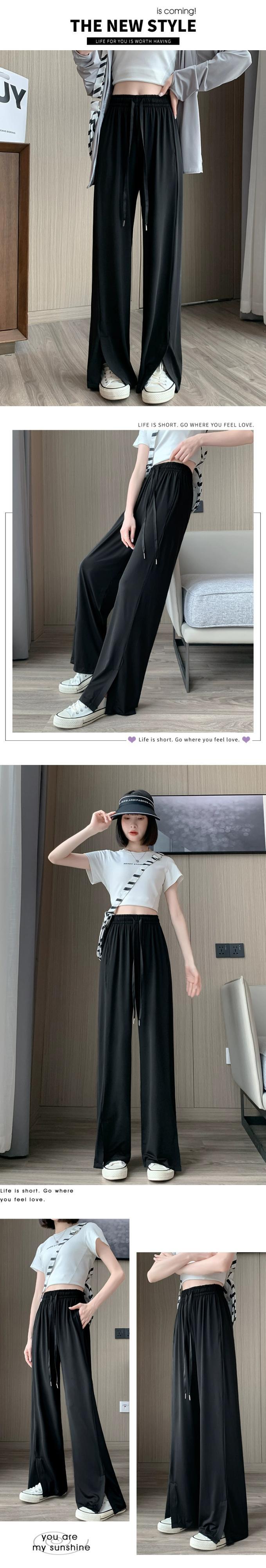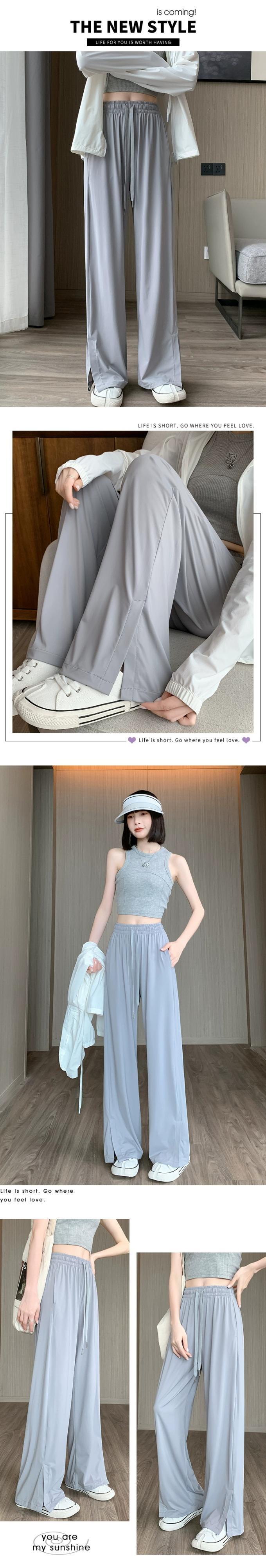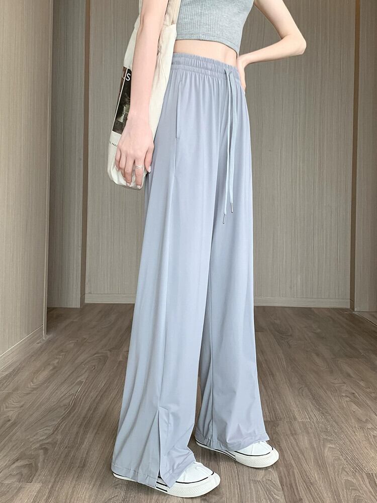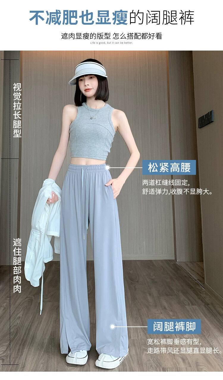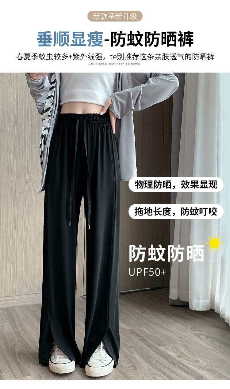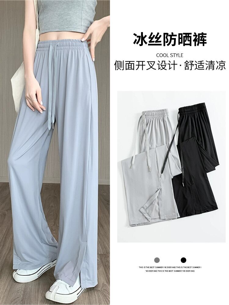 ランニング速乾パンツレディース2023夏新作アイスシルク日焼け止めパンツルーズスリムスリットストレートカジュアルワイドレッグパンツ サマー 夏物 7460032109821361 | framboise21