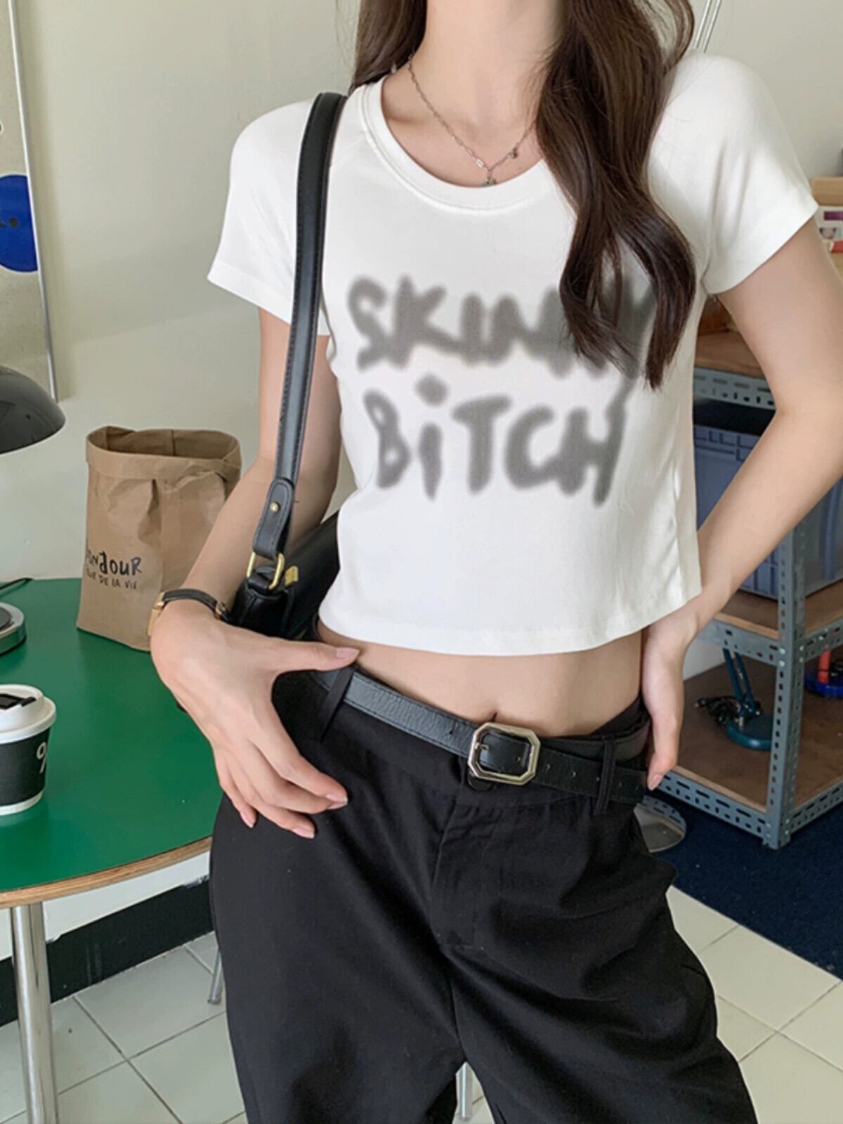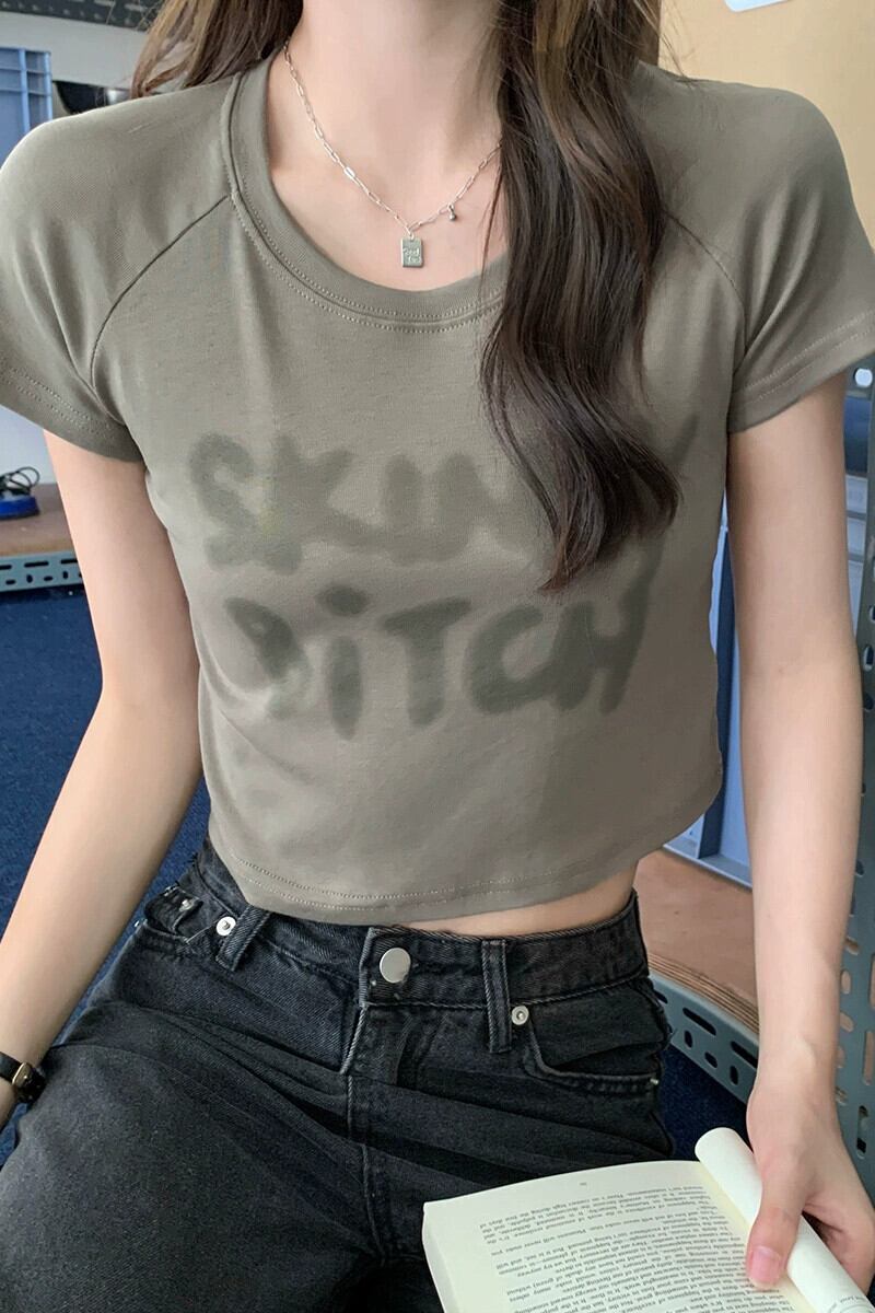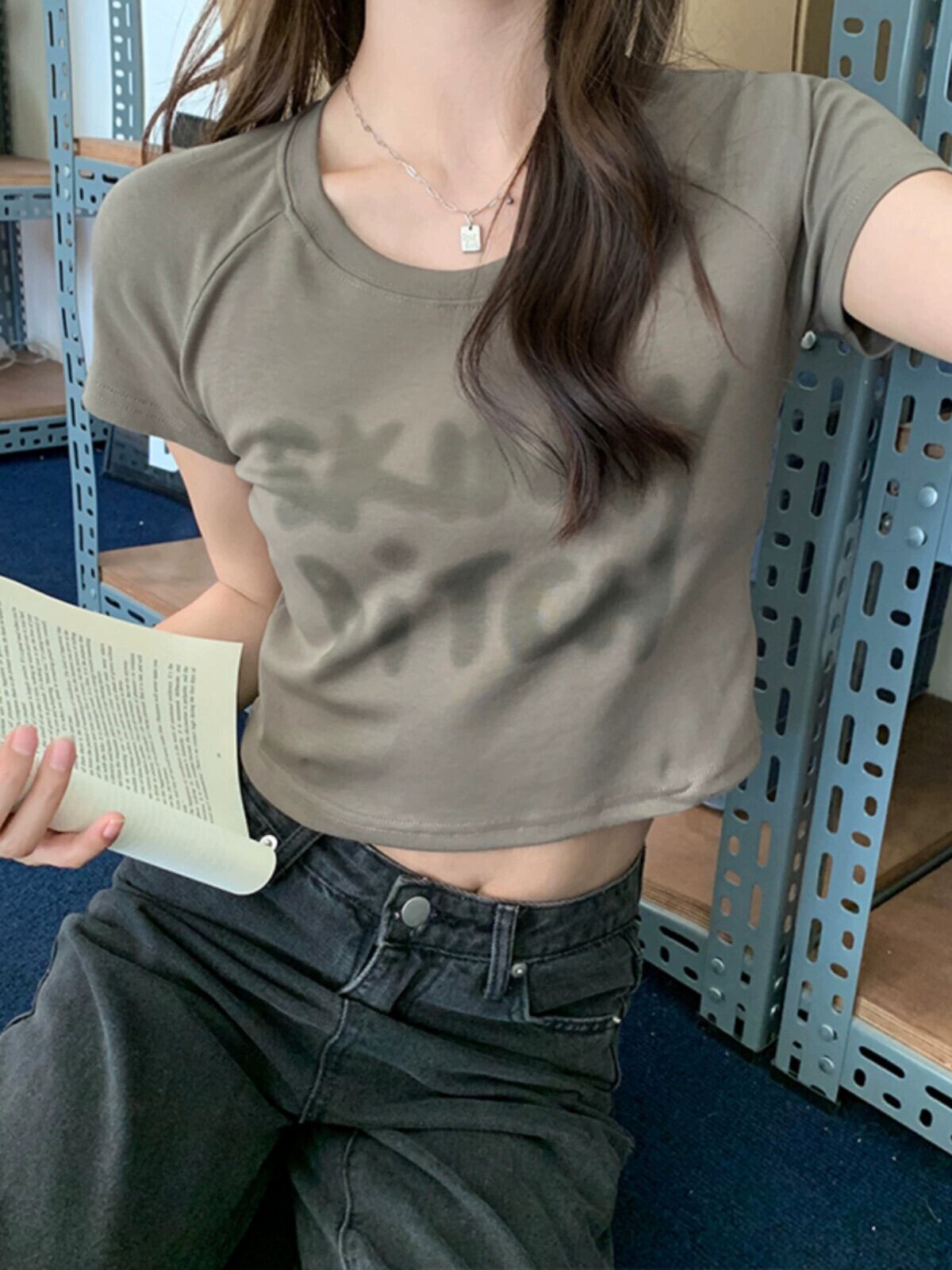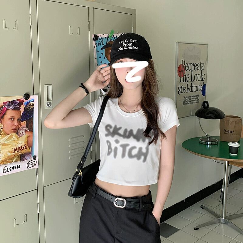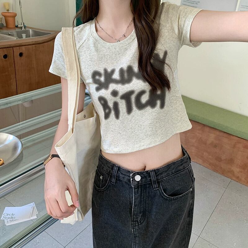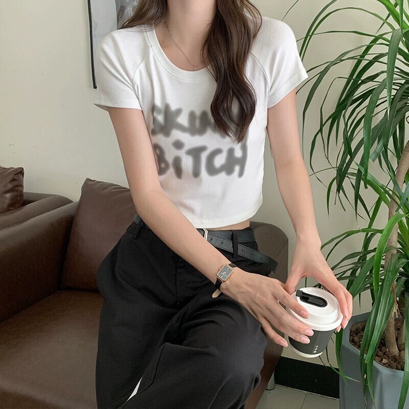 ピュアコットンラグランショルダー半袖Tシャツレディース2023年夏新作アメリカンデザインセンスハイウエストショートクロップトップ ハイウェスト サマー 夏物 7460019407303640 | framboise21