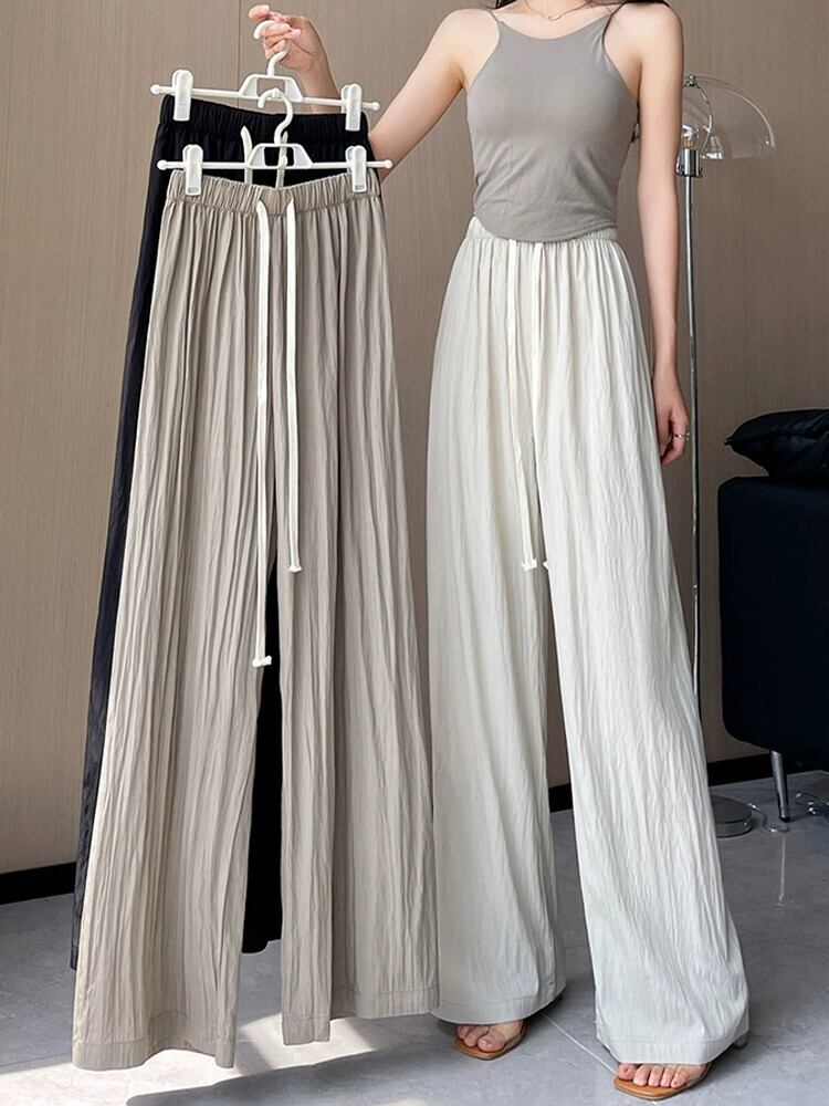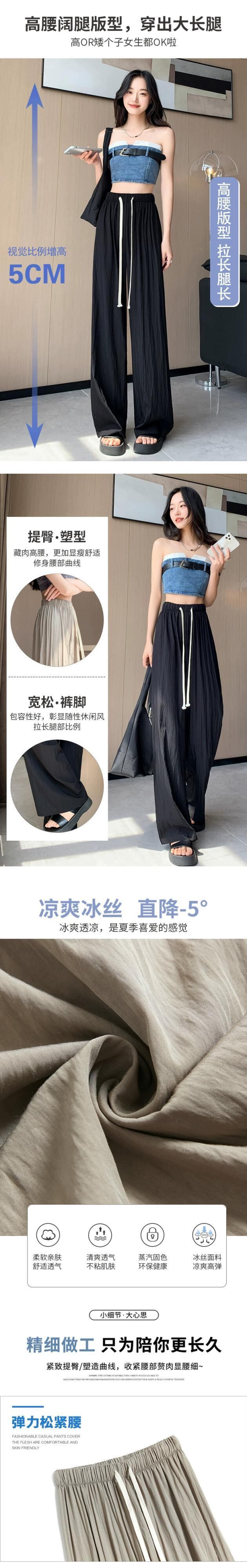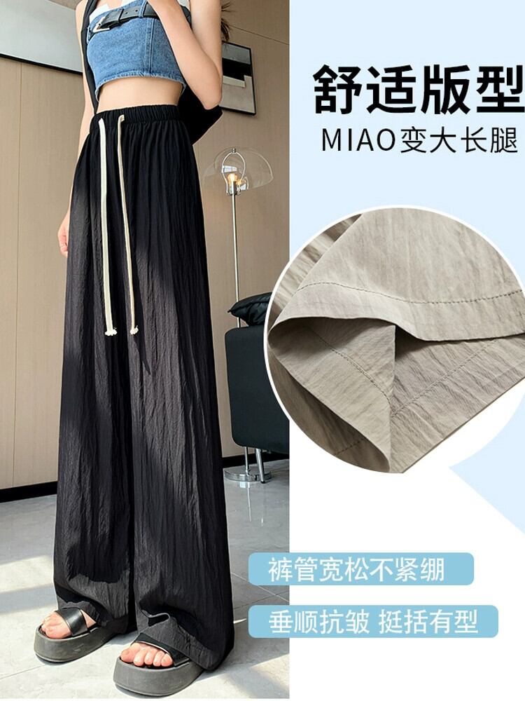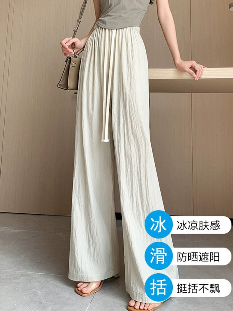 アイスシルクナローバージョンワイドレッグパンツレディース夏薄いセクションテクスチャ日焼け止めパンツハイウエストドレープストレートカジュアル山本パンツ ハイウェスト サマー 夏物 7460014628177252 | framboise21