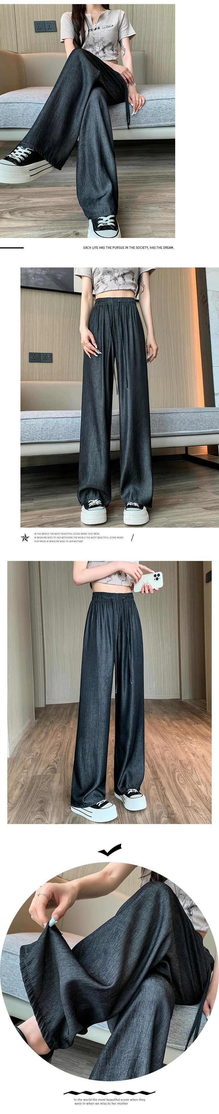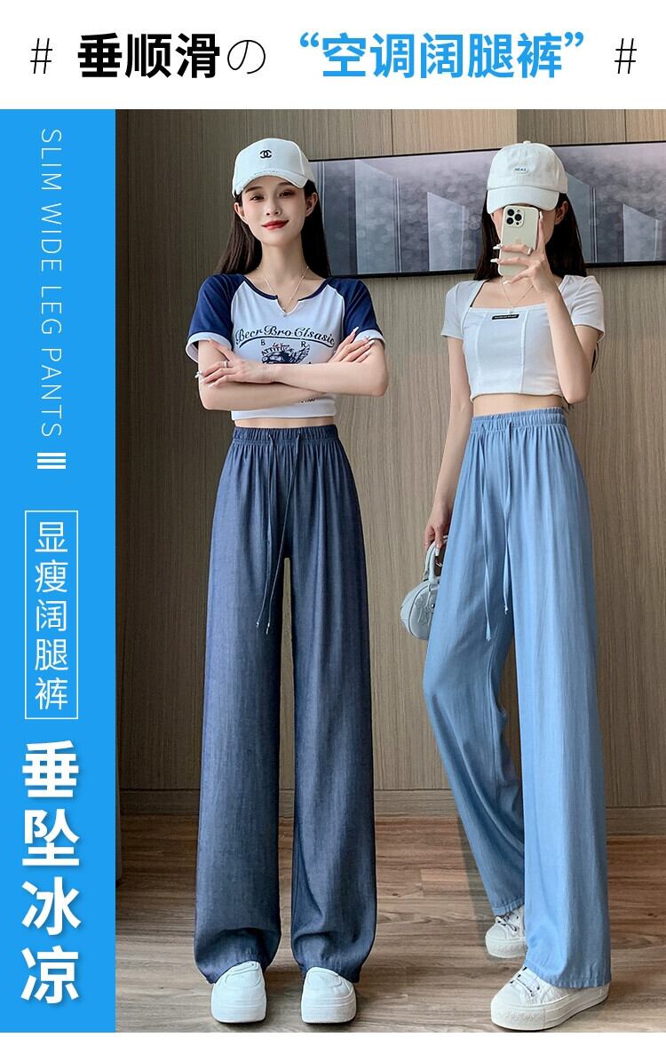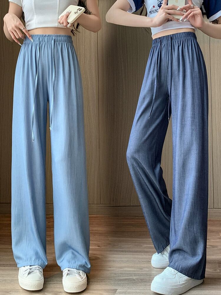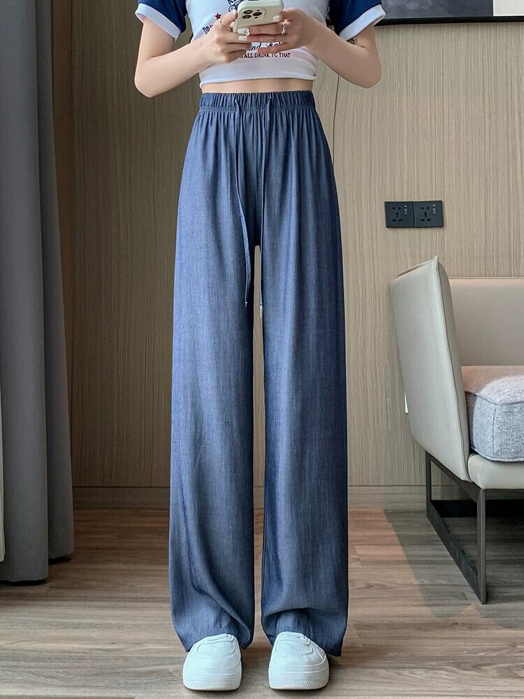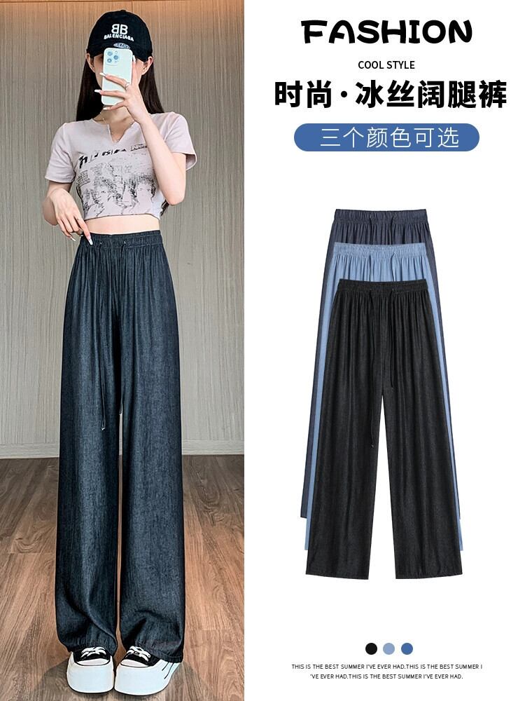 テンセル ジーンズ レディース 夏 薄氷シルク ワイドレッグ パンツ ハイウエスト スリム ストレート チューブ 小さい クール パンツ ハイウェスト サマー 夏物 7460046690063675 | framboise21