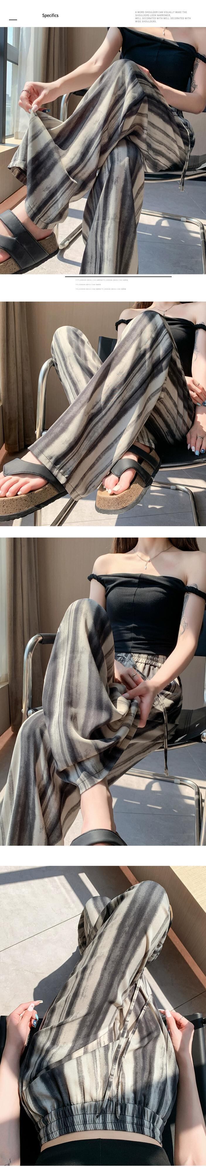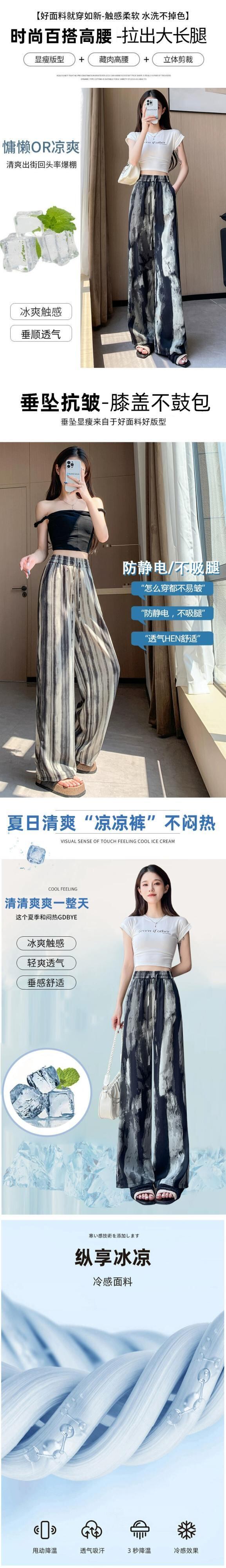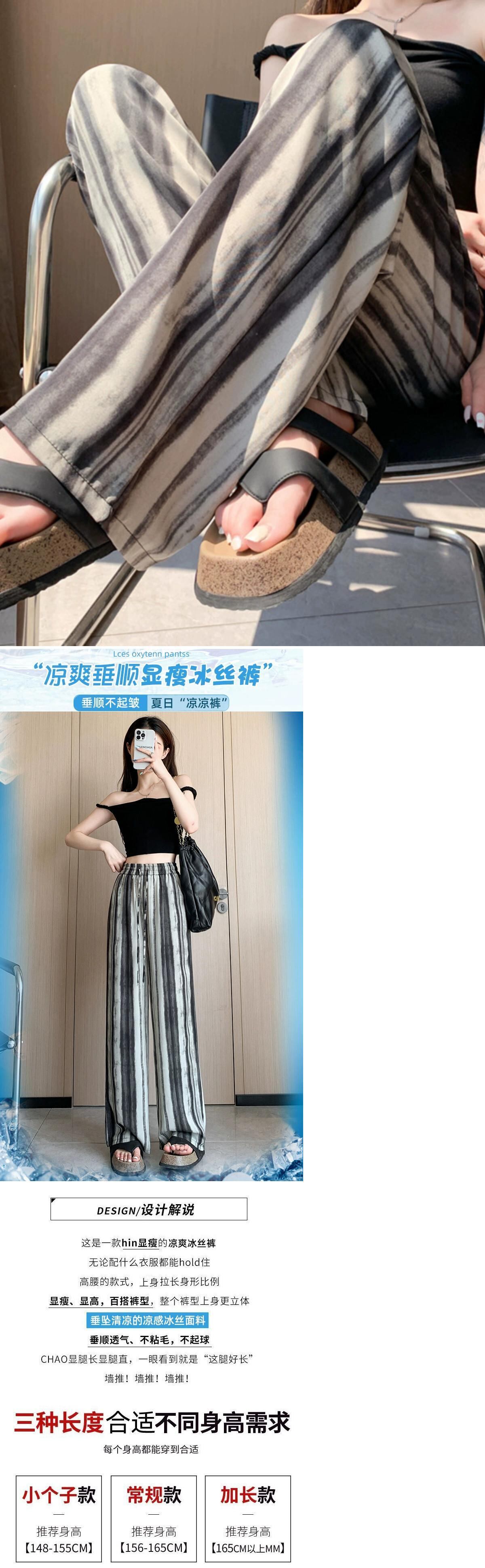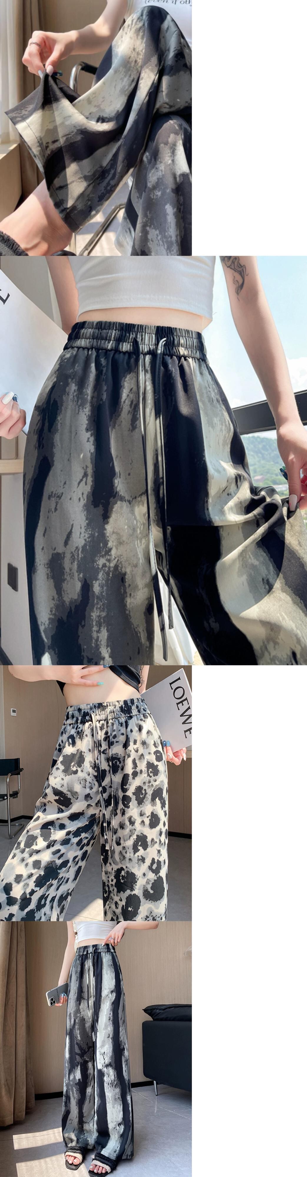 水墨画アイスシルクワイドレッグパンツ女性の夏薄部ハイウエストクールモップパンツルーズカジュアルドレープ日焼け止めパンツ ハイウェスト サマー 夏物 7460037165462696 | framboise21