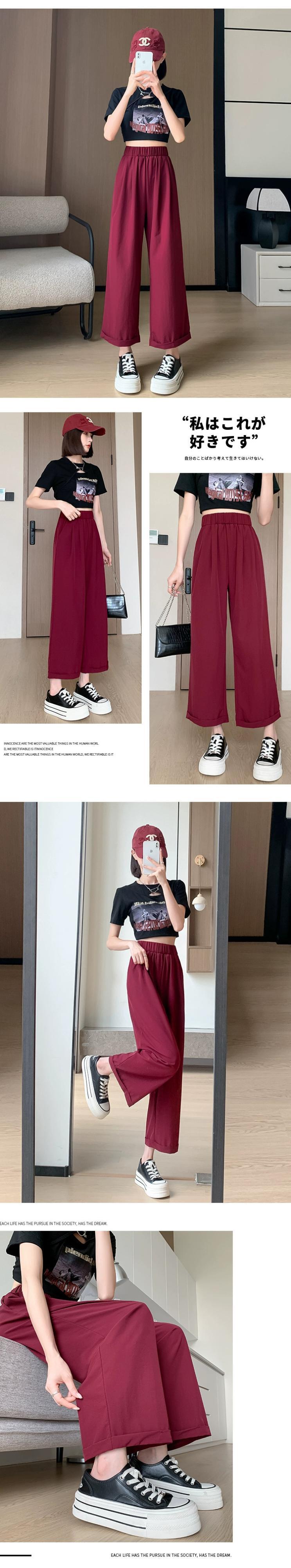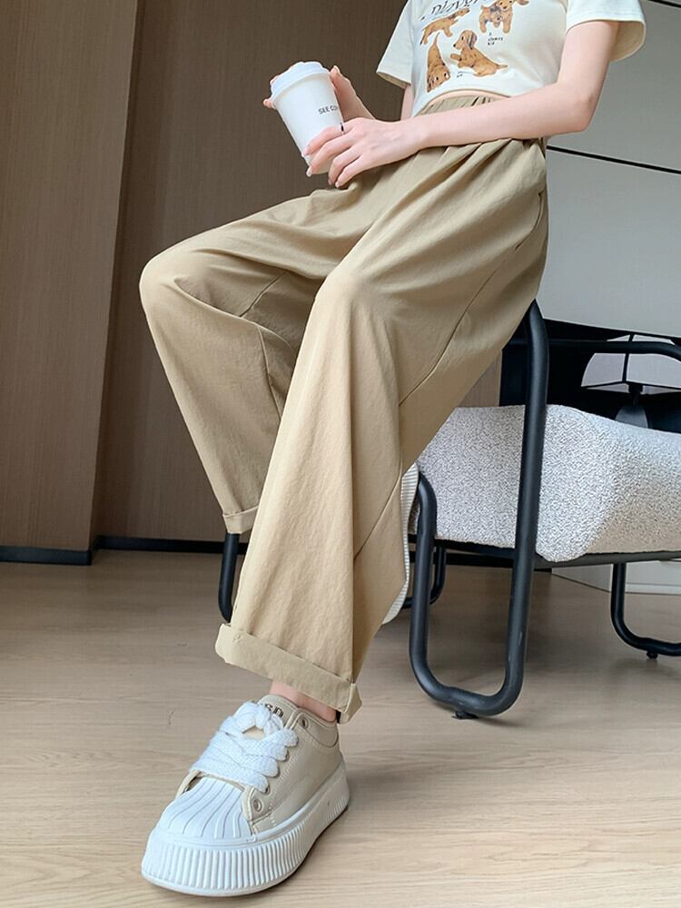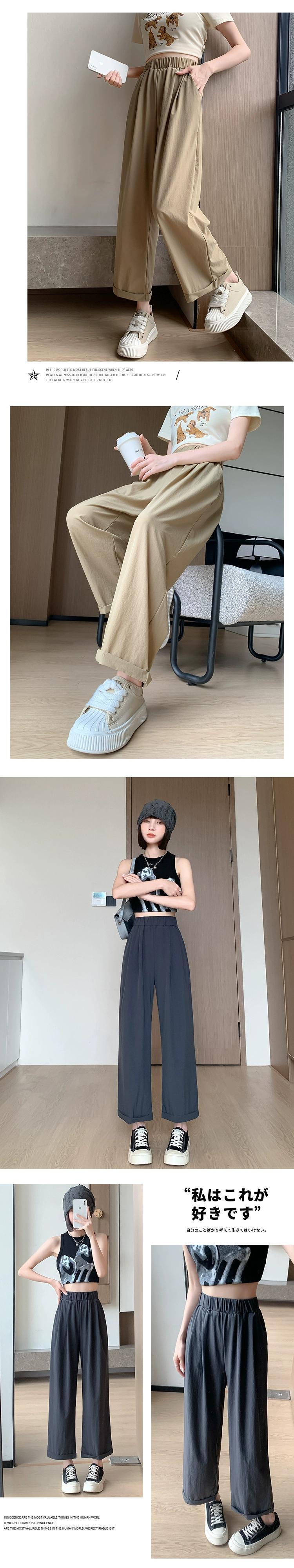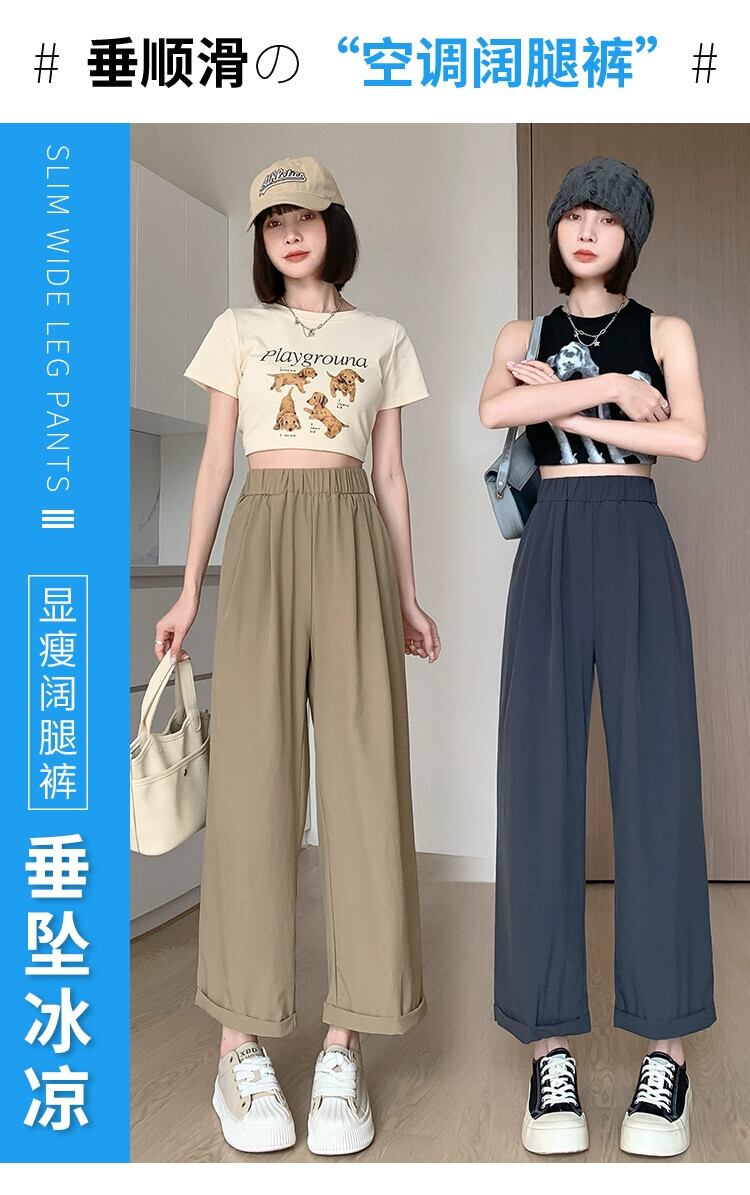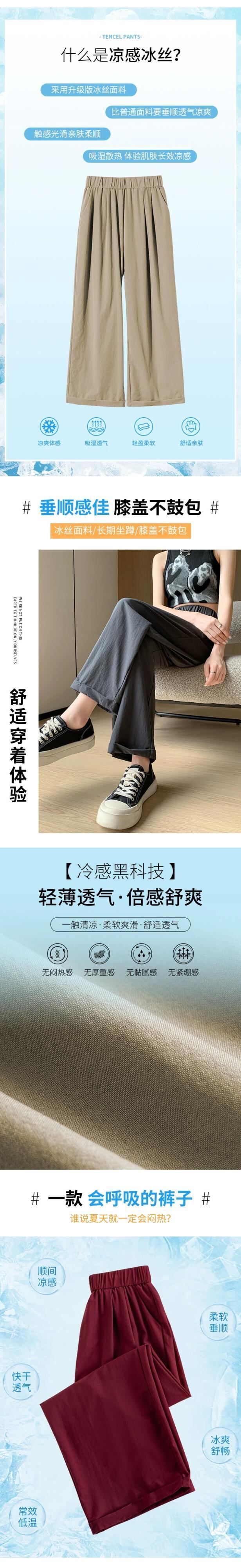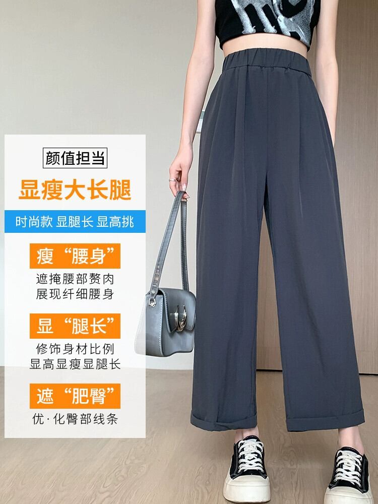 -ウエストアイスシルクワイドレッグパンツ女性 2023 新しい夏のスタイル小さなカジュアルストレートチューブドレープ薄肉速乾性クロップドパンツ サマー 夏物 7460076324782166 | framboise21