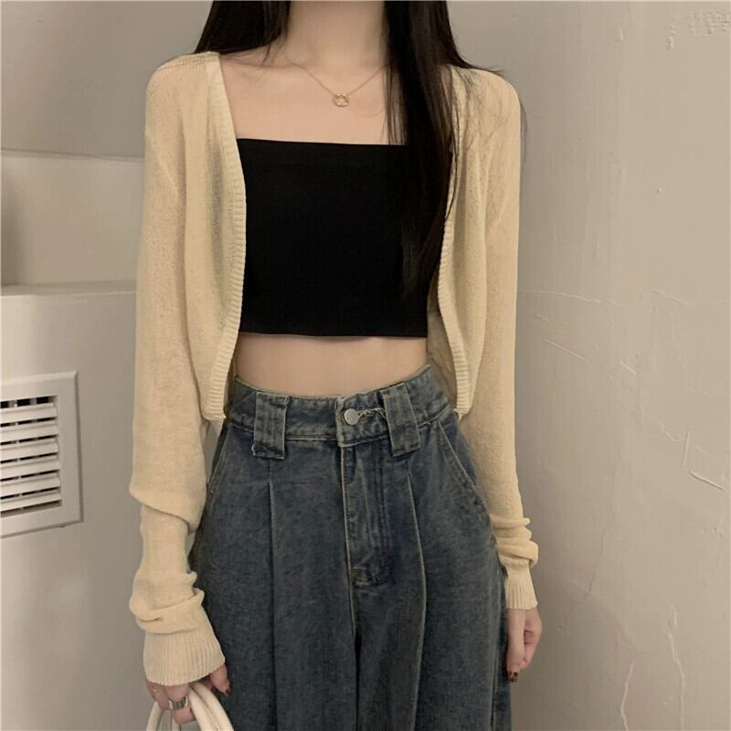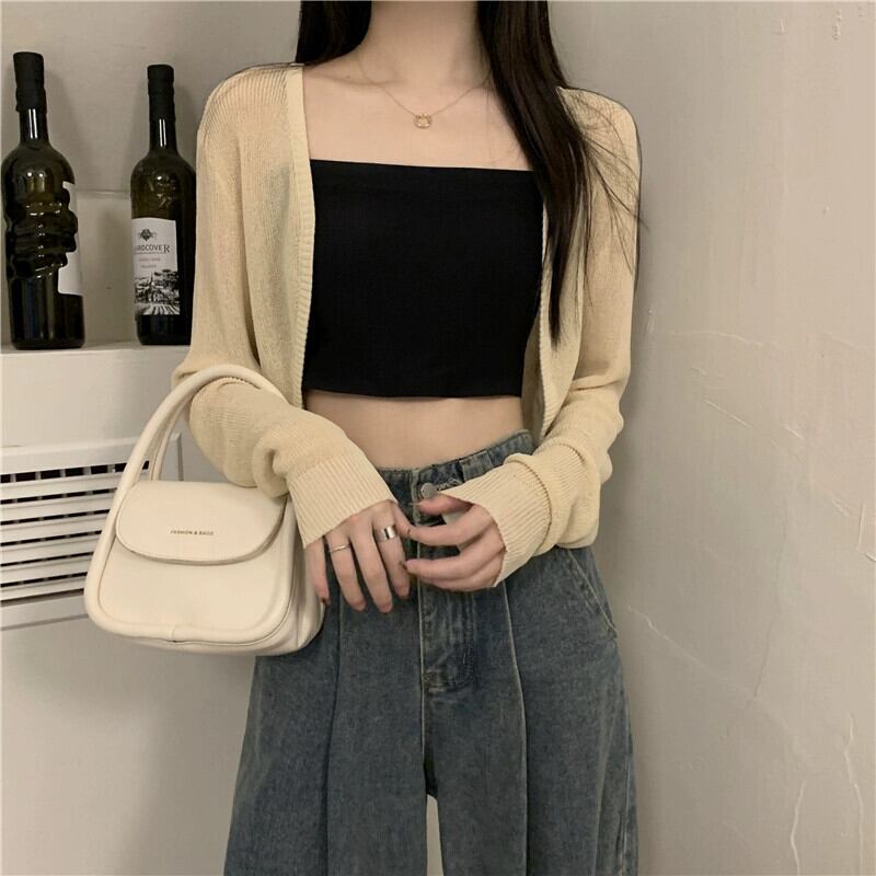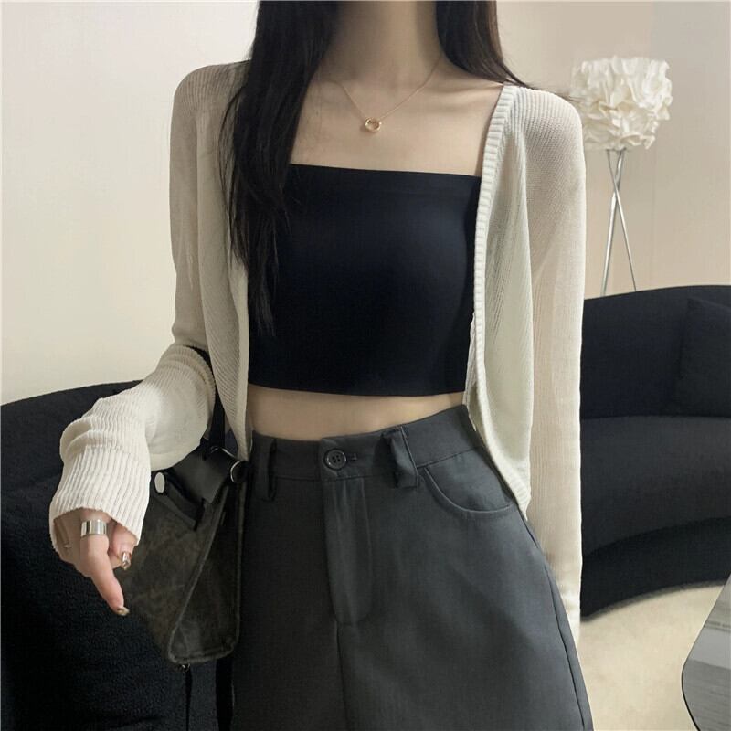 白いアイスシルクニット日焼け止めカーディガン女性夏サスペンダーと小さなチョッキブラウス薄いエアコン付きルームショール ホワイト サマー 夏物 7460022098828882 | framboise21
